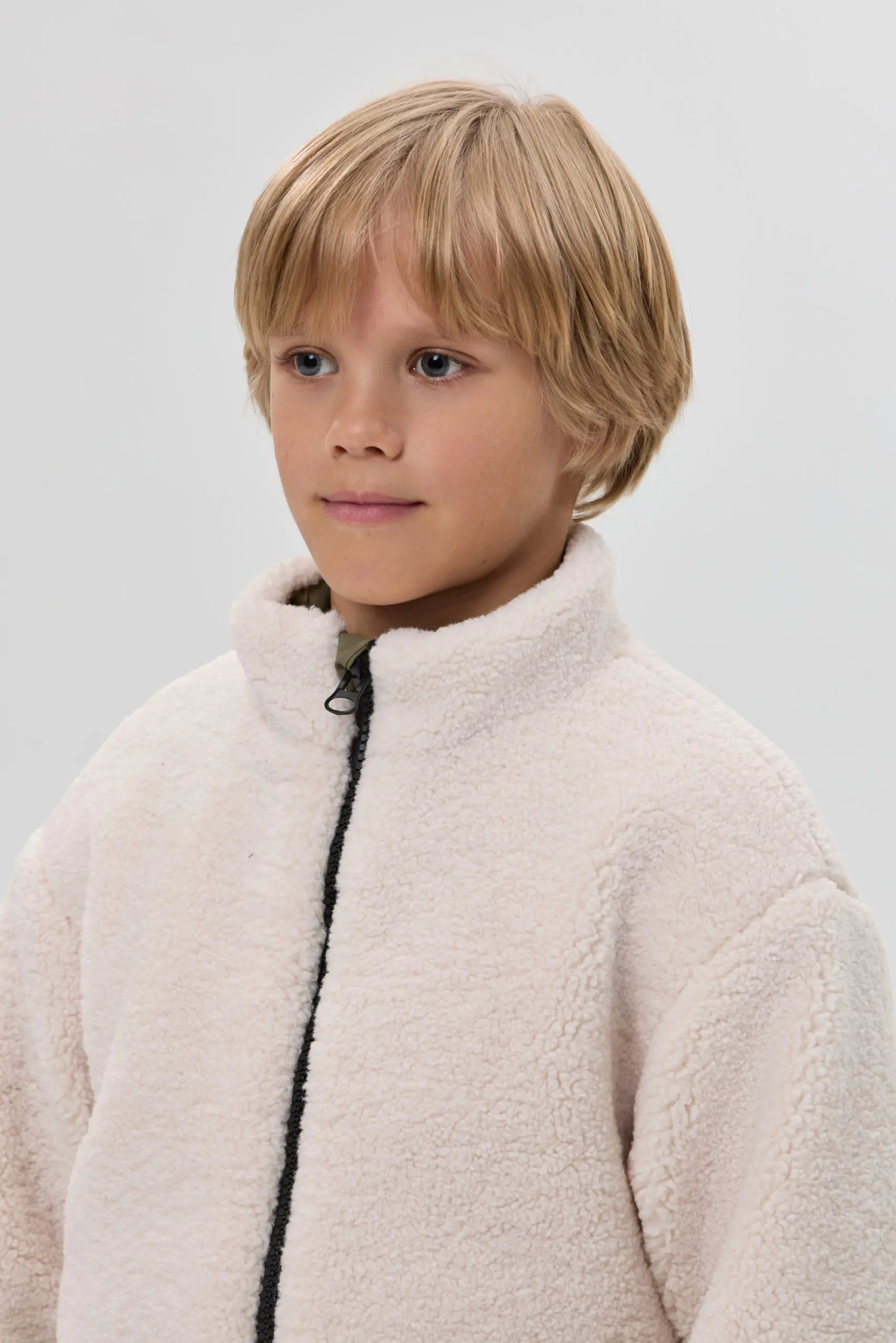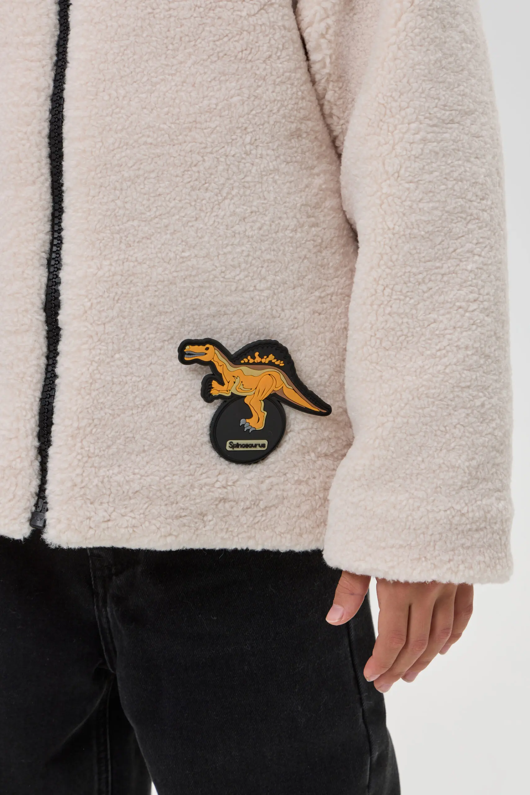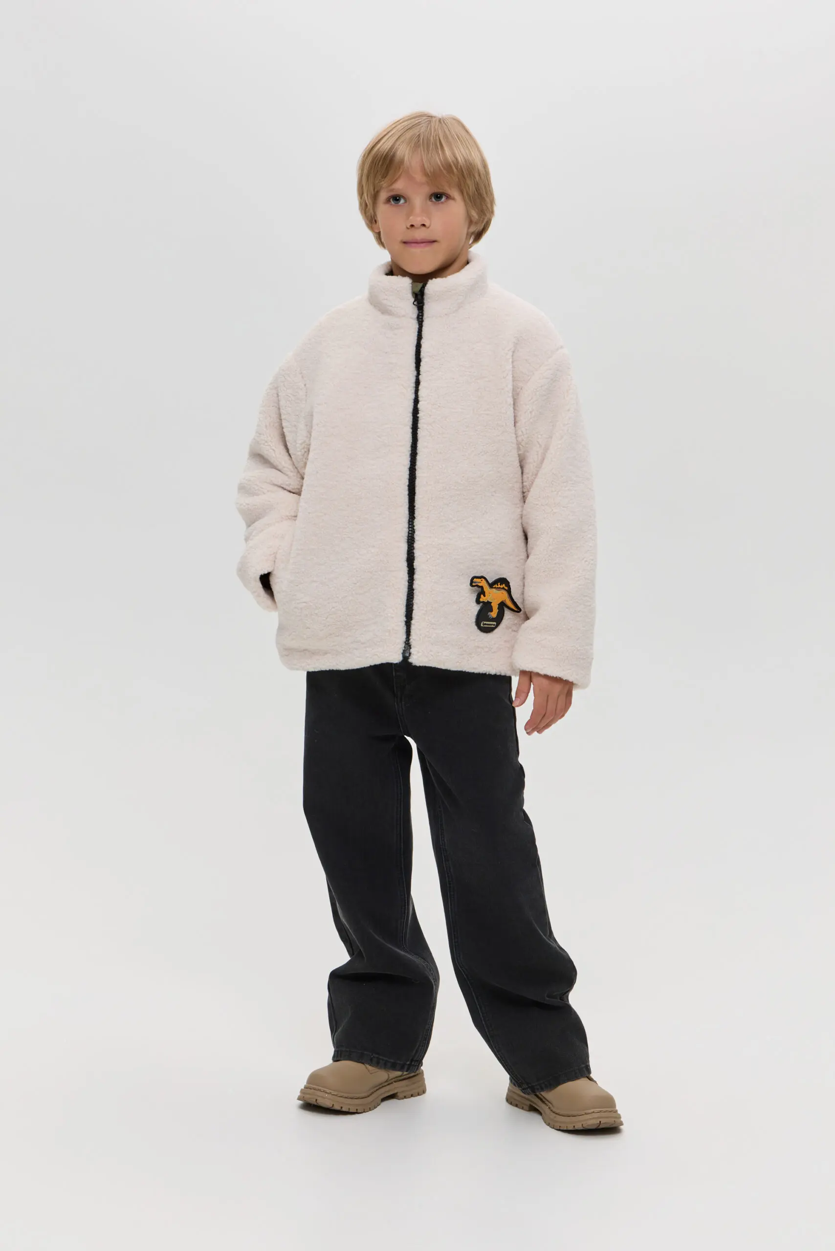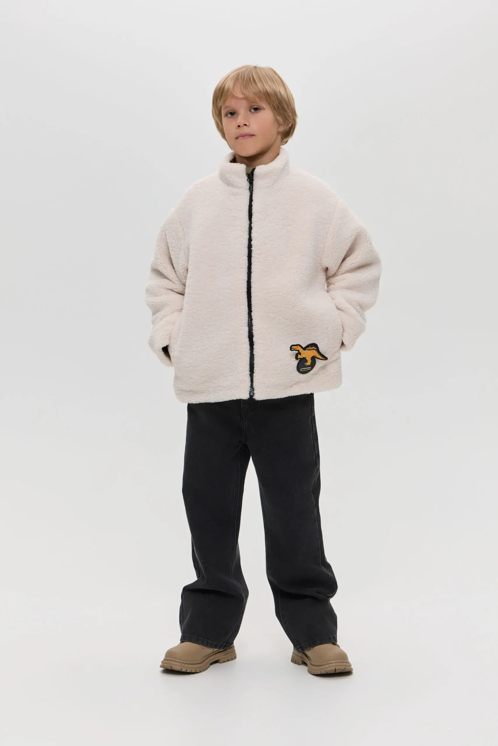 Куртка меховая - актуальный весенний наряд для мальчика − такая вещь может заменять демисезонное пальто. В меховой куртке оттенка экрю юный модник будет выглядеть настоящей звездой! ... Стильная уютная модель с подкладкой из хлопка и вискозы отлично сохраняет тепло. Отделка: контрастная застежка молния и дизайнерский шеврон в виде динозавра. На полочке − два прорезных кармана.