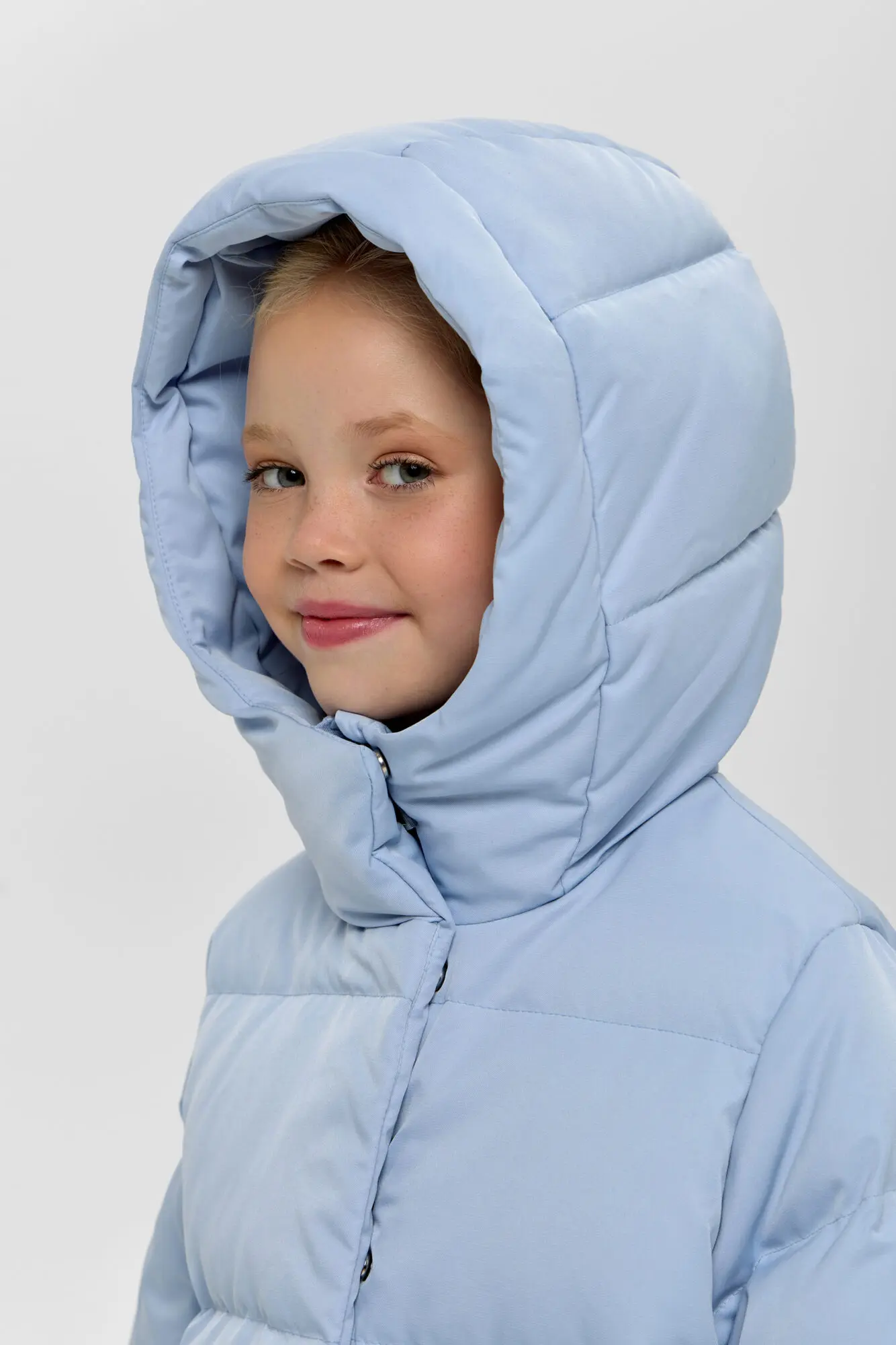 Модная утепленная куртка для девочек с удобным капюшоном. Стёганая модель с наполнителем из натурального пуха – превосходный выбор для холодной погоды, а высокий воротник станет надежной ... защитой от ветра. Двойная застежка на молнии и кнопках обеспечивает максимальную ветронепроницаемость и комфорт. Рекомендована для ношения при температурах от -15 °С до - 25 °С в зависимости от одежды первого и второго слоя.