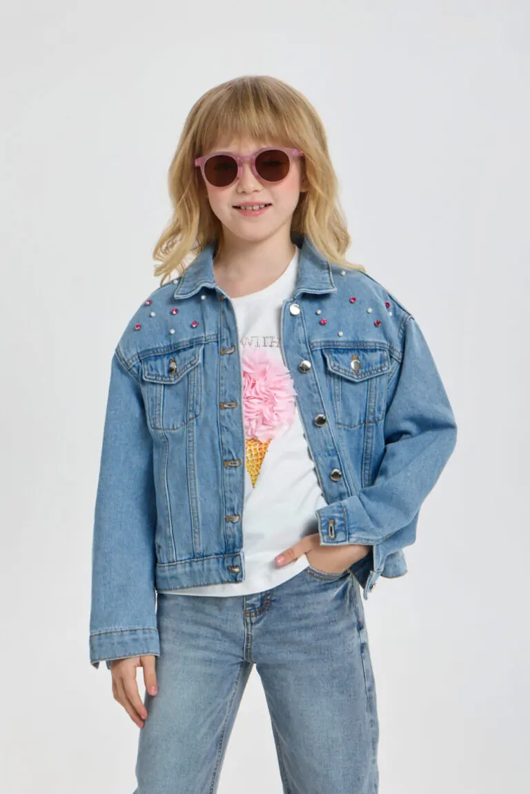 Джинсовая куртка для юной леди – это тренд, не теряющий актуальности. Свободный силуэт и износостойкий материал превращают её в прекрасный выбор для тёплого времени года. Она ... легко сочетается и с элегантными нарядами, и с нарядами в спортивном стиле. Но подлинную изюминку этому жакету придают разноцветные сверкающие стразы. Этот броский и утонченный акцент добавляет куртке неповторимый облик и позволяет привлечь внимание. Идеальный баланс между функциональностью, удобством и актуальным дизайном делает джинсовую куртку обязательным атрибутом в гардеробе каждой девочки, следящей за модой.