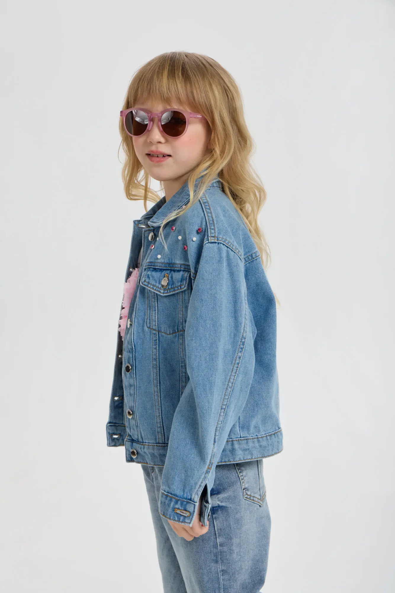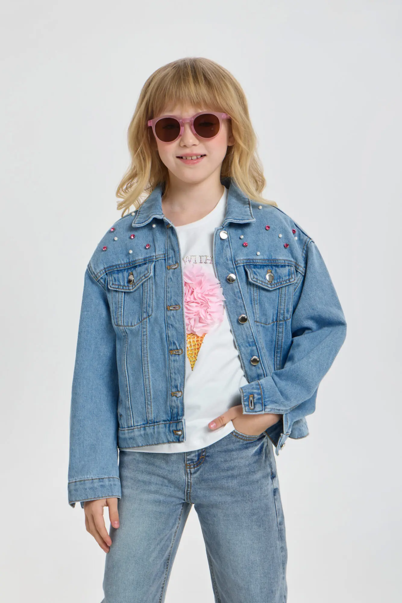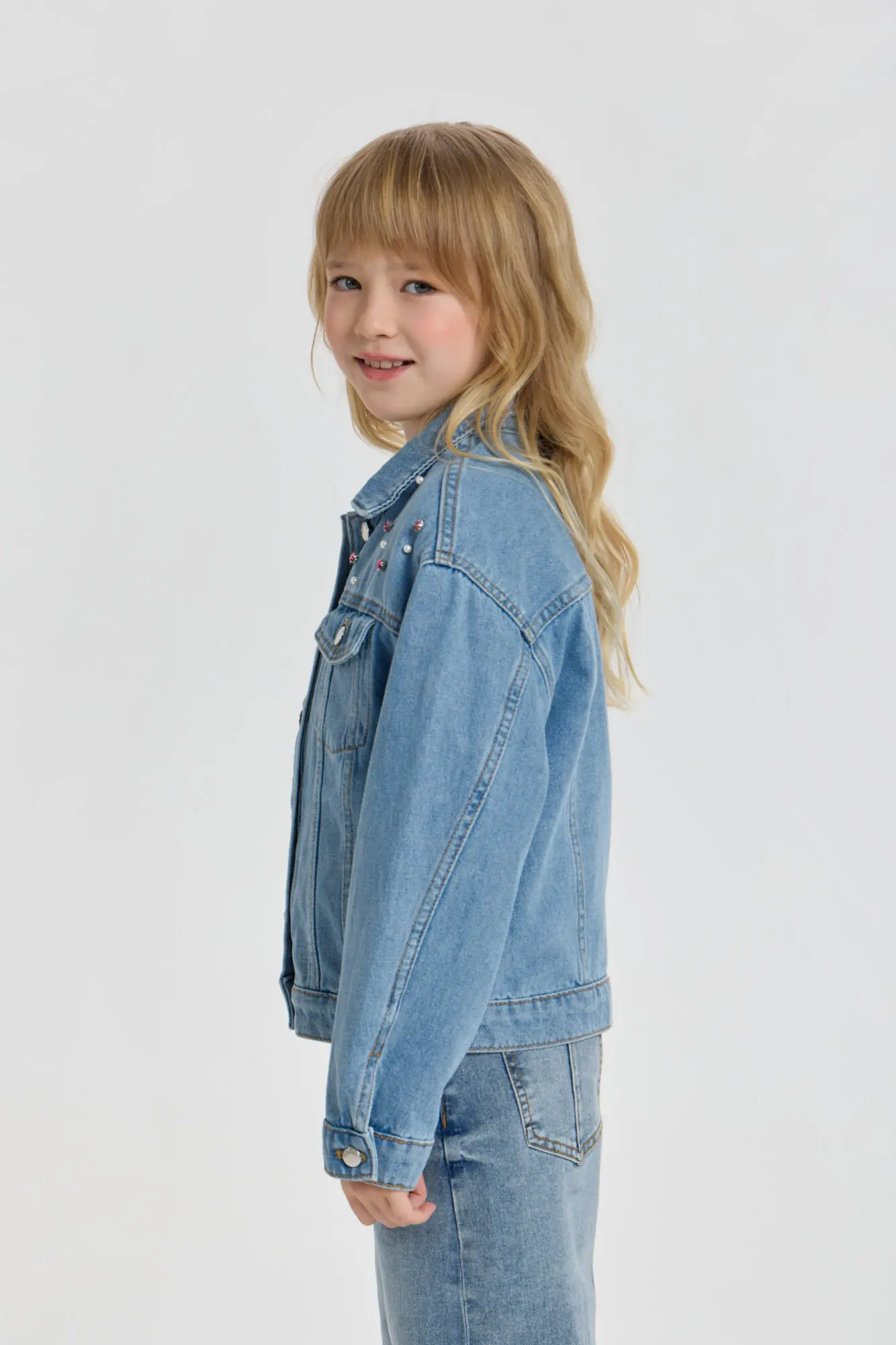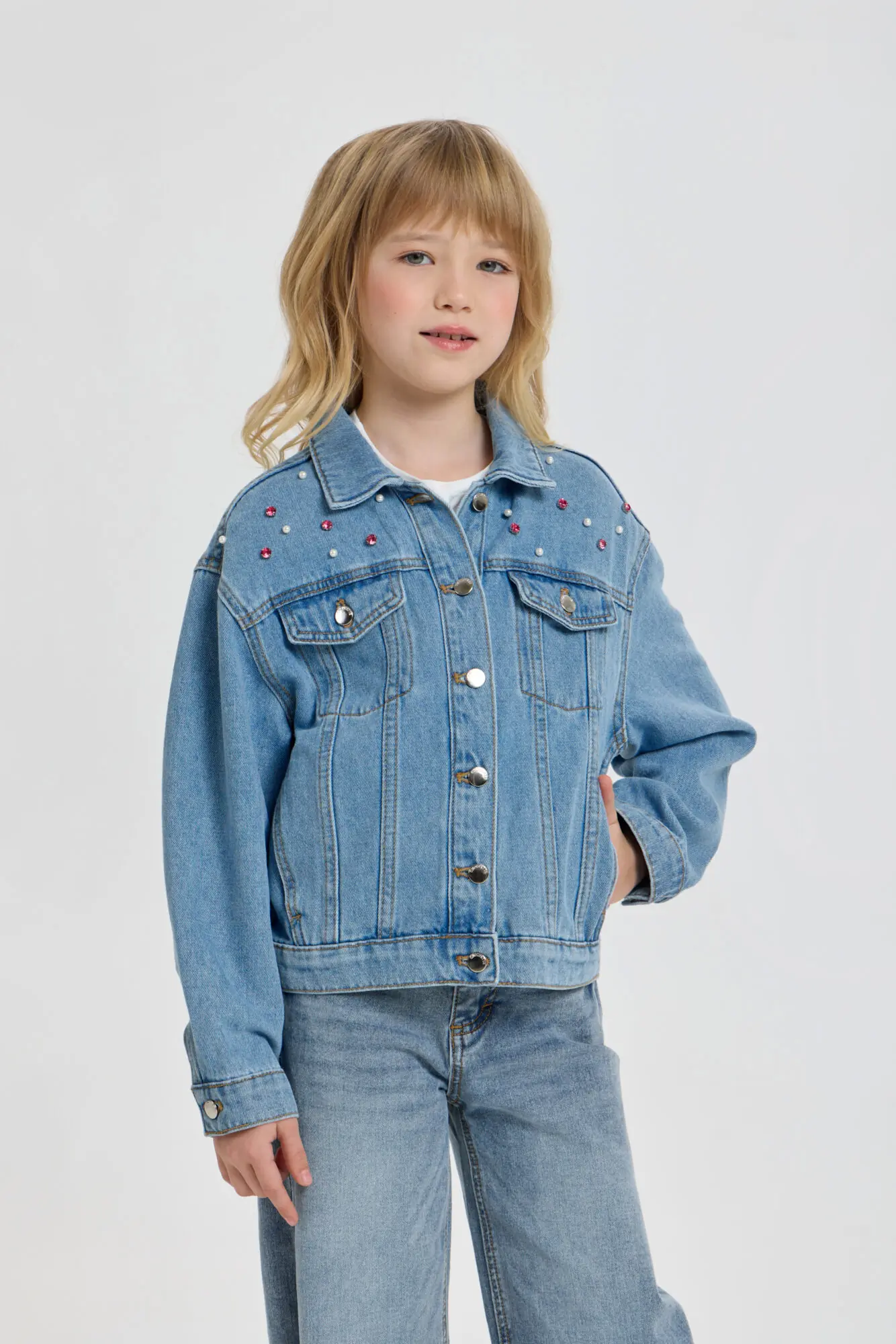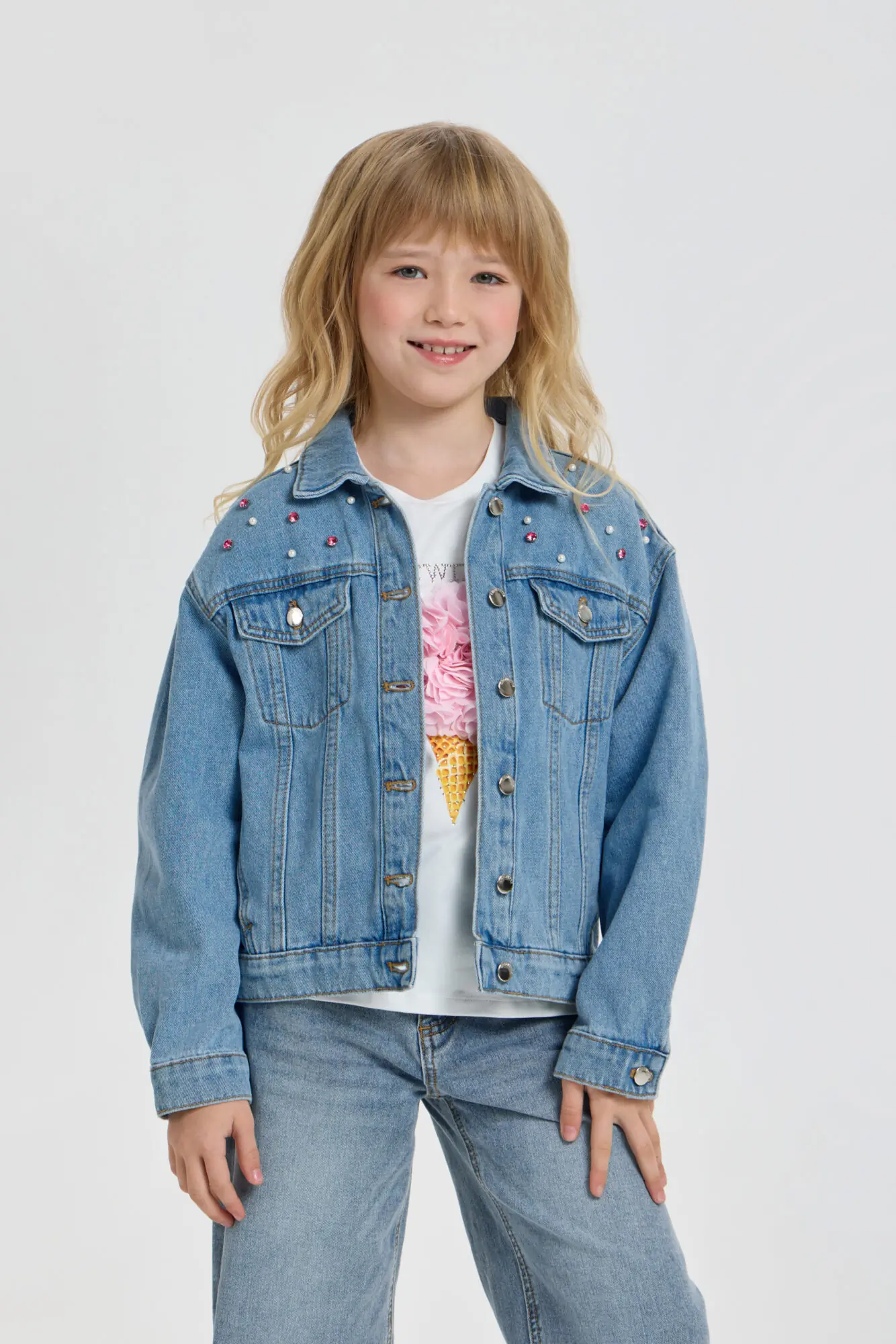 Джинсовая куртка для юной леди – это тренд, не теряющий актуальности. Свободный силуэт и износостойкий материал превращают её в прекрасный выбор для тёплого времени года. Она ... легко сочетается и с элегантными нарядами, и с нарядами в стиле спорт шик. Но подлинную изюминку этому жакету придают разноцветные сверкающие стразы. Этот броский и утонченный акцент добавляет куртке неповторимый облик и позволяет привлечь внимание. Идеальный баланс между функциональностью, удобством и актуальным дизайном делает джинсовую куртку обязательным атрибутом в гардеробе каждой девочки, следящей за модой. Она – безусловный must-have для создания модных и запоминающихся луков.