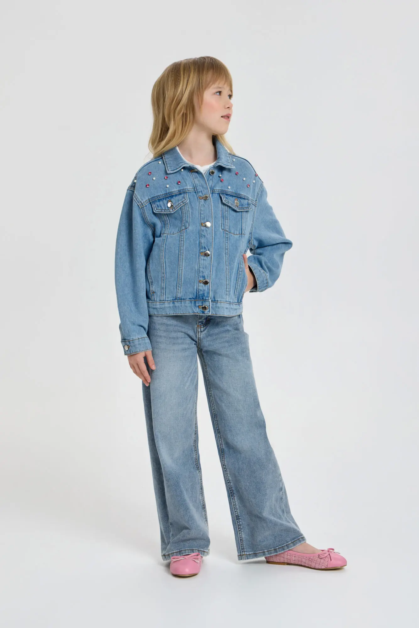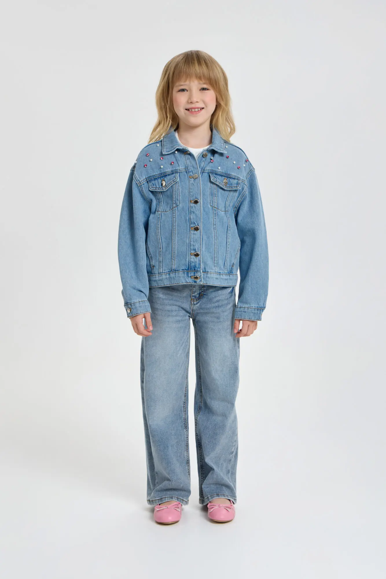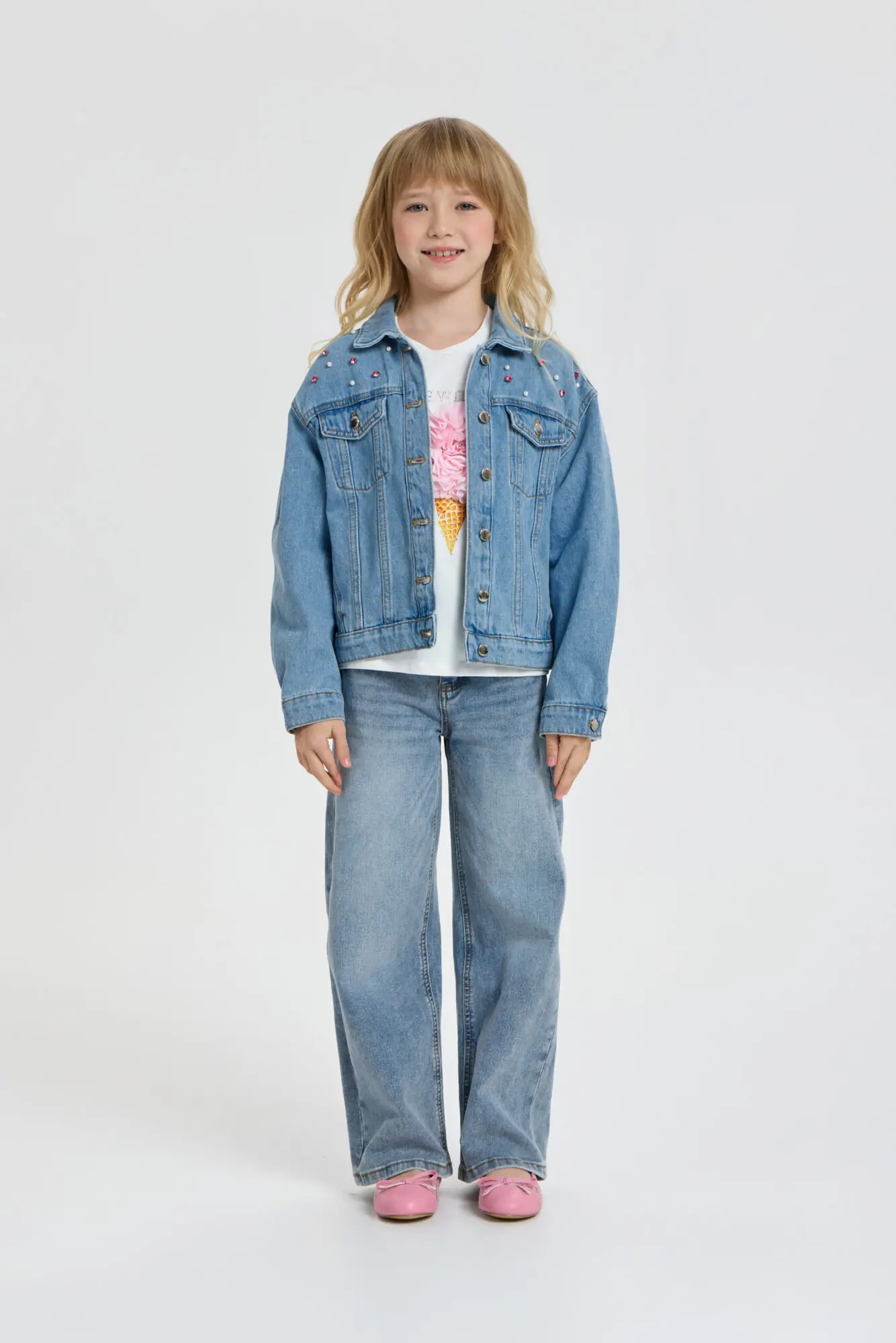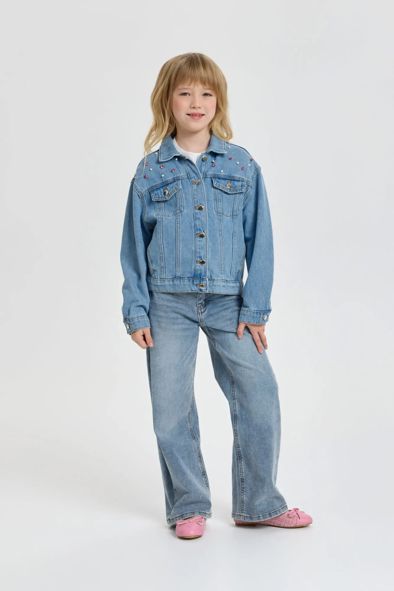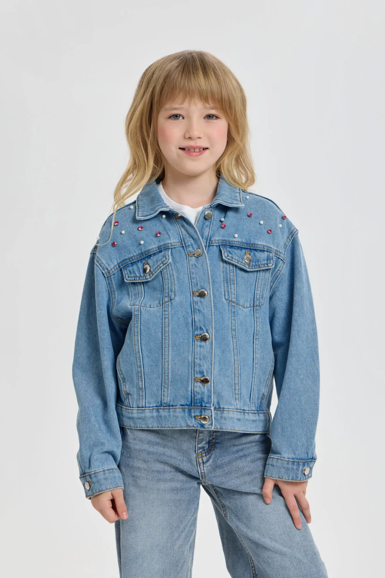Джинсовая куртка для юной леди – это тренд, не теряющий актуальности. Свободный силуэт и износостойкий материал превращают её в прекрасный выбор для тёплого времени года. Она ... легко сочетается и с элегантными нарядами, и с нарядами в стиле спорт шик. Но подлинную изюминку этому жакету придают разноцветные сверкающие стразы. Этот броский и утонченный акцент добавляет куртке неповторимый облик и позволяет привлечь внимание. Идеальный баланс между функциональностью, удобством и актуальным дизайном делает джинсовую куртку обязательным атрибутом в гардеробе каждой девочки, следящей за модой. Она – безусловный must-have для создания модных и запоминающихся луков.