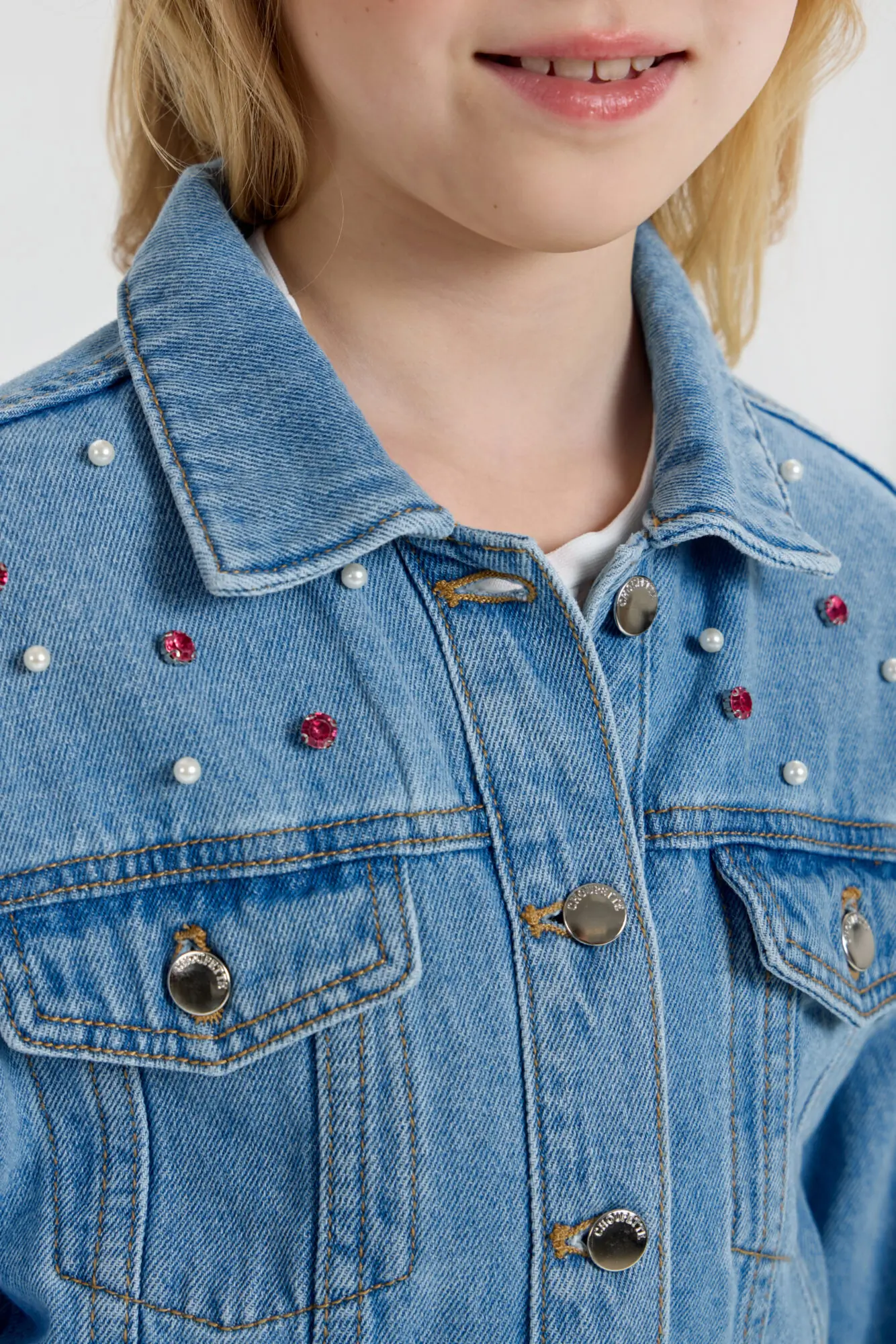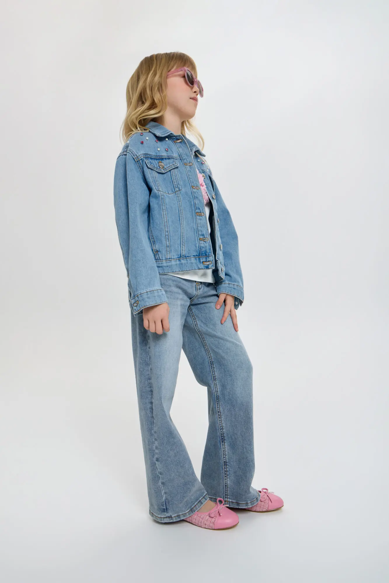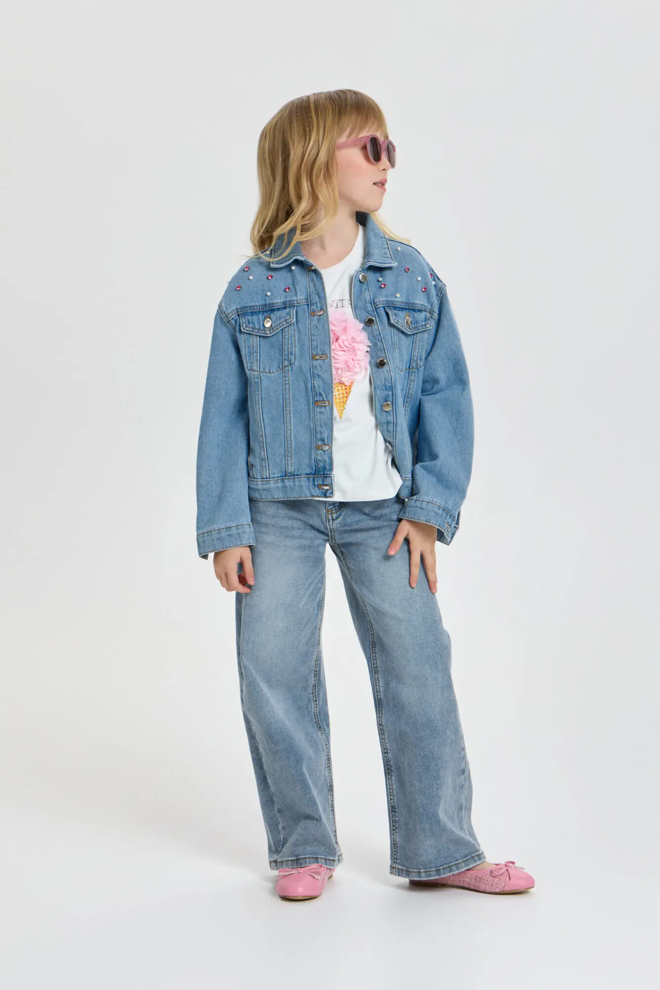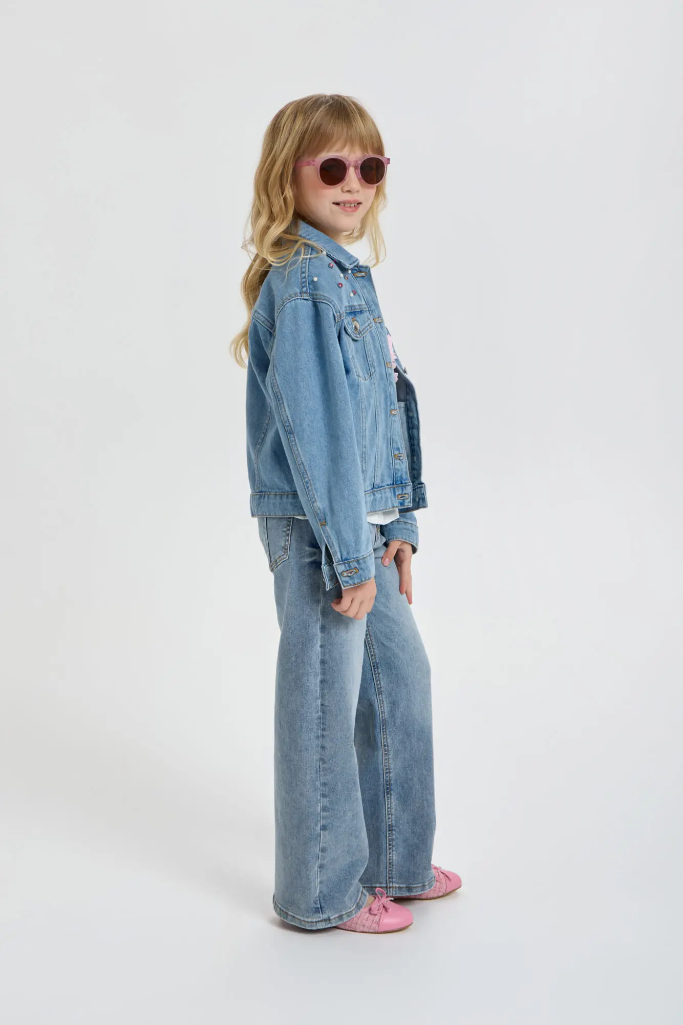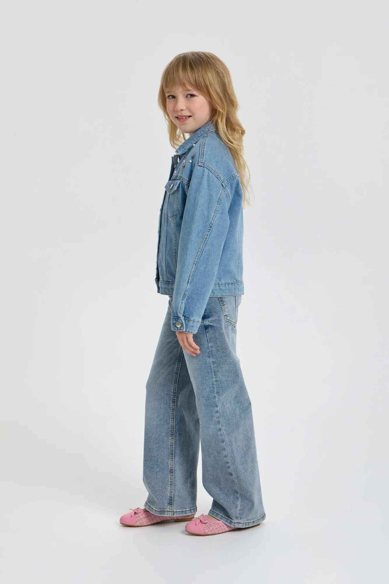 Джинсовая куртка для юной леди – это тренд, не теряющий актуальности. Свободный силуэт и износостойкий материал превращают её в прекрасный выбор для тёплого времени года. Она ... легко сочетается и с элегантными нарядами, и с нарядами в стиле спорт шик. Но подлинную изюминку этому жакету придают разноцветные сверкающие стразы. Этот броский и утонченный акцент добавляет куртке неповторимый облик и позволяет привлечь внимание. Идеальный баланс между функциональностью, удобством и актуальным дизайном делает джинсовую куртку обязательным атрибутом в гардеробе каждой девочки, следящей за модой. Она – безусловный must-have для создания модных и запоминающихся луков.
