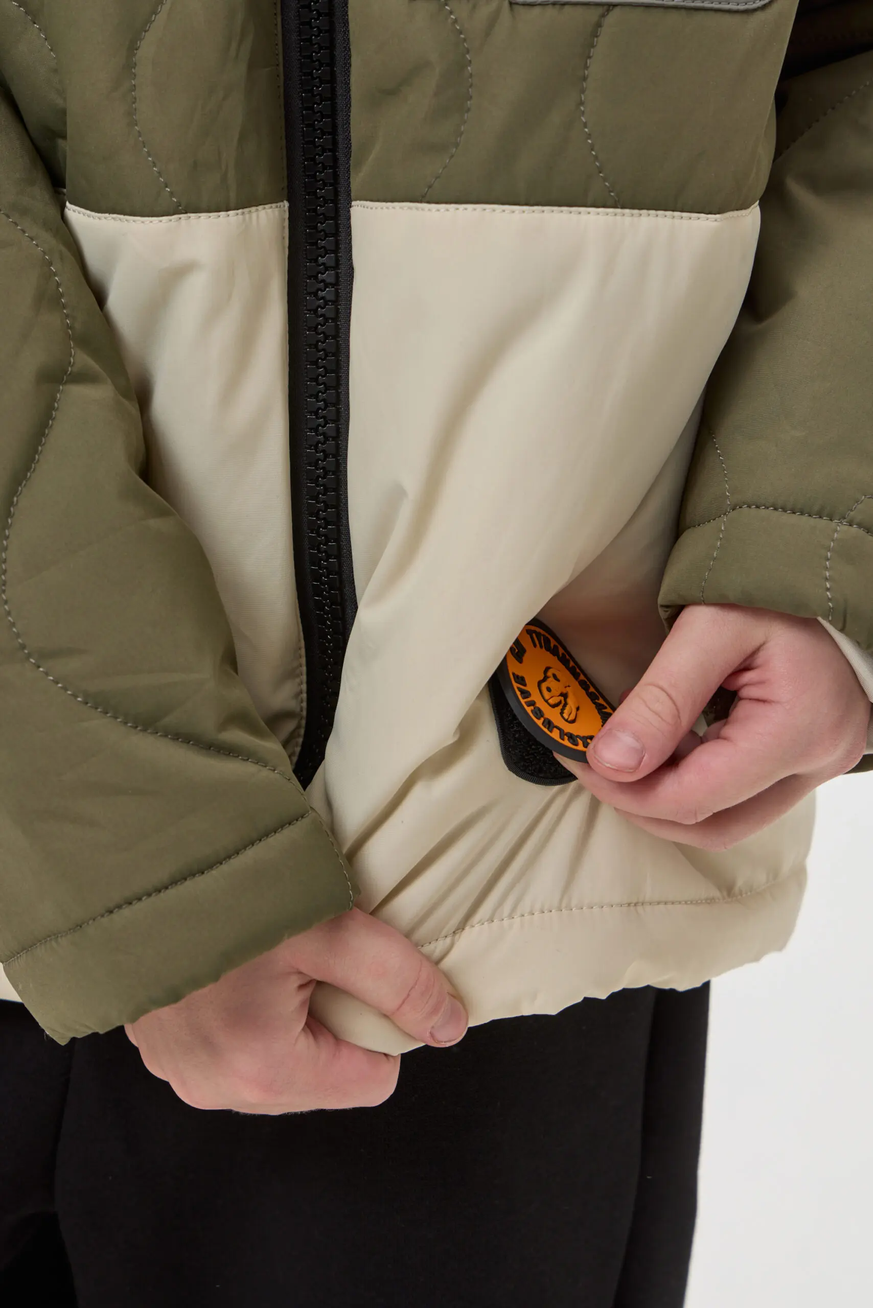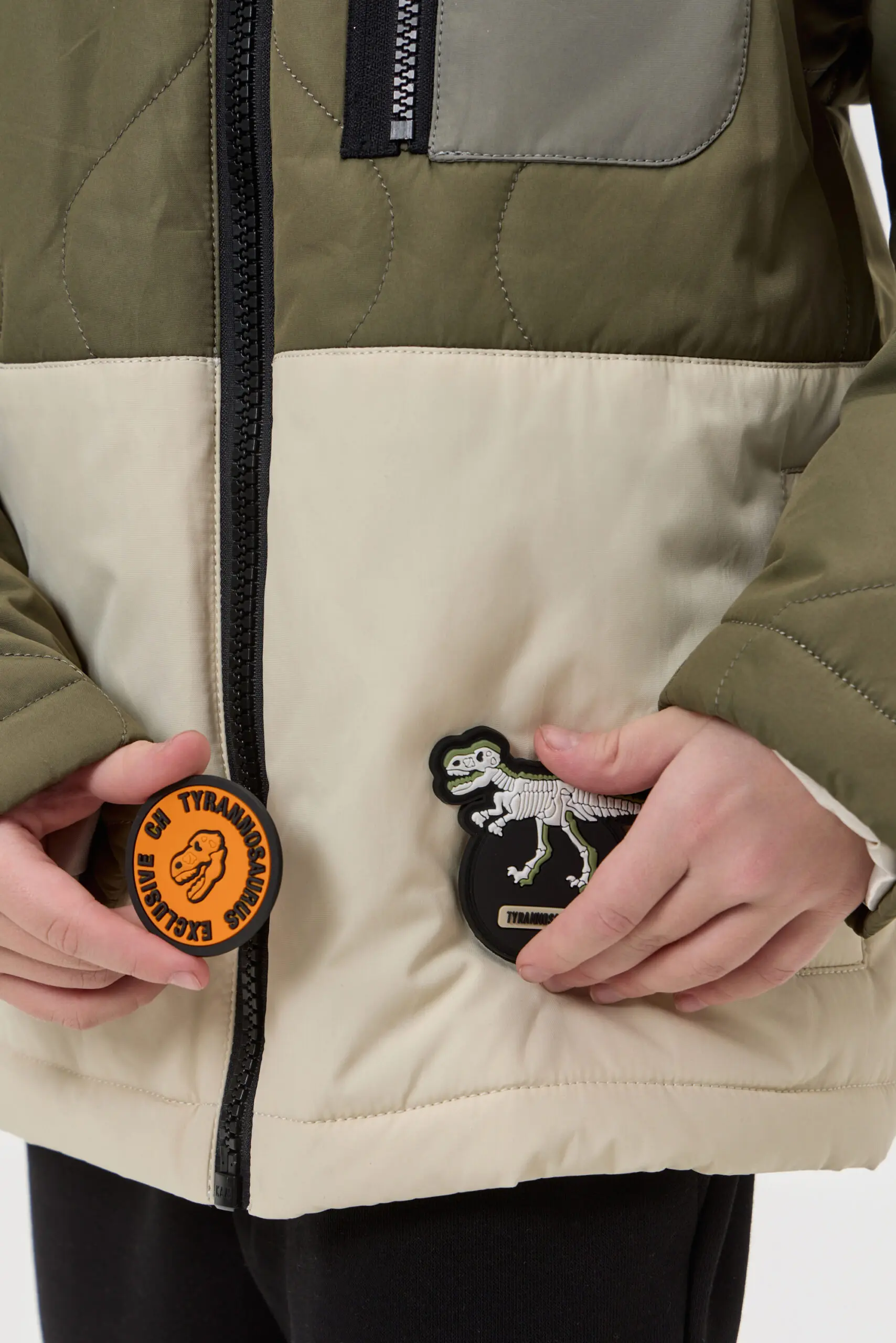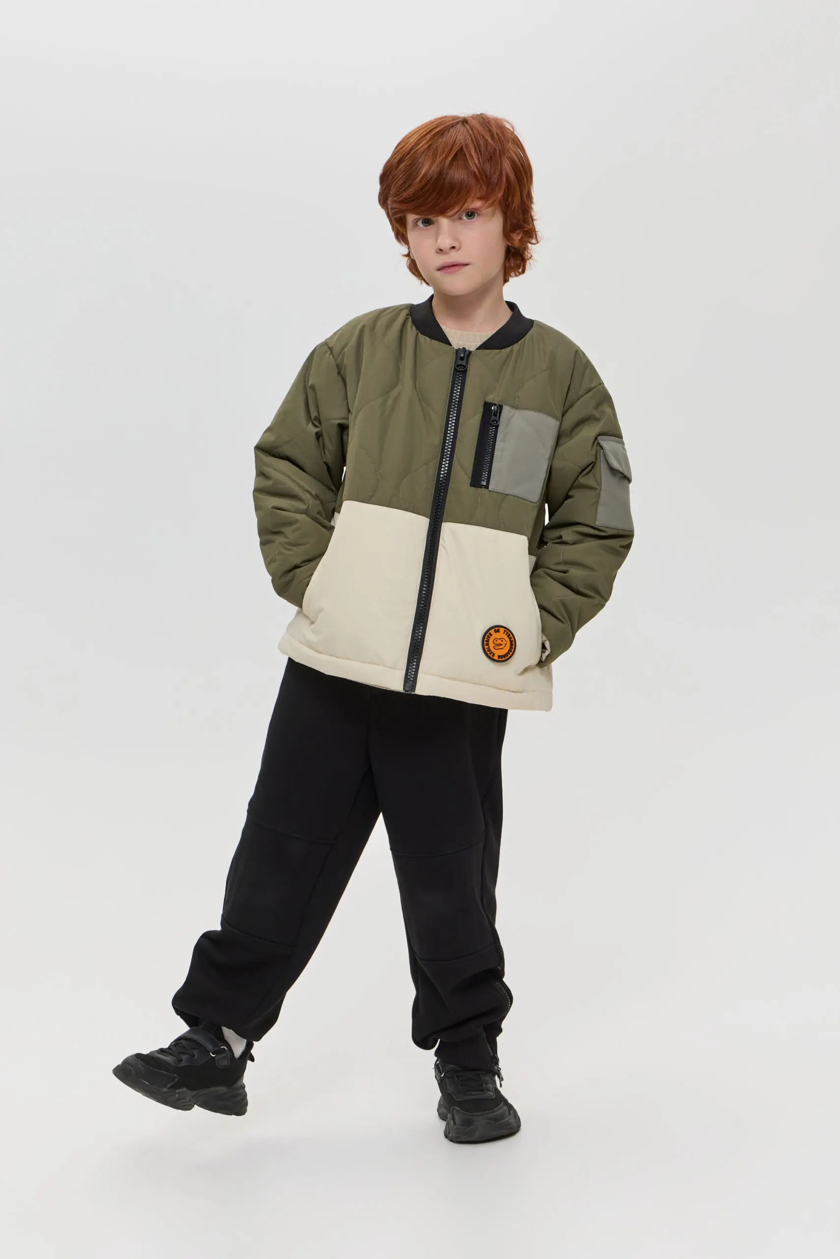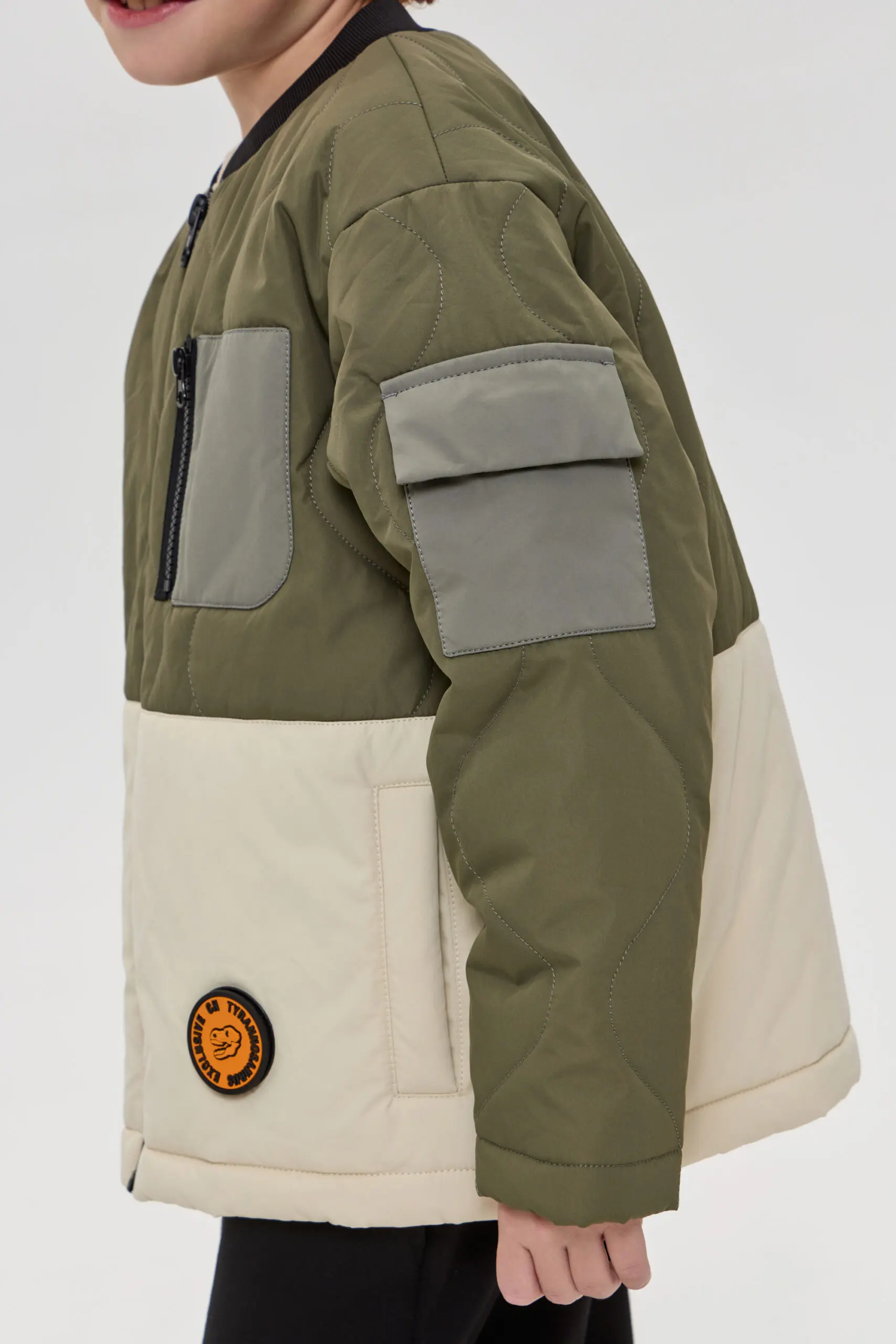 Куртка стеганная для мальчика станет удачным пополнением весеннего гардероба. Стильная утепленная куртка сшита из двух тканей контрастного оттенка, на полочке и на рукаве оригинальный карман. Еще ... одна интересная деталь: дизайнерский декор со съемным логотипом. Куртка застегивается на «молнию». Подклад − на основе хлопка и вискозы.