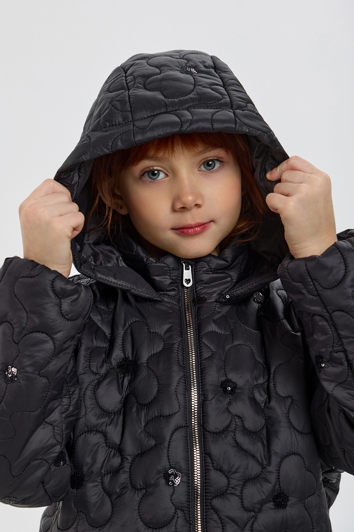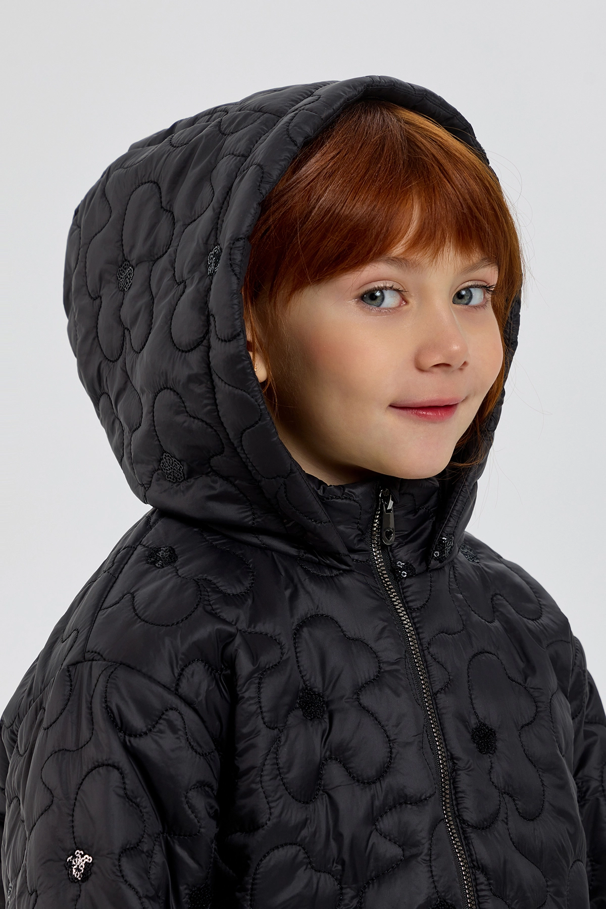 Прекрасным выбором для весенних дней станет черная стеганая куртка для девочки. Свободный силуэт этой модели дополнен цельным глубоким капюшоном, обеспечивающим защиту от непогоды. Застежка-молния снабжена специальной ... планкой, исключающей возможность травмирования подбородка. Вместительные карманы по бокам идеально подходят для хранения нужных мелочей или согревания рук. В нижней части куртки предусмотрена утягивающая кулиска, позволяющая регулировать прилегание и предотвращать проникновение ветра.