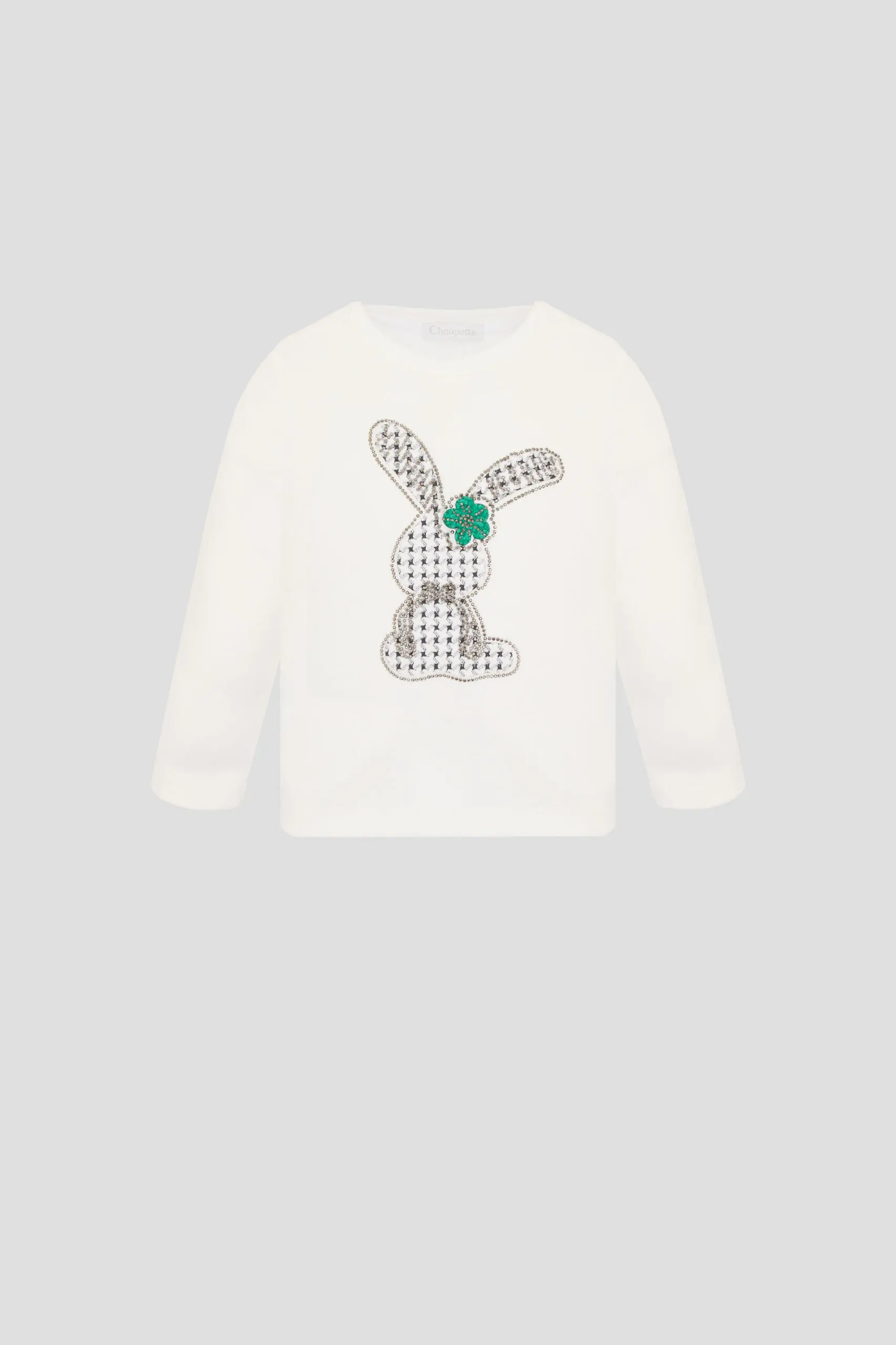 Нарядный лонгслив для девочки украсит любой праздничный образ. Изюминкой данной модели является объемная аппликация из мерцающих страз в виде зайчонка. Очаровательный лонгслив прекрасно сочетается с юбками ... и брюками позволяя создавать множество ярких образов. Изготовлено изделие из мягкого и приятного к телу материала, который не вызывает аллергии и раздражения кожи.