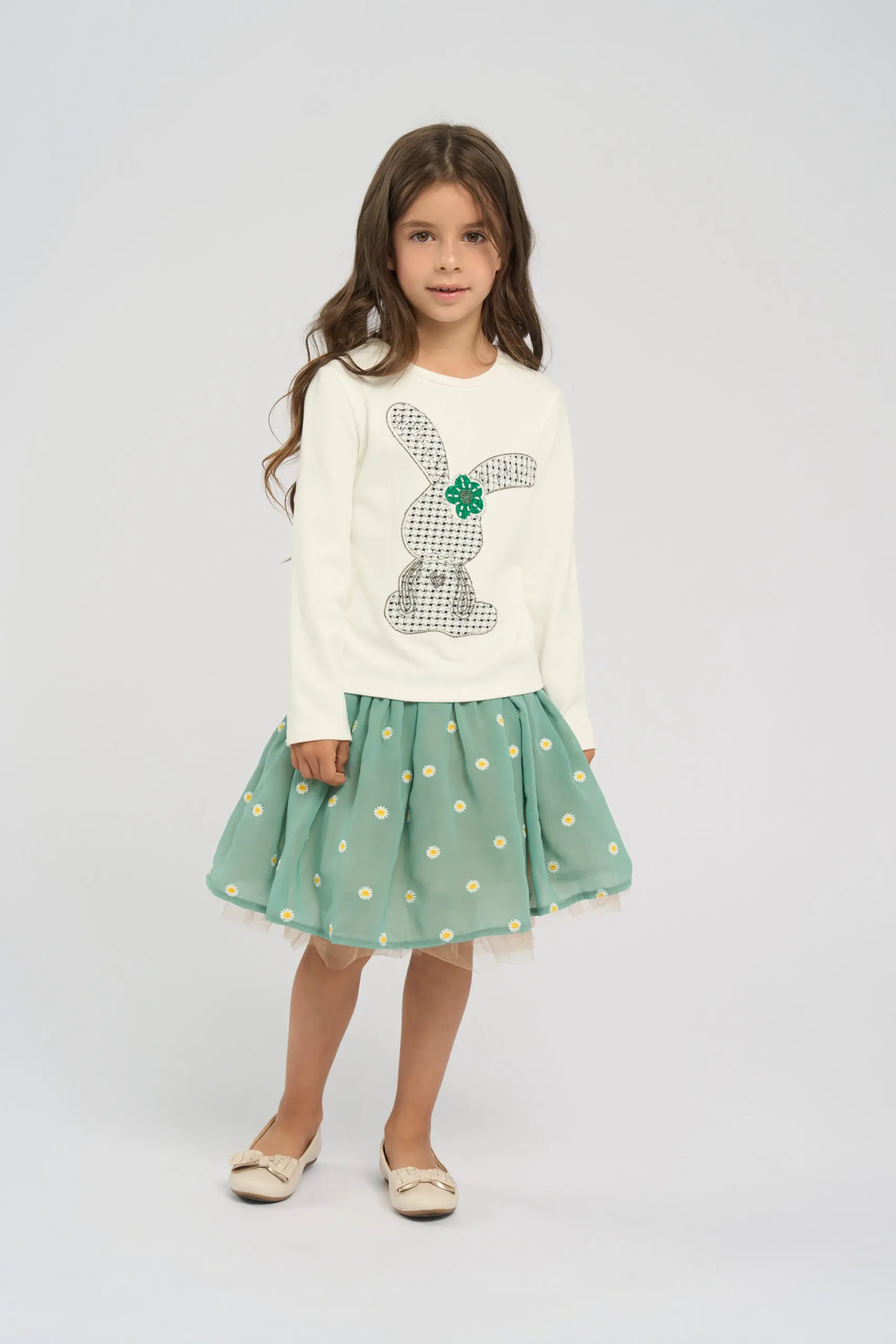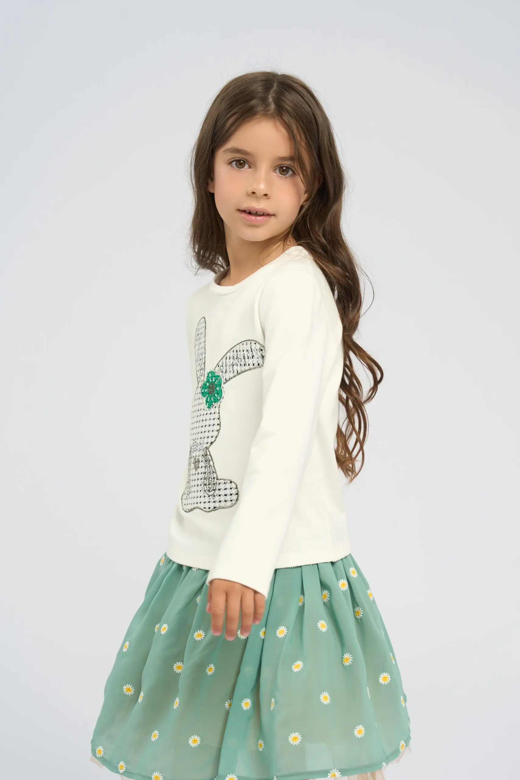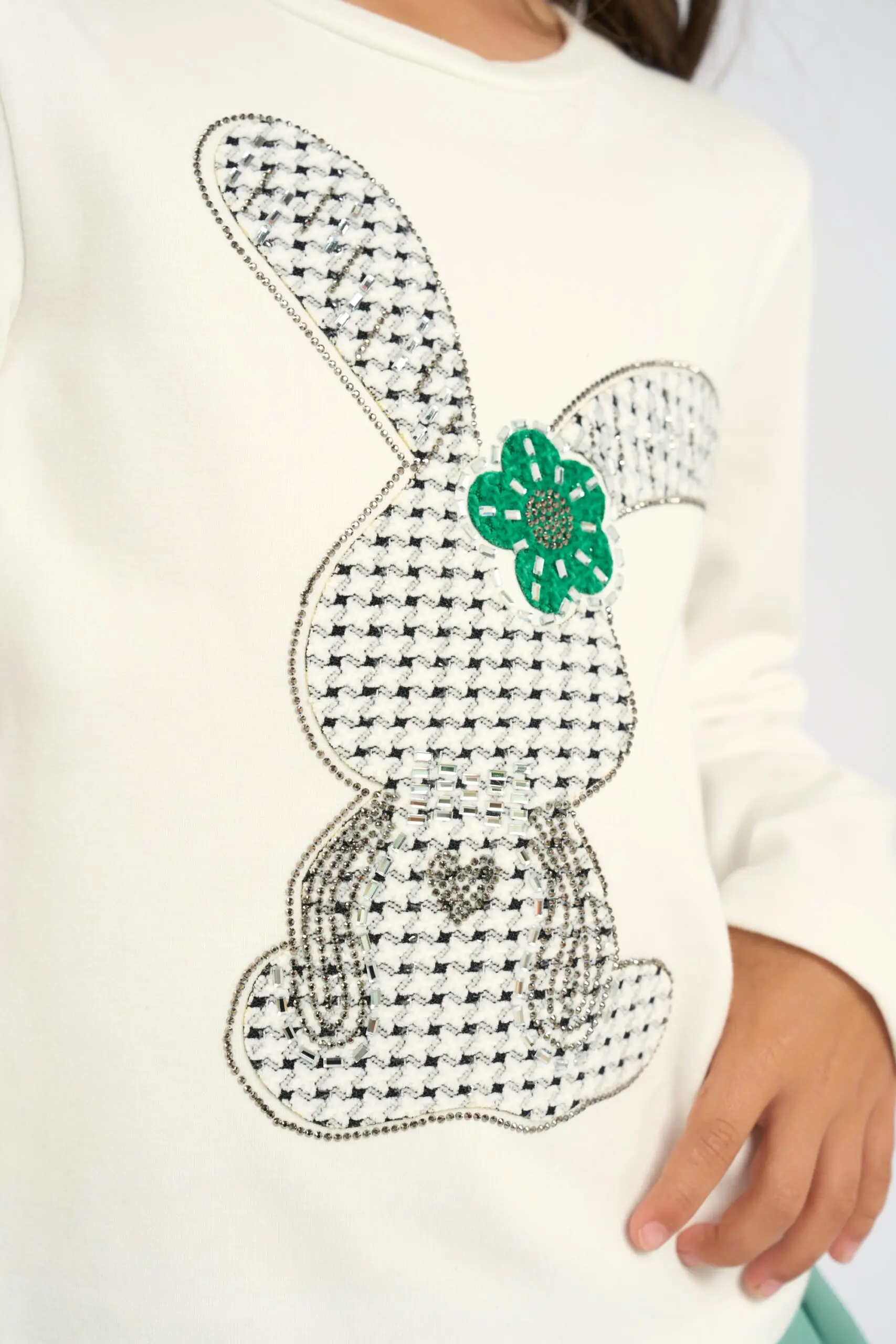 Лонгслив для девочки изготовлен из белого трикотажа. Украшение в виде фактурного зайчика с зеленым цветком добавляет модели игривый акцент. Такой элемент привлекает внимание и делает образ ... запоминающимся. Джемпер прекрасно подойдёт как для повседневной носки, так и для создания праздничных образов. Комфортный прямой силуэт не стесняет движений, что важно для активных детей. Ткань на основе хлопка обеспечивает комфорт в течение всего дня.