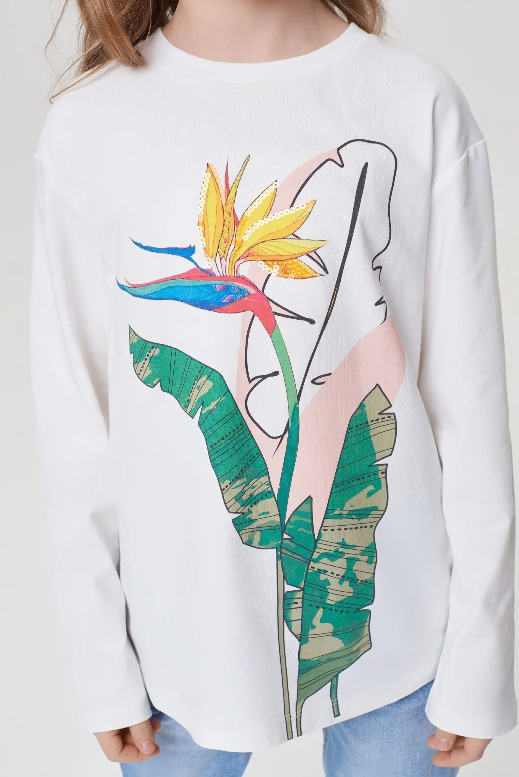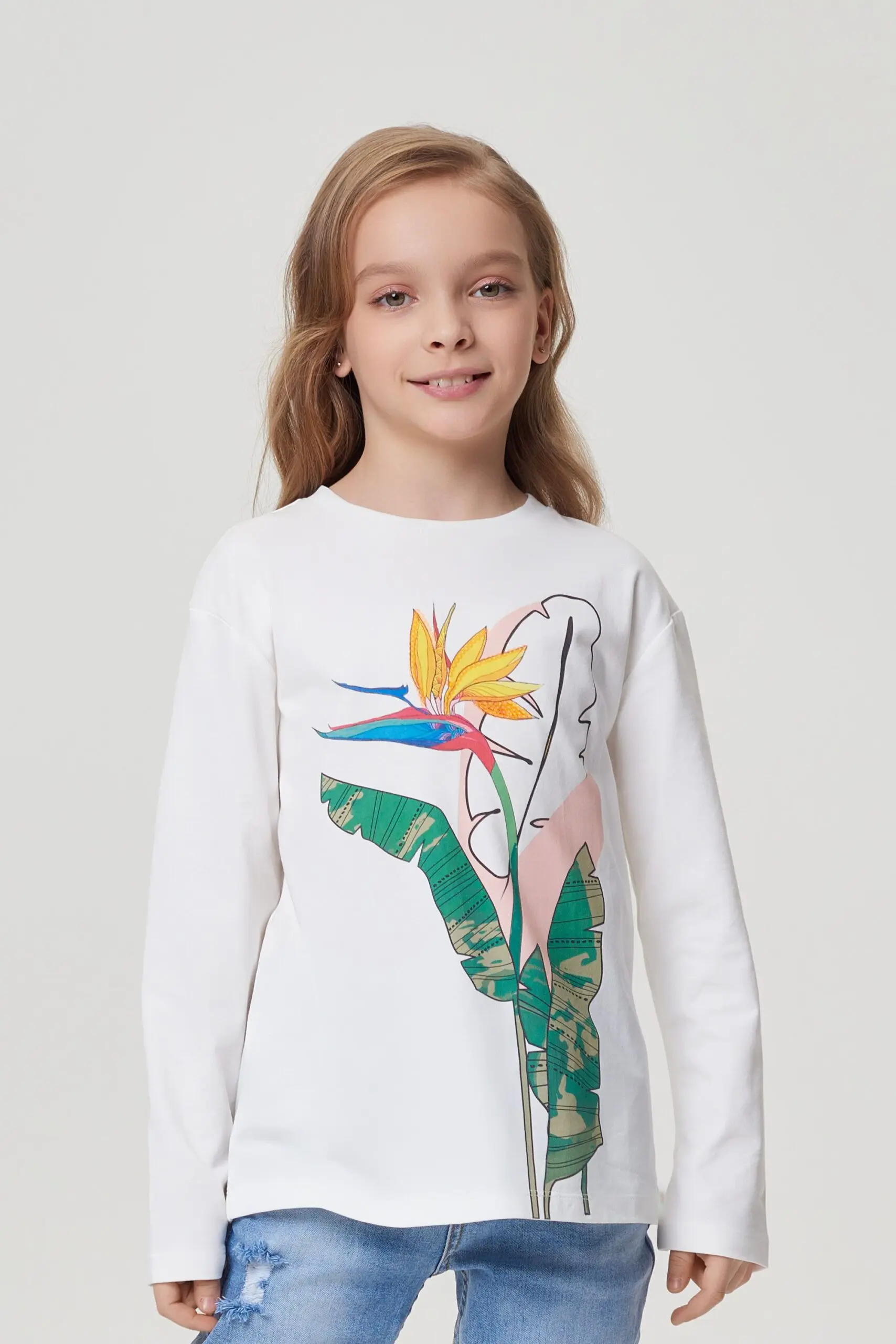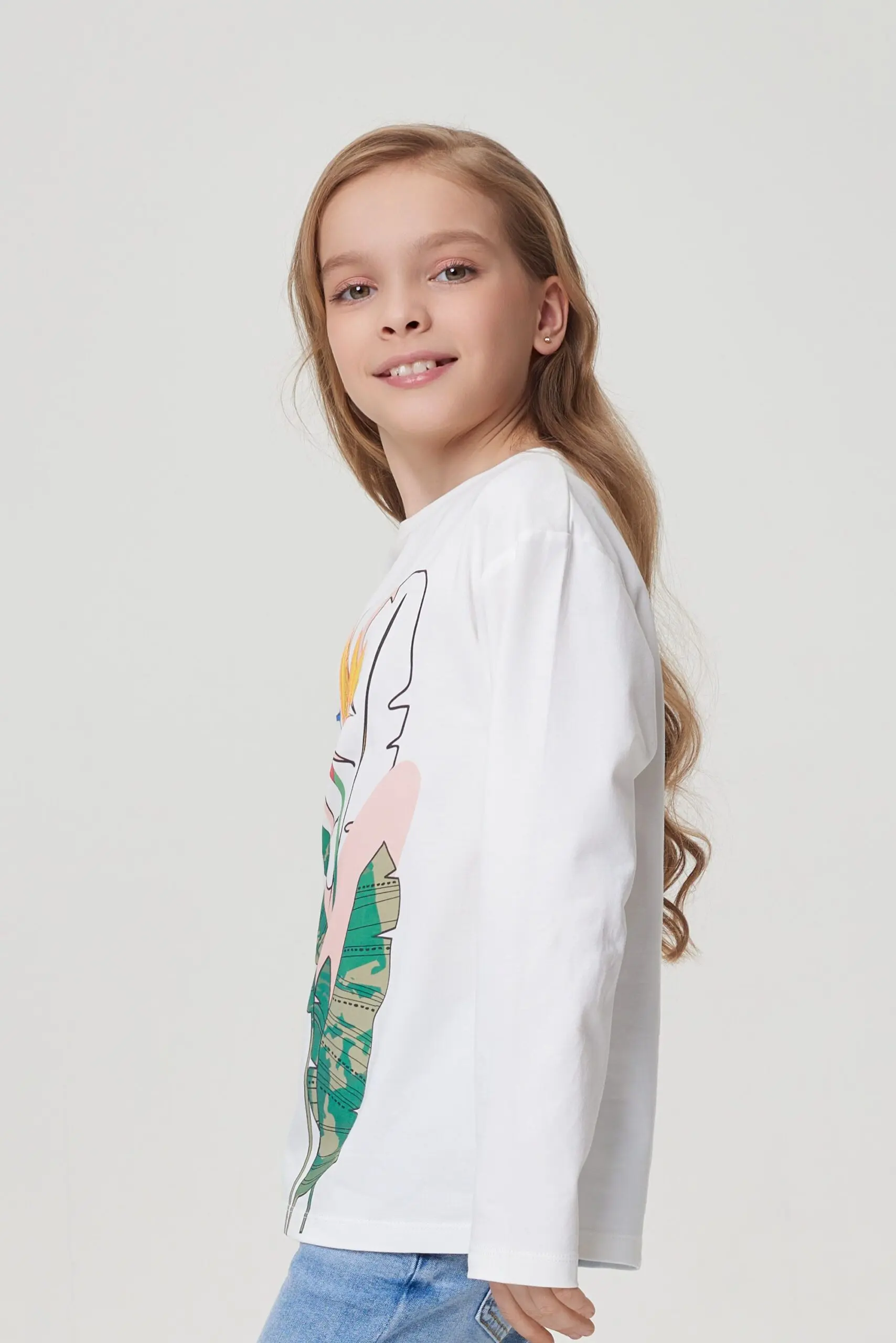 Лонгслив для девочки с ярким принтом - отличный выбор для создания стильных и запоминающихся образов.