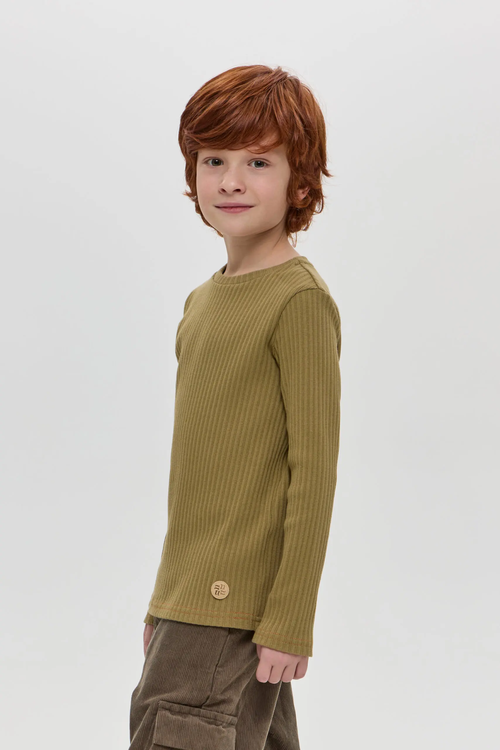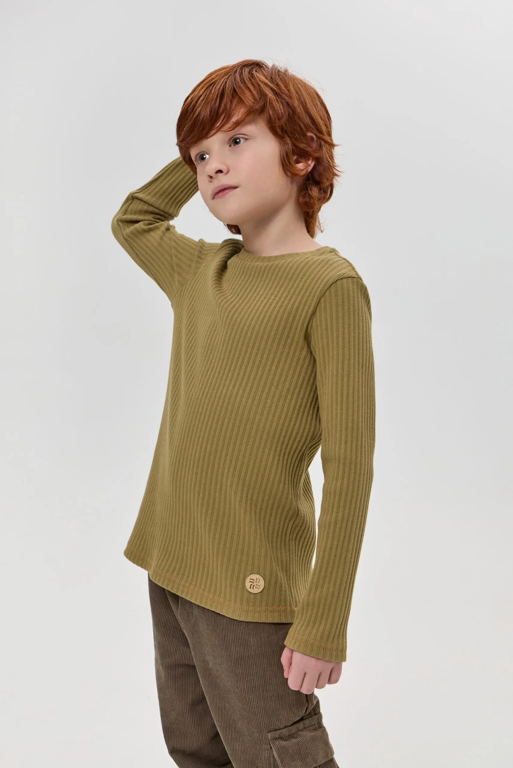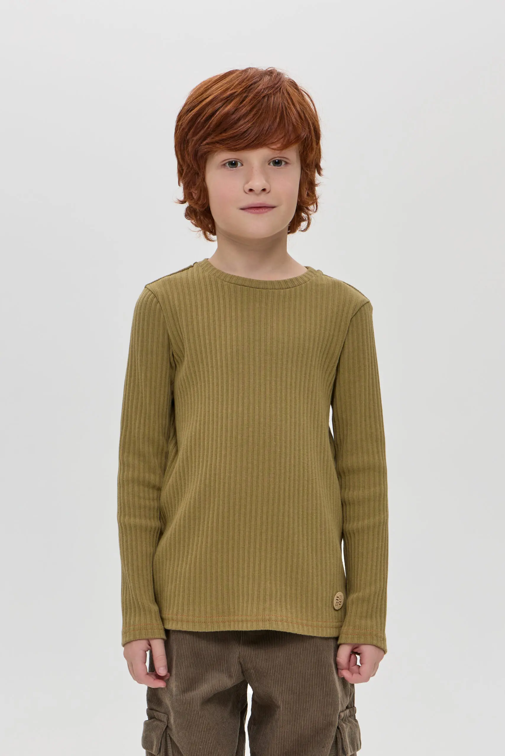Базовый детский лонгслив в цвете хаки — отличный выбор для создания стильного и удобного образа. Изготовленный из высококачественного хлопка, он обеспечивает приятные тактильные ощущения и комфорт, ... что особенно важно для активных детей. Лонгслив имеет классический крой с длинными рукавами, что делает его идеальным для прохладной погоды. Удобный круглый вырез горловины позволяет легко надевать и снимать изделие. Цвет хаки придаёт лонгсливу универсальность.