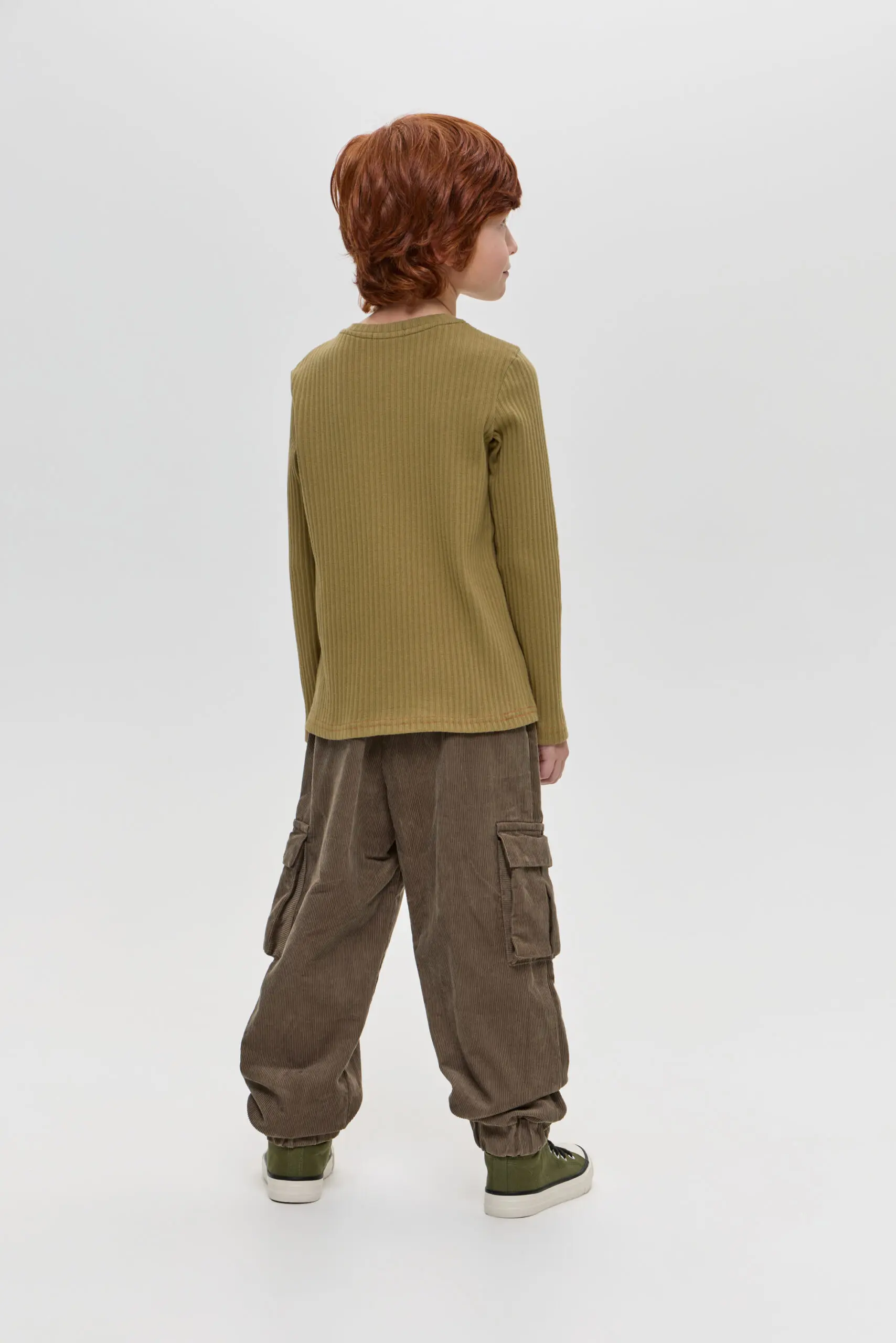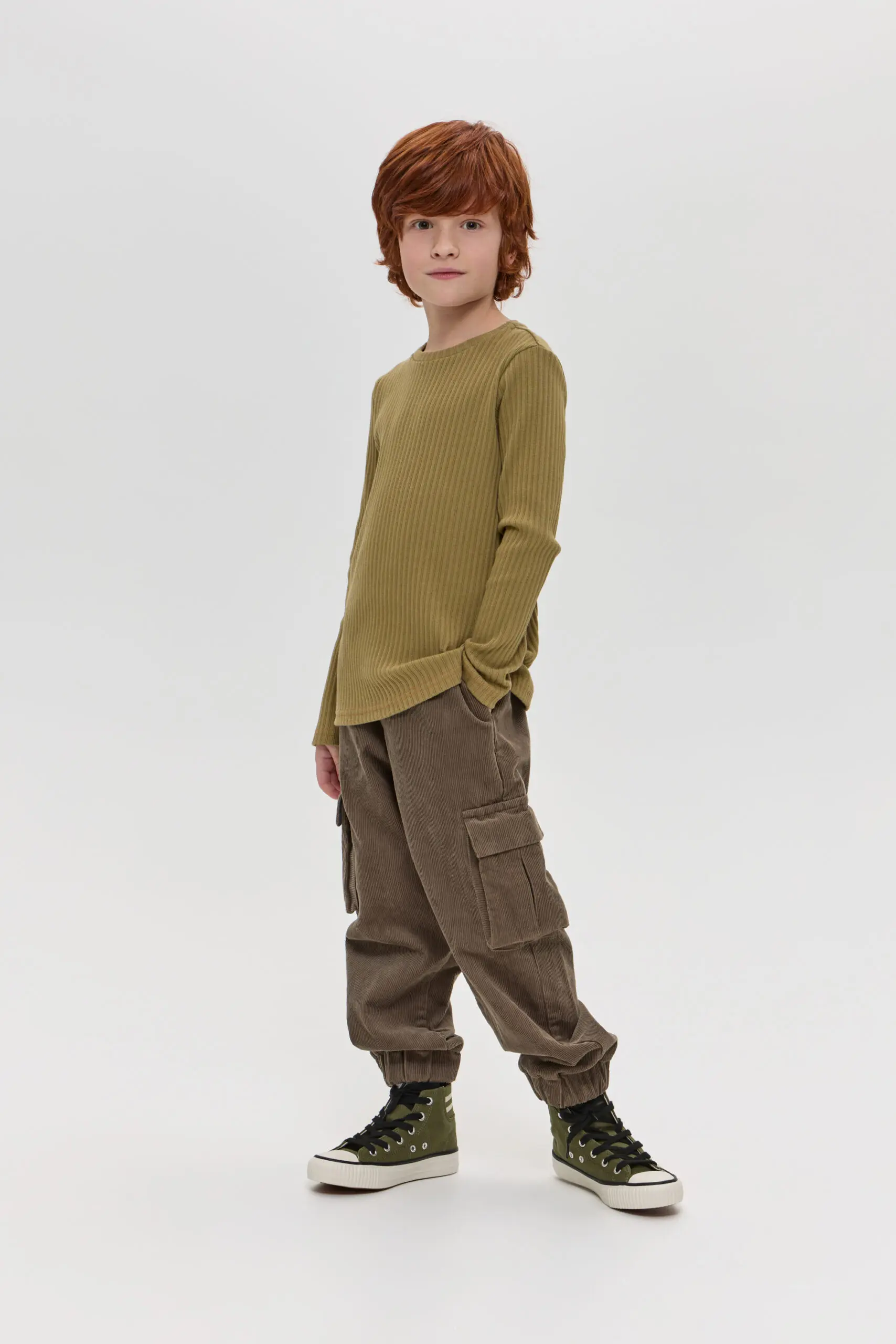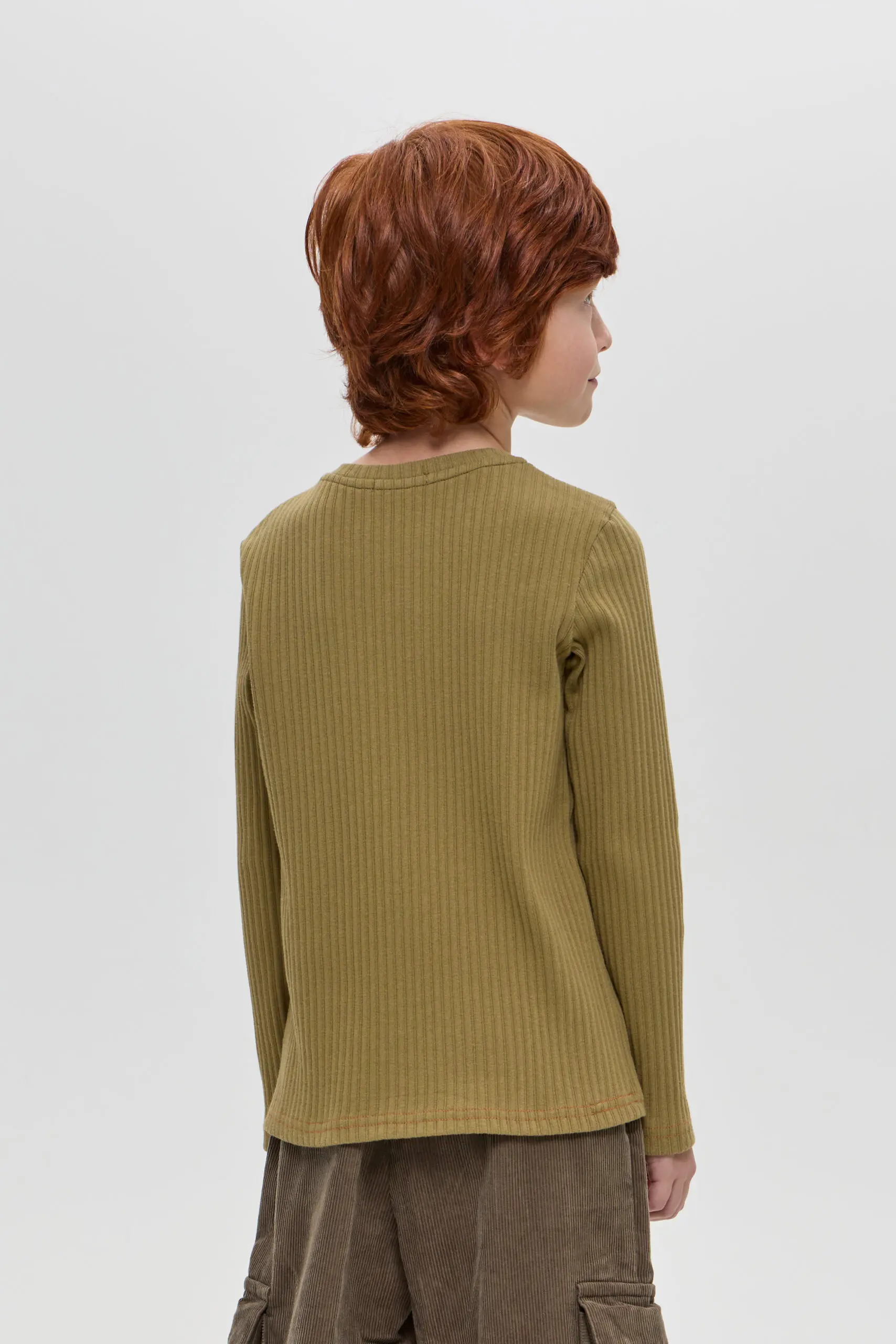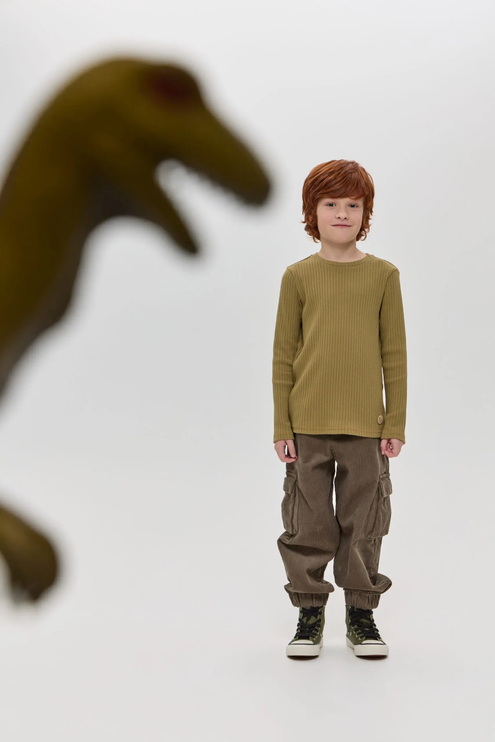 Базовый детский лонгслив в цвете хаки — отличный выбор для создания стильного и удобного образа. Изготовленный из высококачественного хлопка, он обеспечивает приятные тактильные ощущения и комфорт, ... что особенно важно для активных детей. Лонгслив имеет классический крой с длинными рукавами, что делает его идеальным для прохладной погоды. Удобный круглый вырез горловины позволяет легко надевать и снимать изделие. Цвет хаки придаёт лонгсливу универсальность.