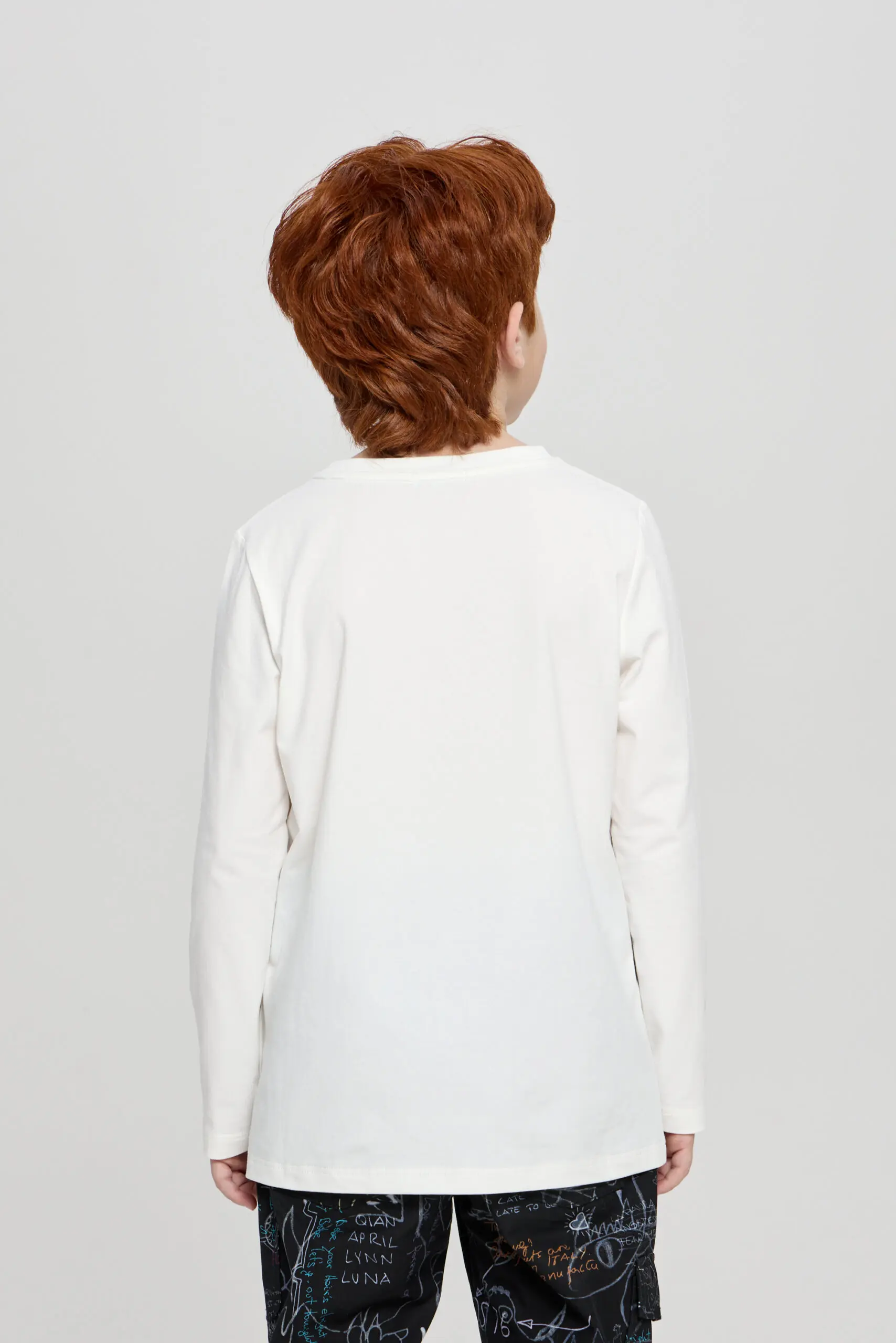 Универсальный детский лонгслив белого цвета станет незаменимой вещью в гардеробе вашего ребенка.