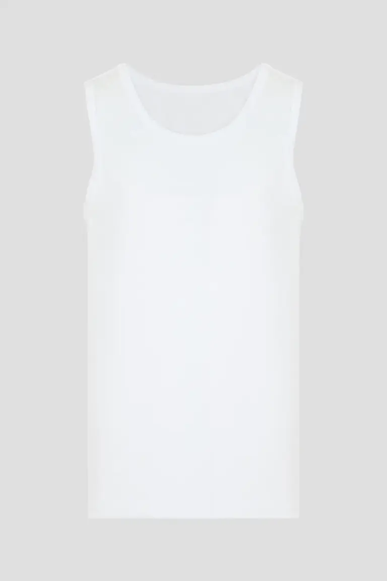 Белая майка для мальчика классического кроя, полуприлегающего силуэта. Модель выполнена из высококачественного хлопка с добавлением эластана, который улучшает посадку майки на фигуре ребенка и снижает риск ... деформации при стирке.