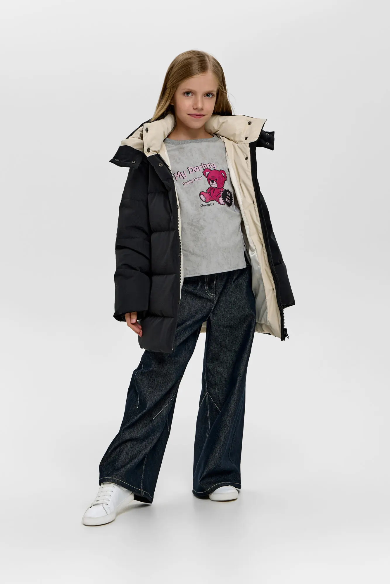 Зимний пуховик для девочки – это не просто модная, но и практичная составляющая зимнего гардероба. Благодаря свободному фасону, он не сковывает движения, давая возможность активно играть ... на свежем воздухе. Глубокий капюшон предохраняет от порывов ветра и мокрого снега, делая этот пуховик прекрасным вариантом для холодной погоды. Удобная молния по всей длине обеспечивает легкость в использовании. Внутренние карманы превосходно подойдут для храниния личных вещей. Натуральный пухо-перьевой наполнитель эффективно сохраняет тепло тела.