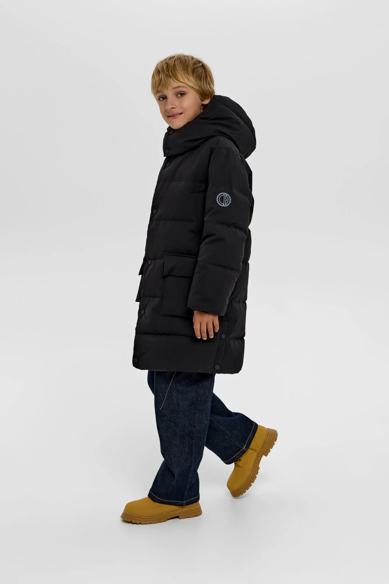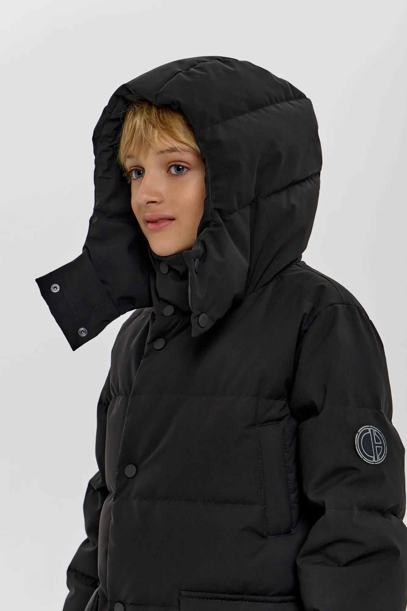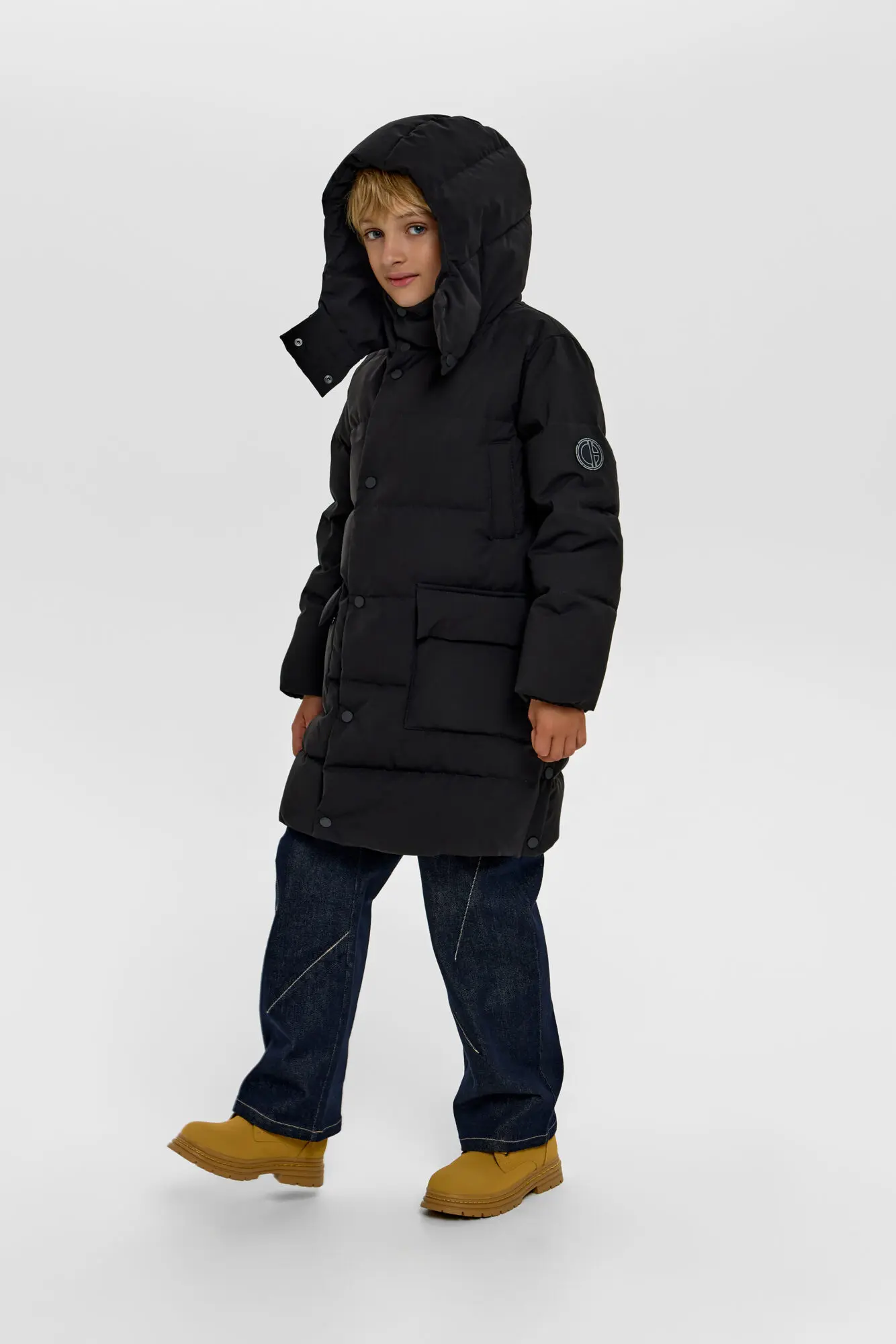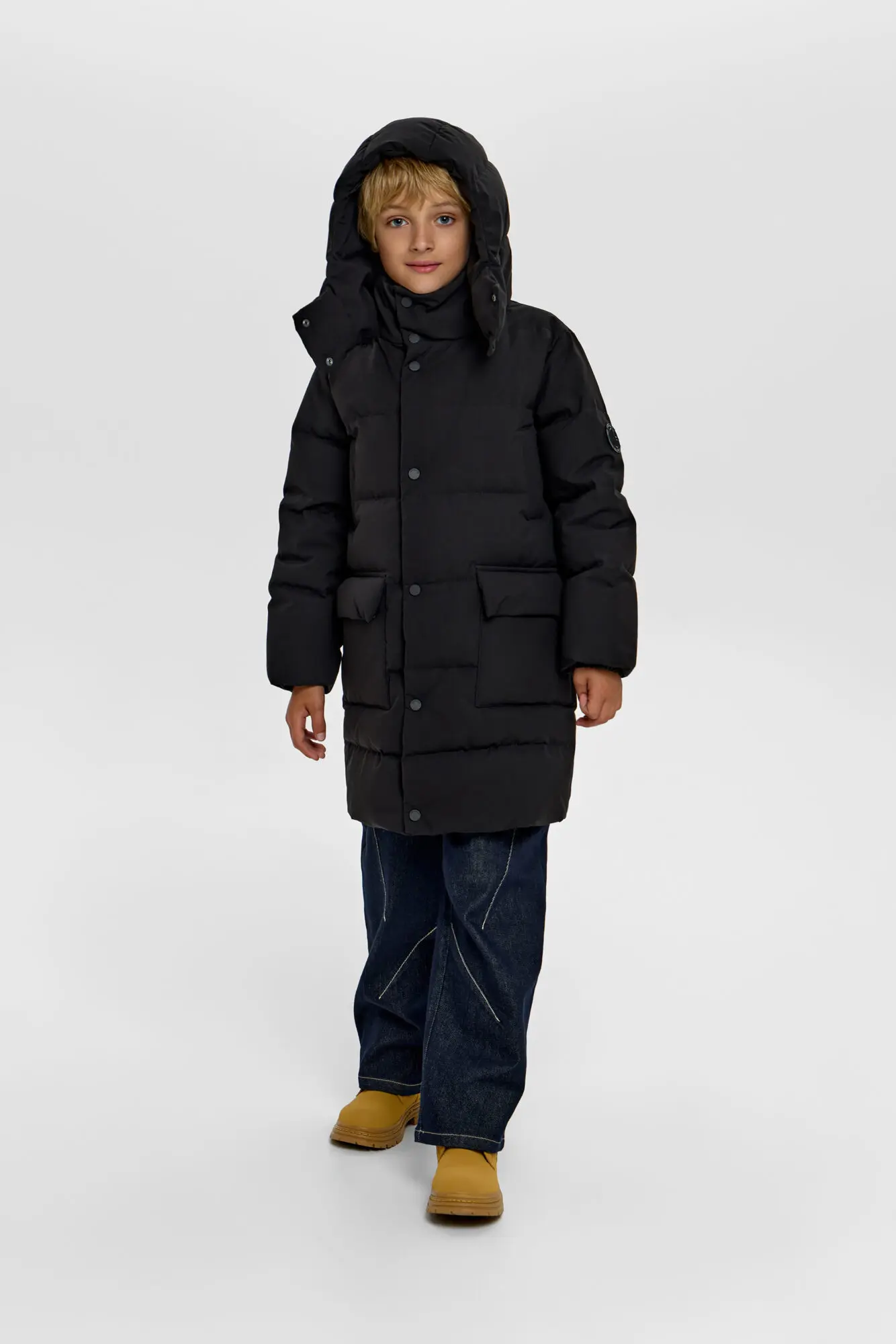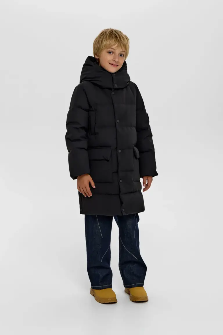 Чтобы защитить ребенка от зимних холодов, превосходным выбором станет пуховик. Удлиненная куртка для мальчиков сочетает в себе стиль и функциональность. Использование высококачественных материалов обеспечивает комфорт, надежно ... защищая от ветра, снега и легкого дождя. Прямой крой, лаконичная горизонтальная отстрочка, широкий воротник, глубокий капюшон и большие накладные карманы делают это пальто практичным и незаменимым элементом зимнего гардероба. Утеплитель из пуха и пера прекрасно удерживает тепло. Рекомендовано для ношения при температуре от -15 °С до - 25 °С в зависимости от одежды первого и второго слоя.