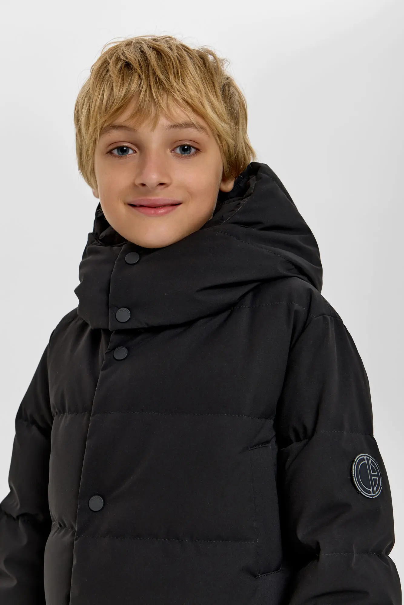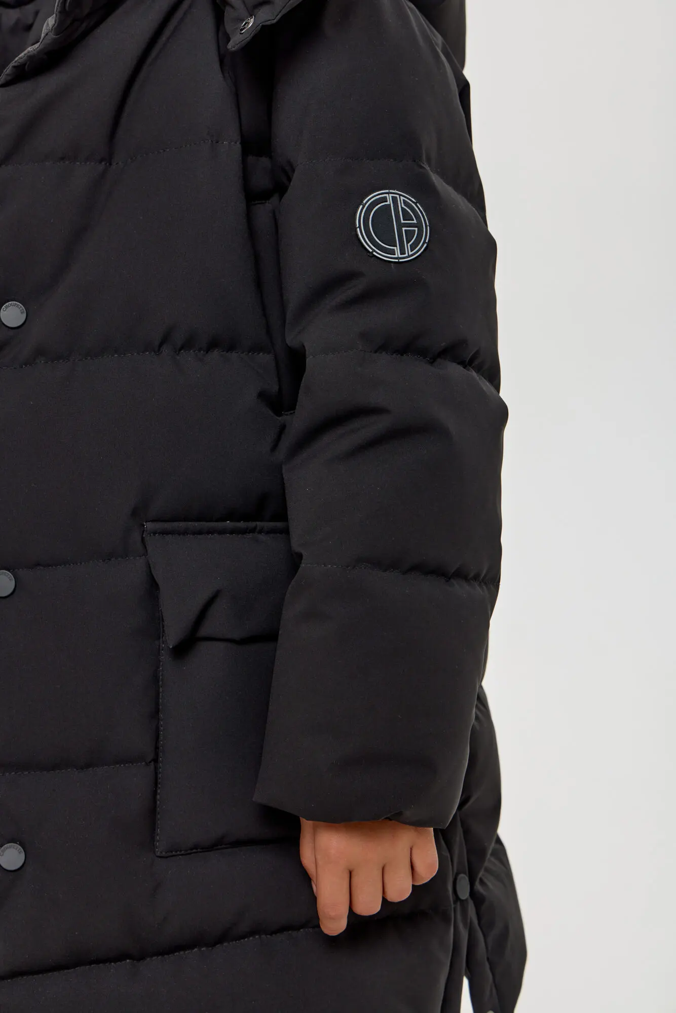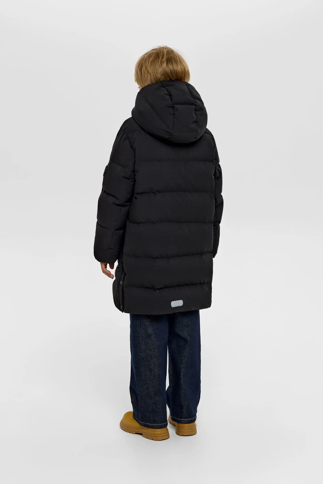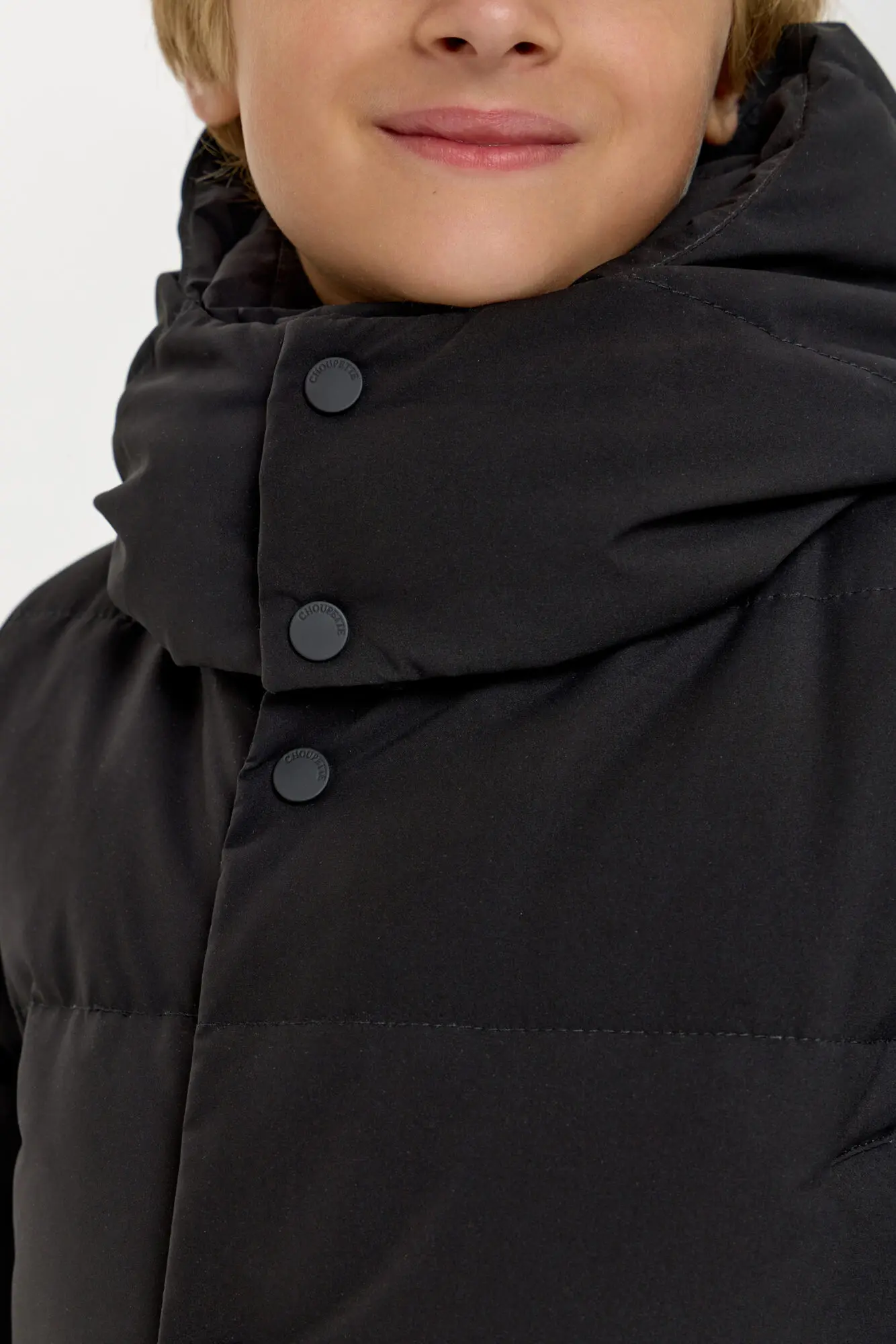 Чтобы защитить ребенка от зимних холодов, превосходным выбором станет пуховик. Удлиненная куртка для мальчиков сочетает в себе стиль и функциональность. Использование высококачественных материалов обеспечивает комфорт, надежно ... защищая от ветра, снега и легкого дождя. Прямой крой, лаконичная горизонтальная отстрочка, широкий воротник, глубокий капюшон и большие накладные карманы делают это пальто практичным и незаменимым элементом зимнего гардероба. Утеплитель из пуха и пера прекрасно удерживает тепло. Рекомендовано для ношения при температуре от -15 °С до - 25 °С в зависимости от одежды первого и второго слоя.