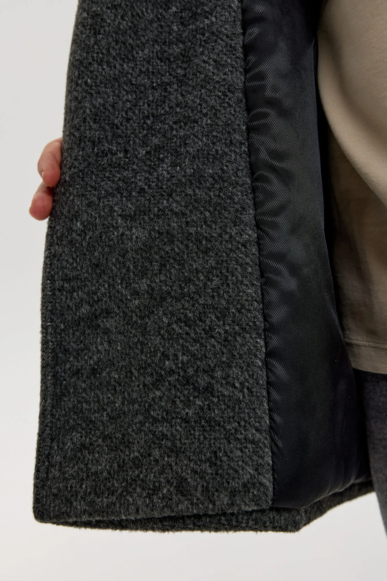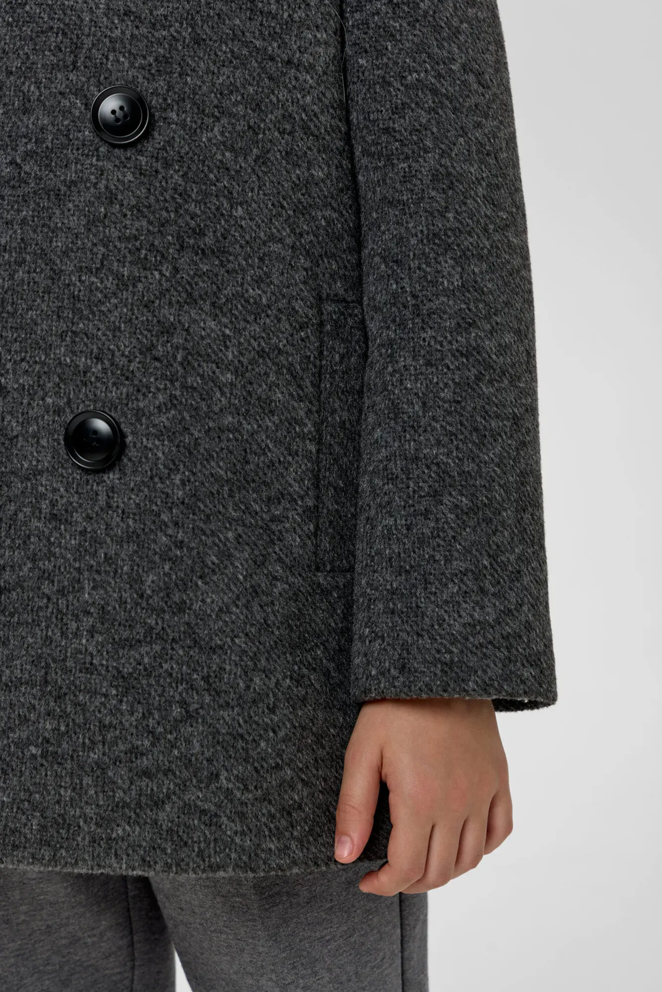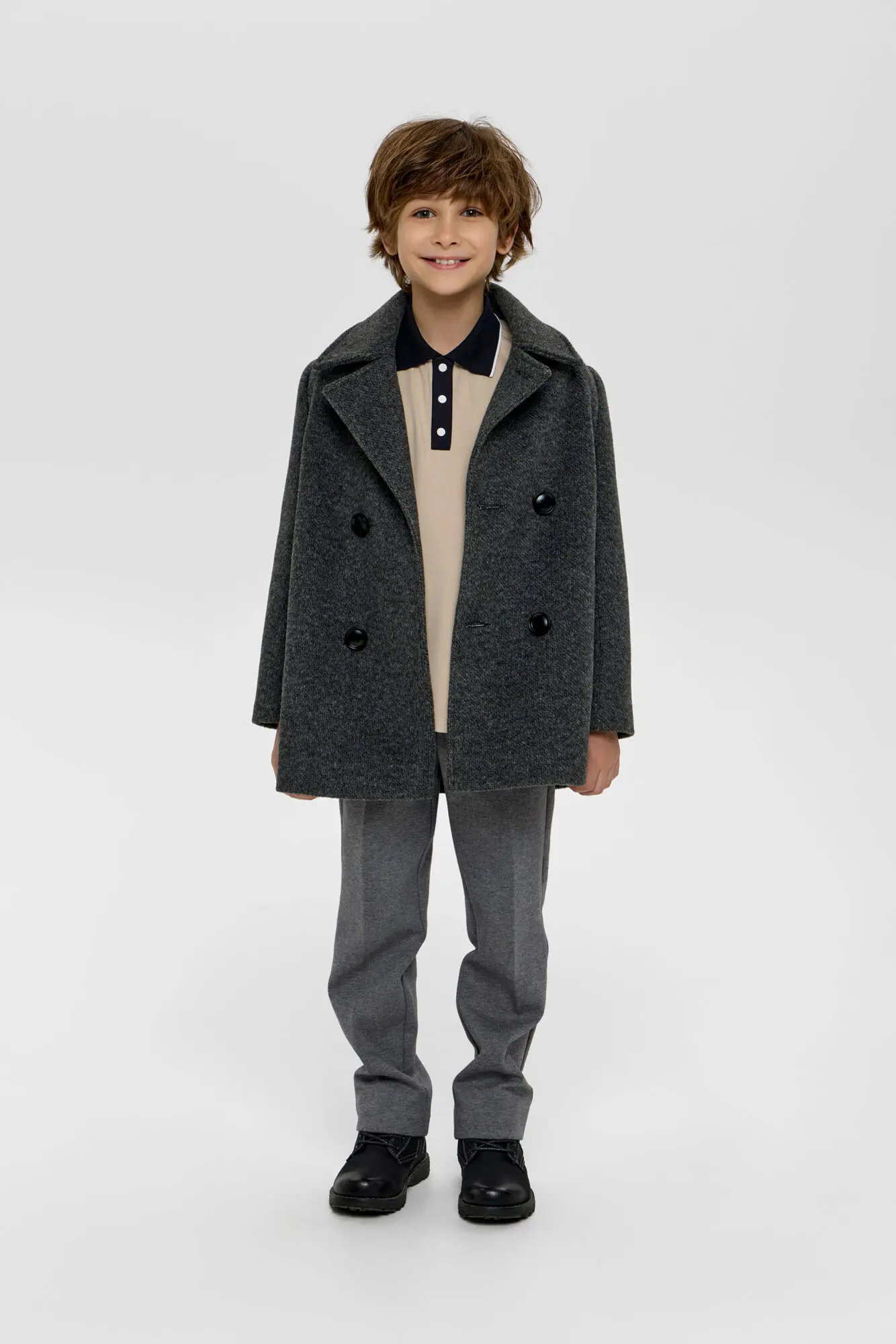 Элегантное двубортное пальто насыщенного антрацитового оттенка идеально подходит для создания стильного и строгого образа. Прямой крой модели дополнен лаконичным английским воротником и застегивается на пуговицы. Легкий ... полиэфирный утеплитель обеспечивает отличную теплоизоляцию. Это гарантирует комфорт и защиту от холода даже в прохладную погоду. Пальто отлично гармонирует и с элегантными брюками, и с джинсами.