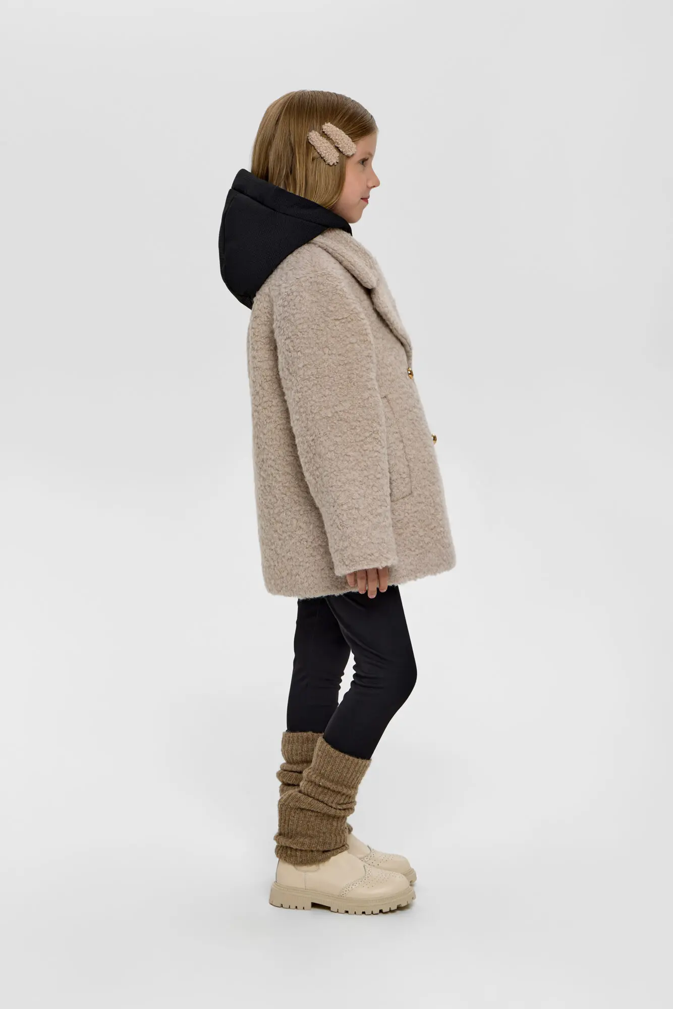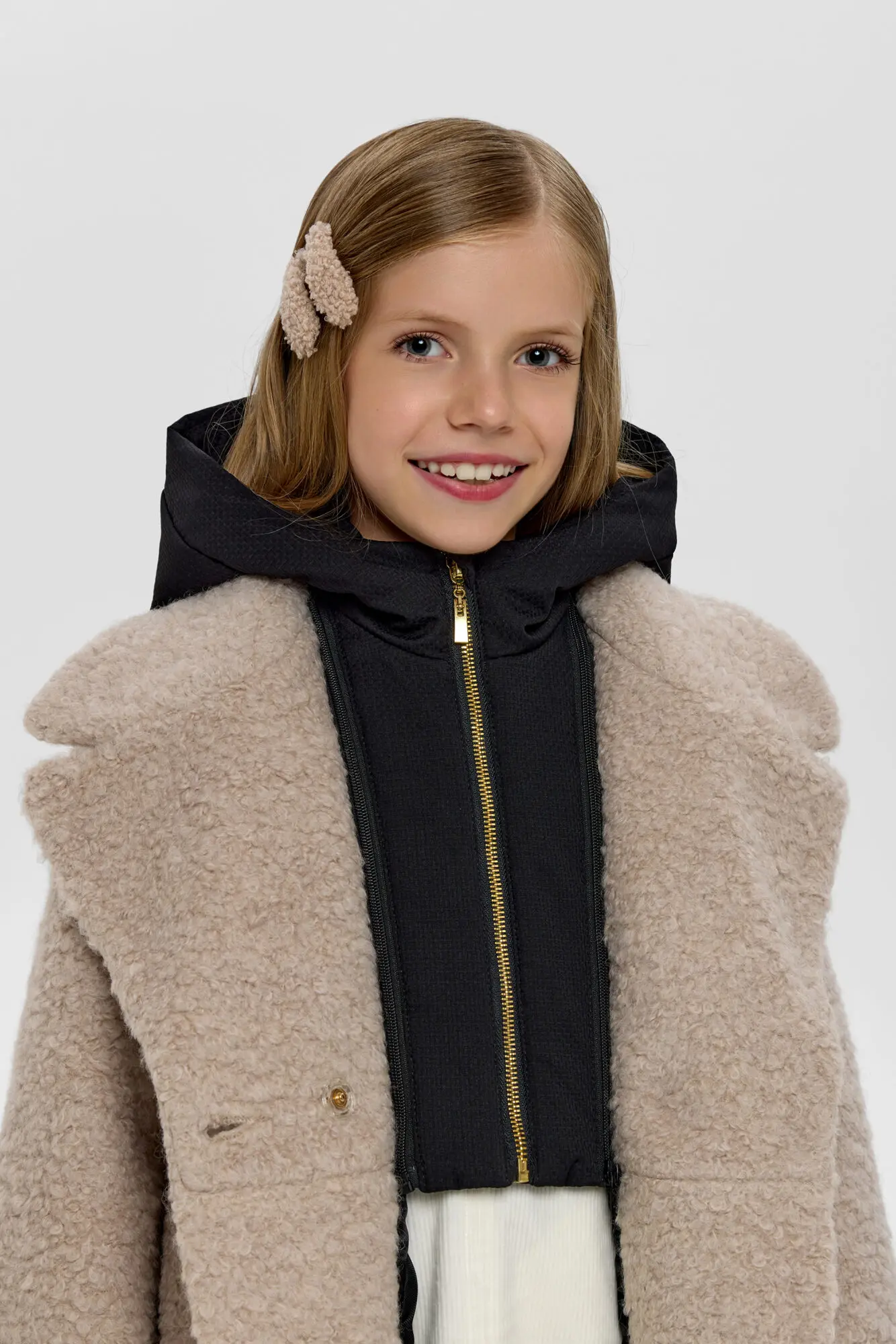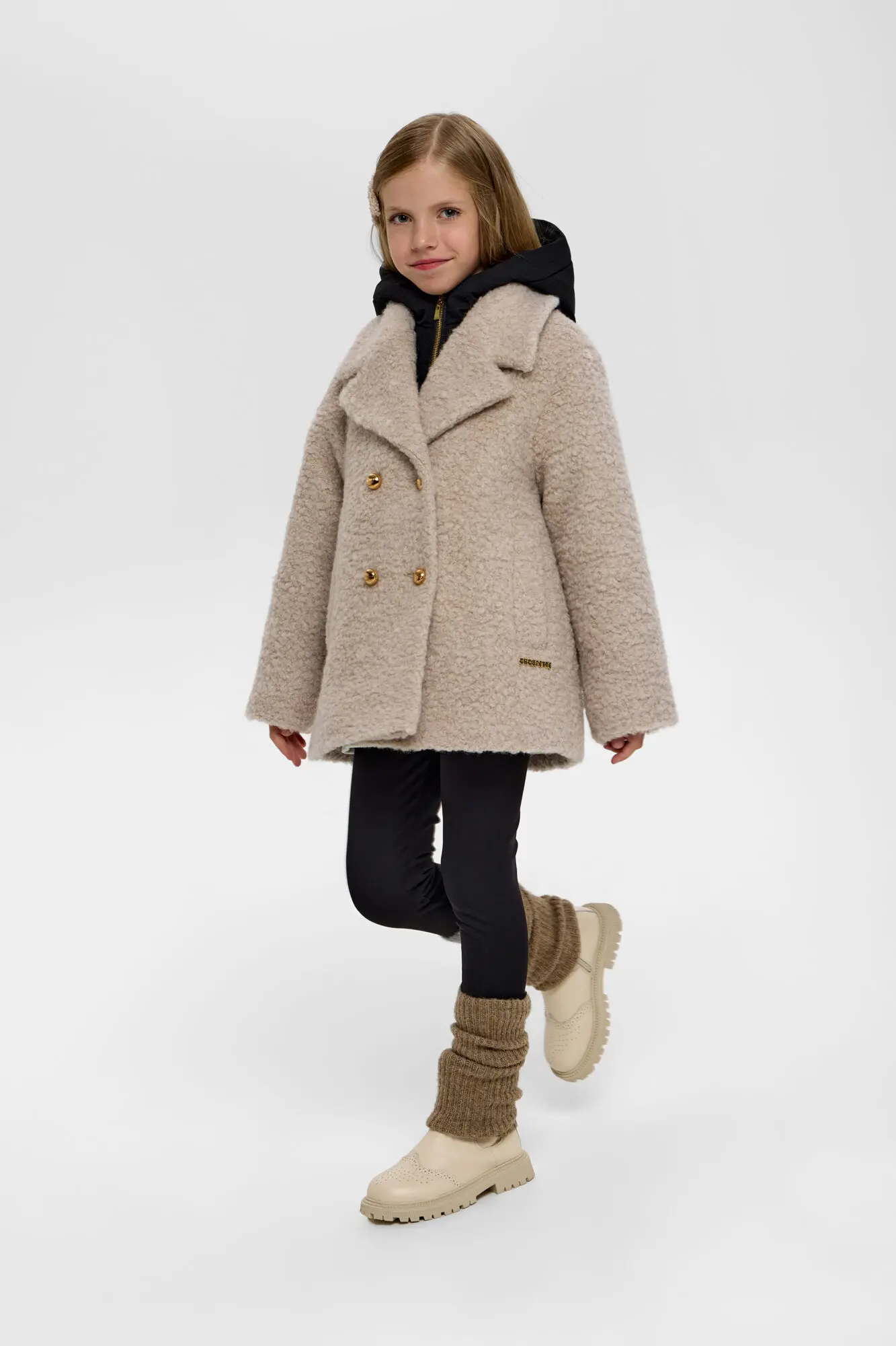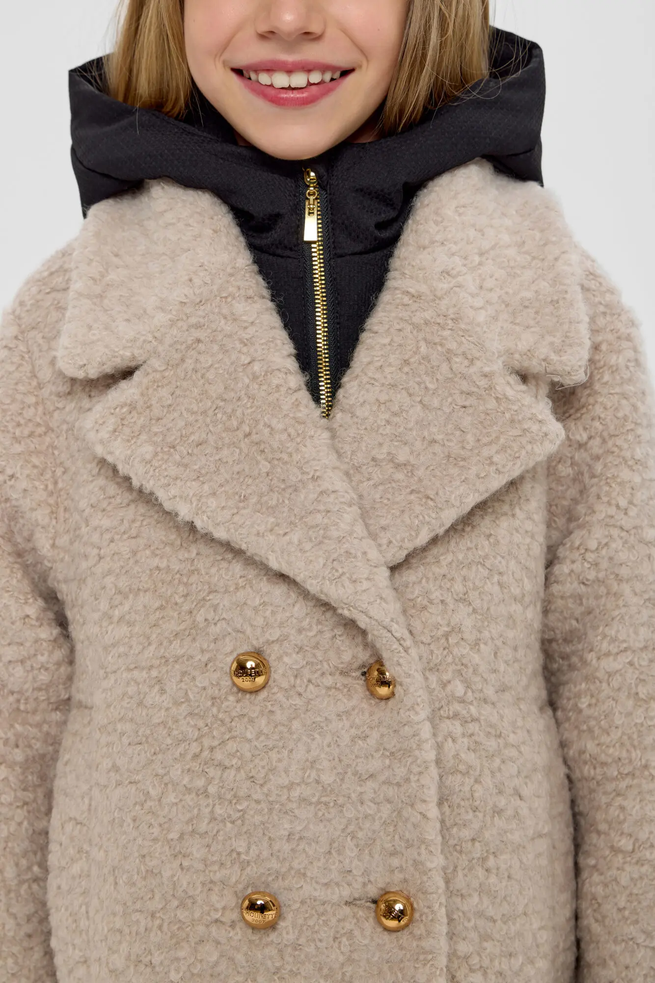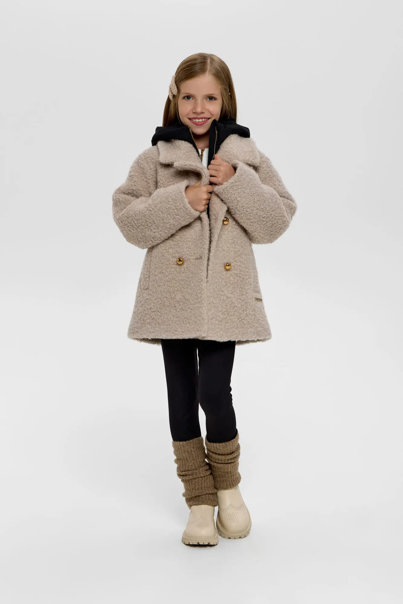 Утепленное пальто станет отличным выбором для гардероба стильной девочки. Фасон выполнен в форме трапеции, предусмотрен отстегивающийся утепленный капюшон, который трансформируется в манишку. Застежка реализована на пуговицах, ... выделяющихся на общем фоне. По бокам пальто расположены два глубоких прорезных кармана.