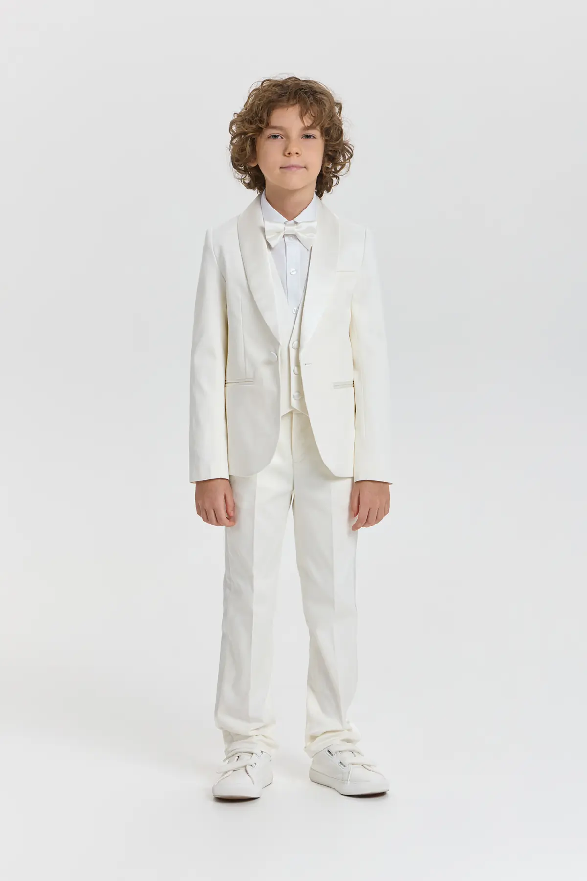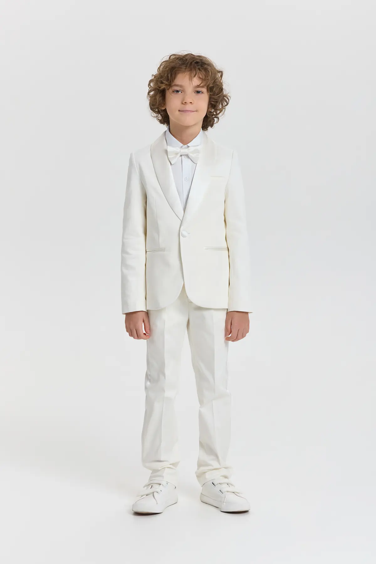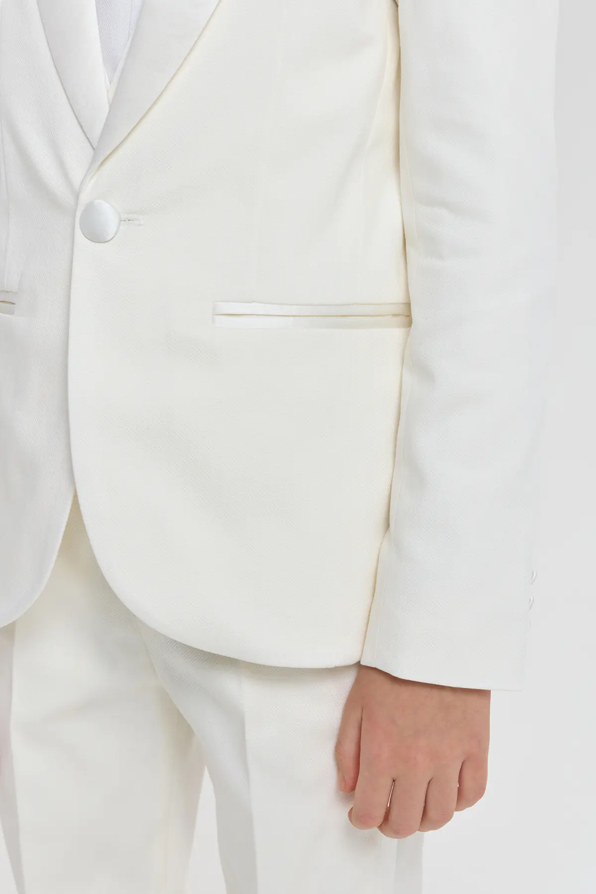 Торжественный пиджак в изысканном молочно-кремовом оттенке станет прекрасной основой для элегантного образа мальчика. Модель аккуратного полуприлегающего силуэта выполнена из гладкой ткани, формирующей чёткие линии и придающей ... образу утончённый вид. Мягкие лацканы, застёжка на одну пуговицу и аккуратные прорезные карманы подчёркивают сдержанную элегантность, а минималистичный дизайн добавляет образу изящества.