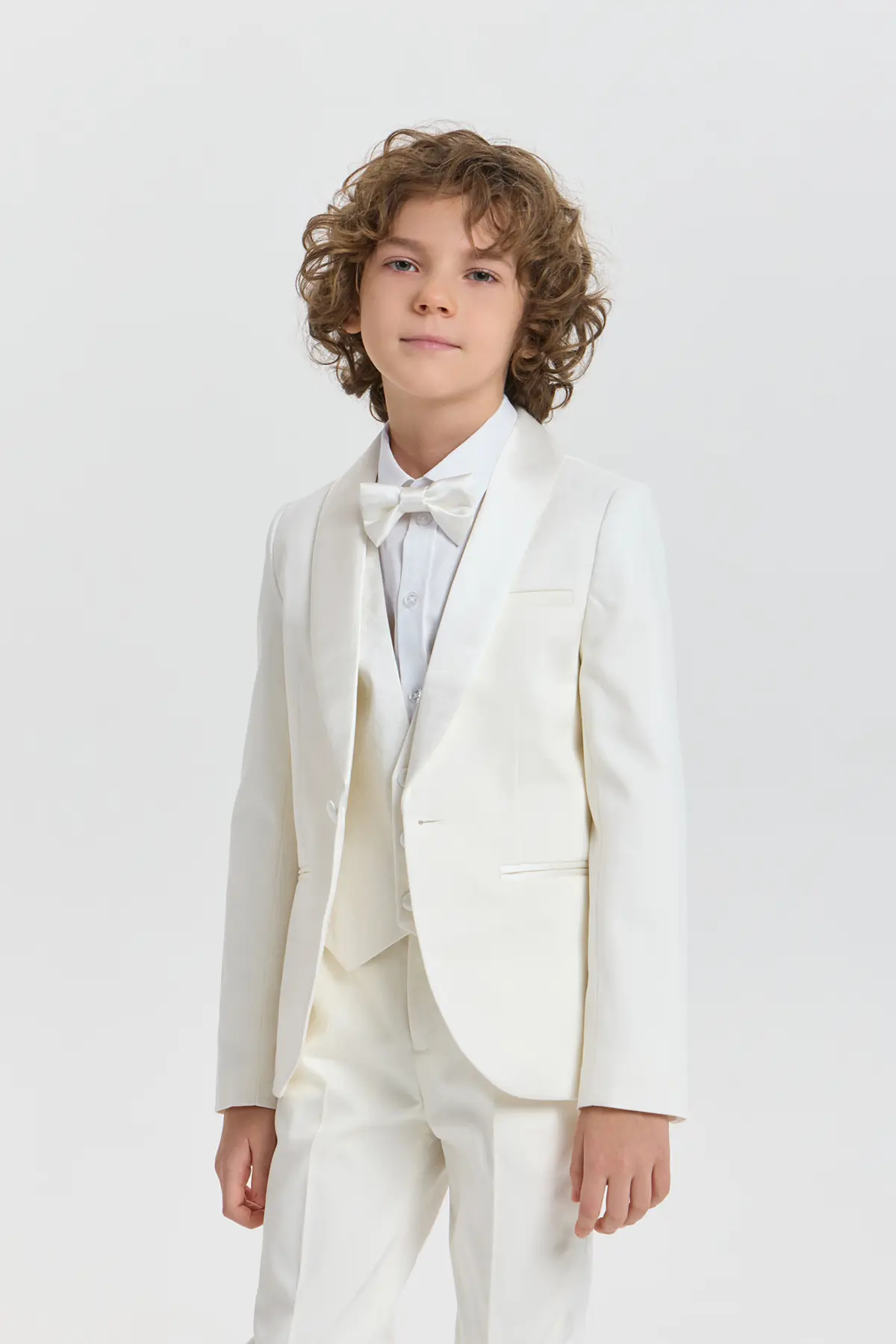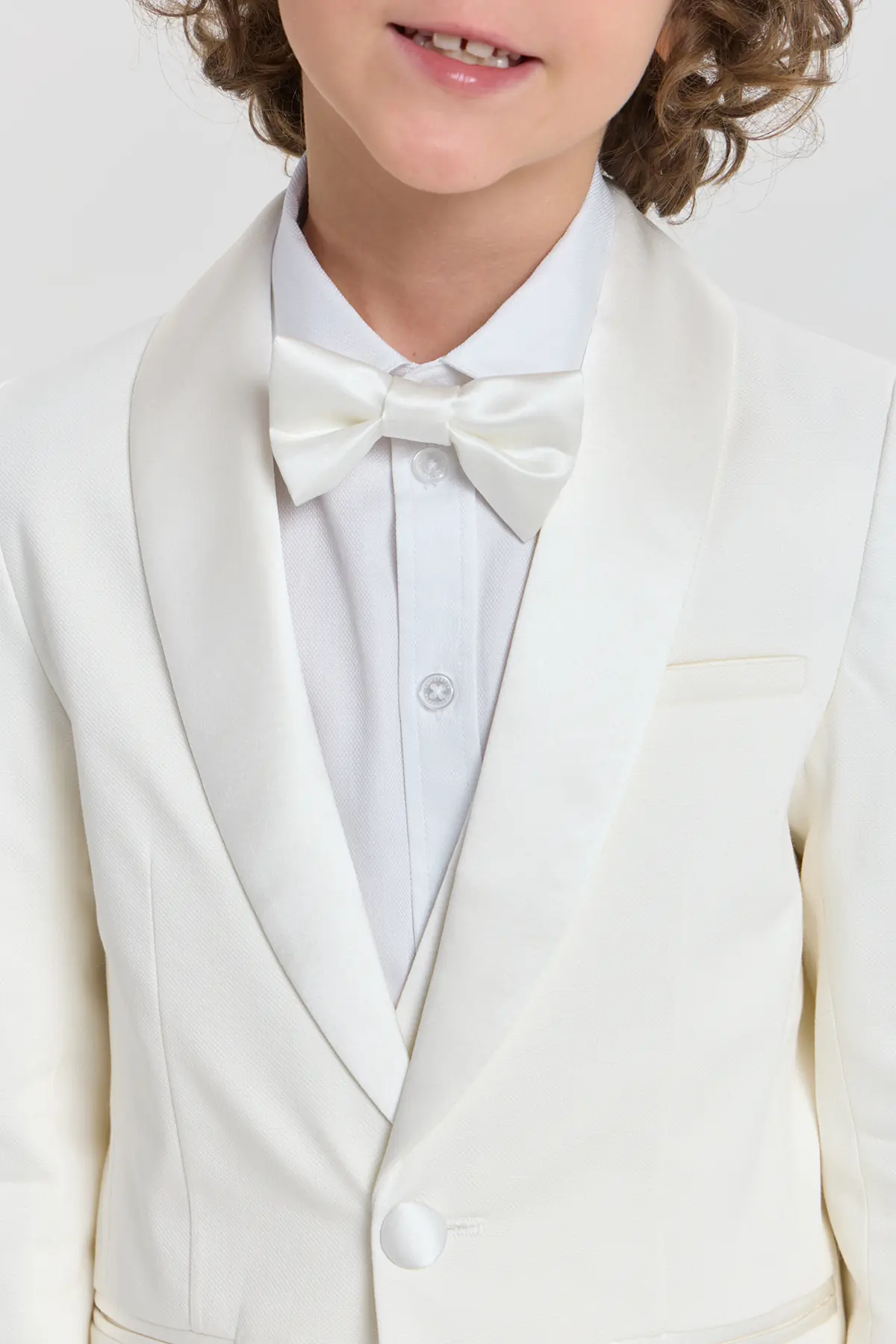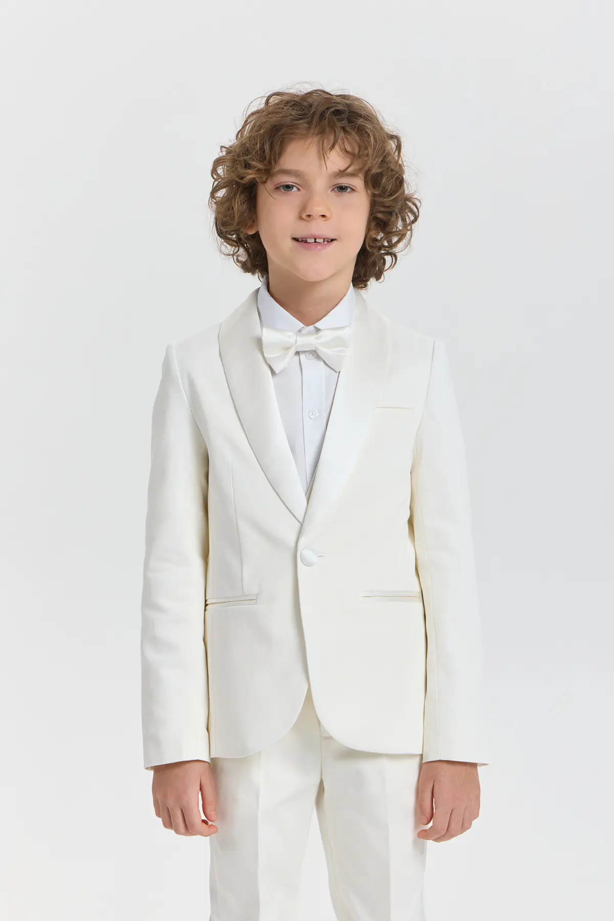 Торжественный пиджак в изысканном молочно-кремовом оттенке станет прекрасной основой для элегантного образа мальчика. Модель аккуратного полуприлегающего силуэта выполнена из гладкой ткани, формирующей чёткие линии и придающей ... образу утончённый вид. Мягкие лацканы, застёжка на одну пуговицу и аккуратные прорезные карманы подчёркивают сдержанную элегантность, а минималистичный дизайн добавляет образу изящества.