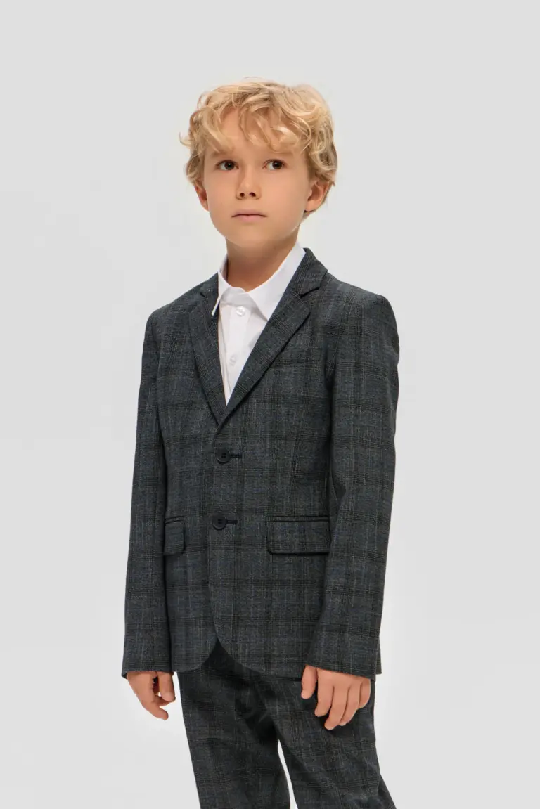 Для школьника стильный клетчатый пиджак — тренд сезона. Модель полуприлегающего кроя имеет традиционный воротник с лацканами, застегивается на пуговицы и снабжен нагрудным карманом, а также боковыми ... карманами с клапанами. Внутри пиджака спрятан потайной кармашек, а сзади предусмотрена разрез-шлица. Декоративные пуговицы на рукавах подчеркивают манжеты. Подкладочная ткань этой модели отличается высоким содержанием вискозы. Серый пиджак в клетку – прекрасный выбор как для школьных будней, так и для различных праздничных мероприятий.