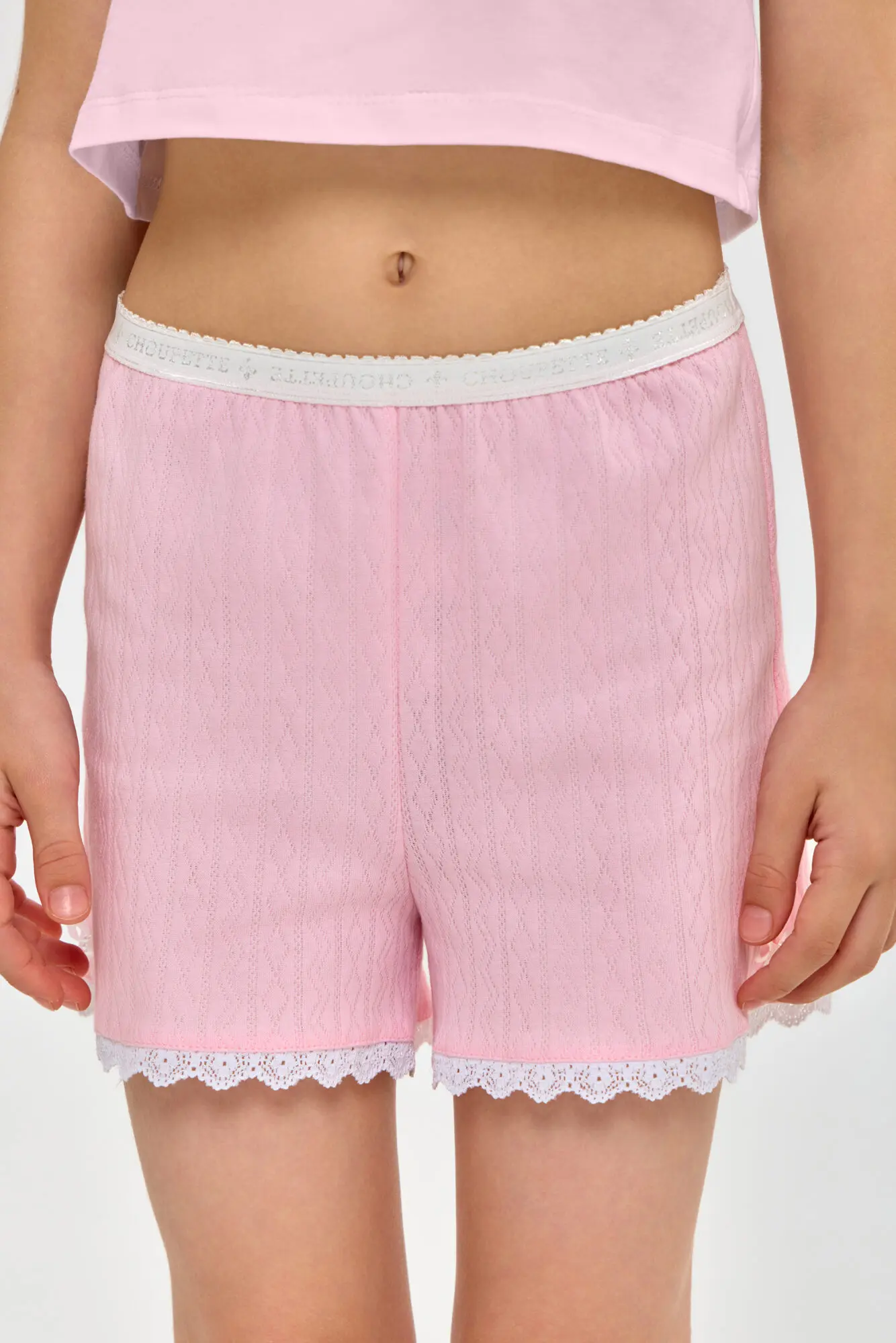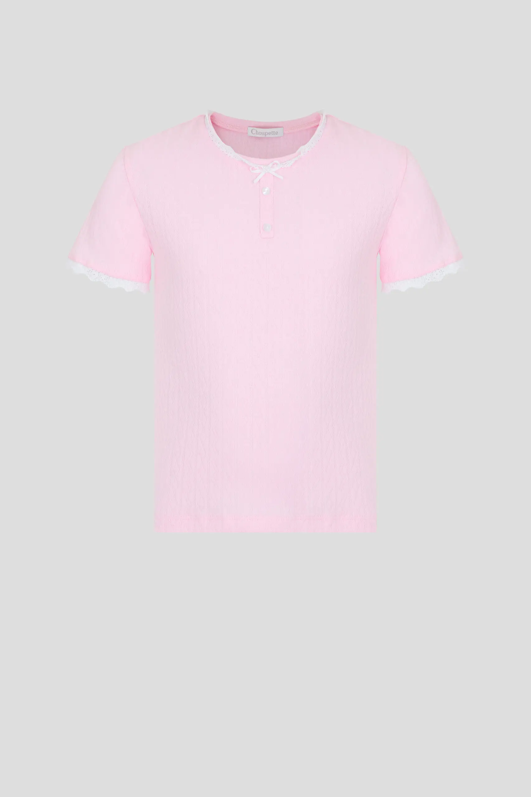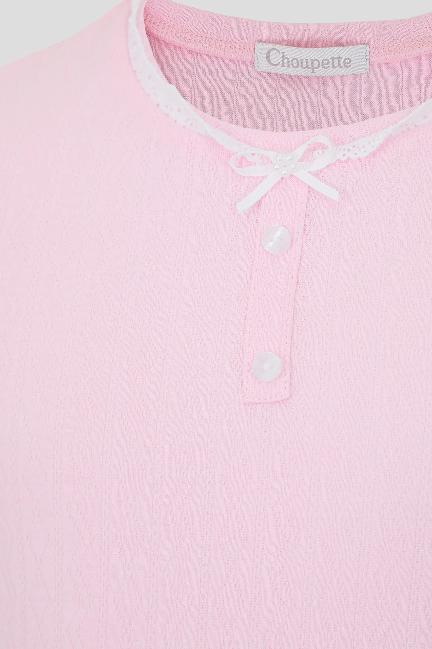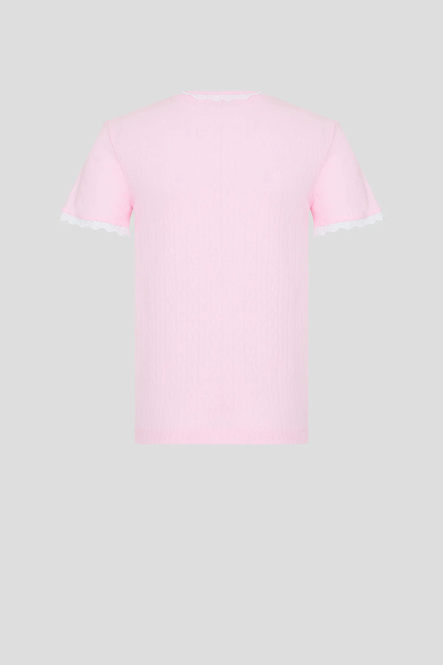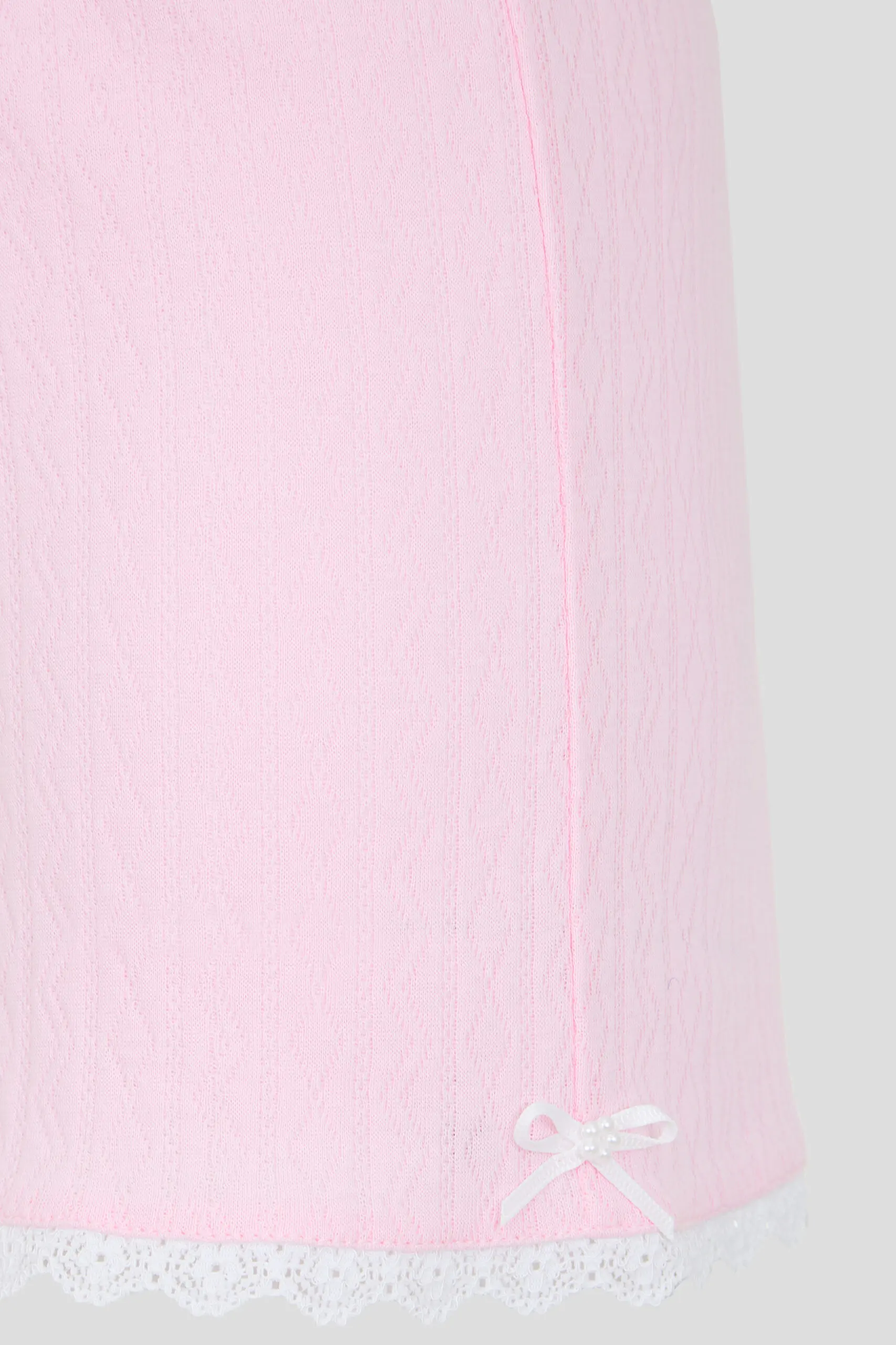 Детская пижама высокого качества для девочки. Комплект включает в себя футболку с короткими рукавами и шорты. Футболка свободного кроя не сковывает движений. Шорты свободного кроя, выполненные ... в нежном розовом цвете, оснащены эластичной резинкой на талии.
