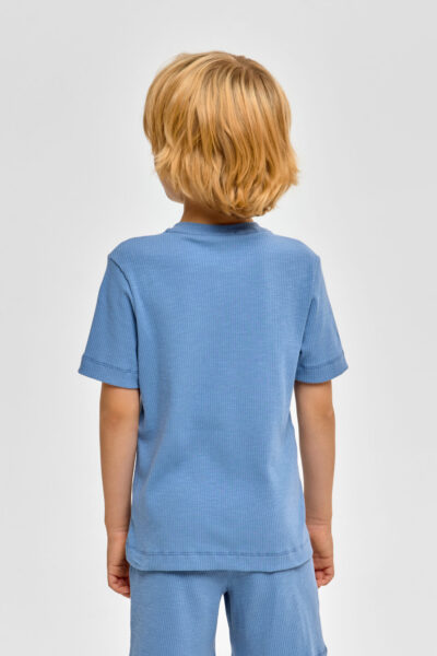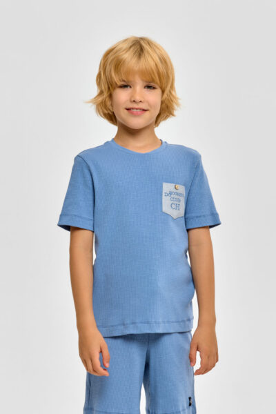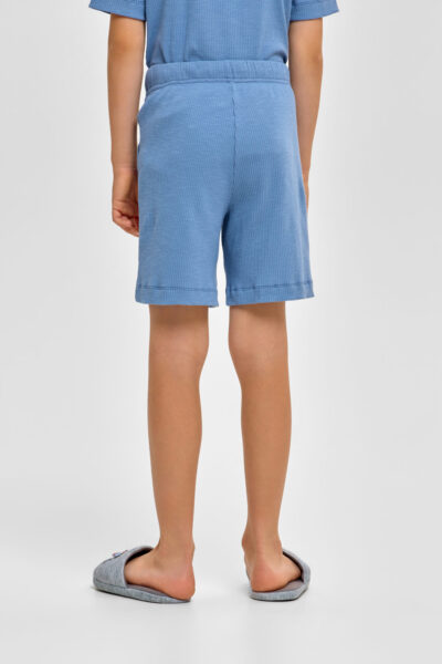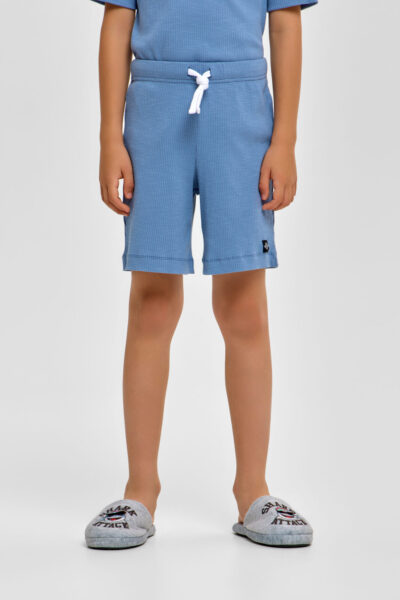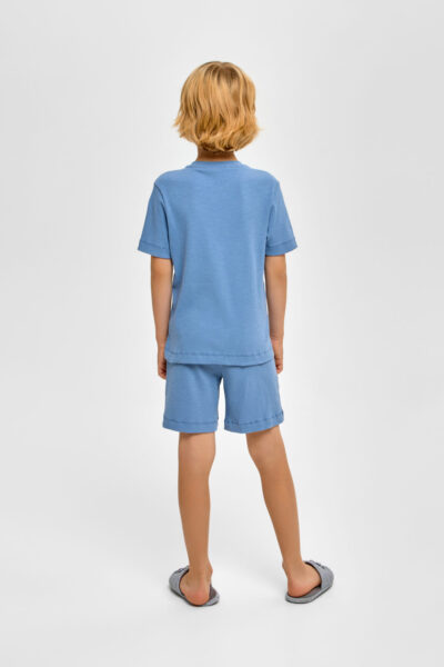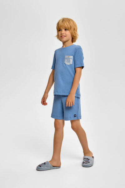 Детская пижама для мальчика – отличный выбор для спокойного ночного отдыха. Футболка имеет свободный силуэт и короткие рукава. Круглый вырез горловины обработан контрастной окантовкой. Шорты оснащены ... удобной эластичной резинкой в поясе.