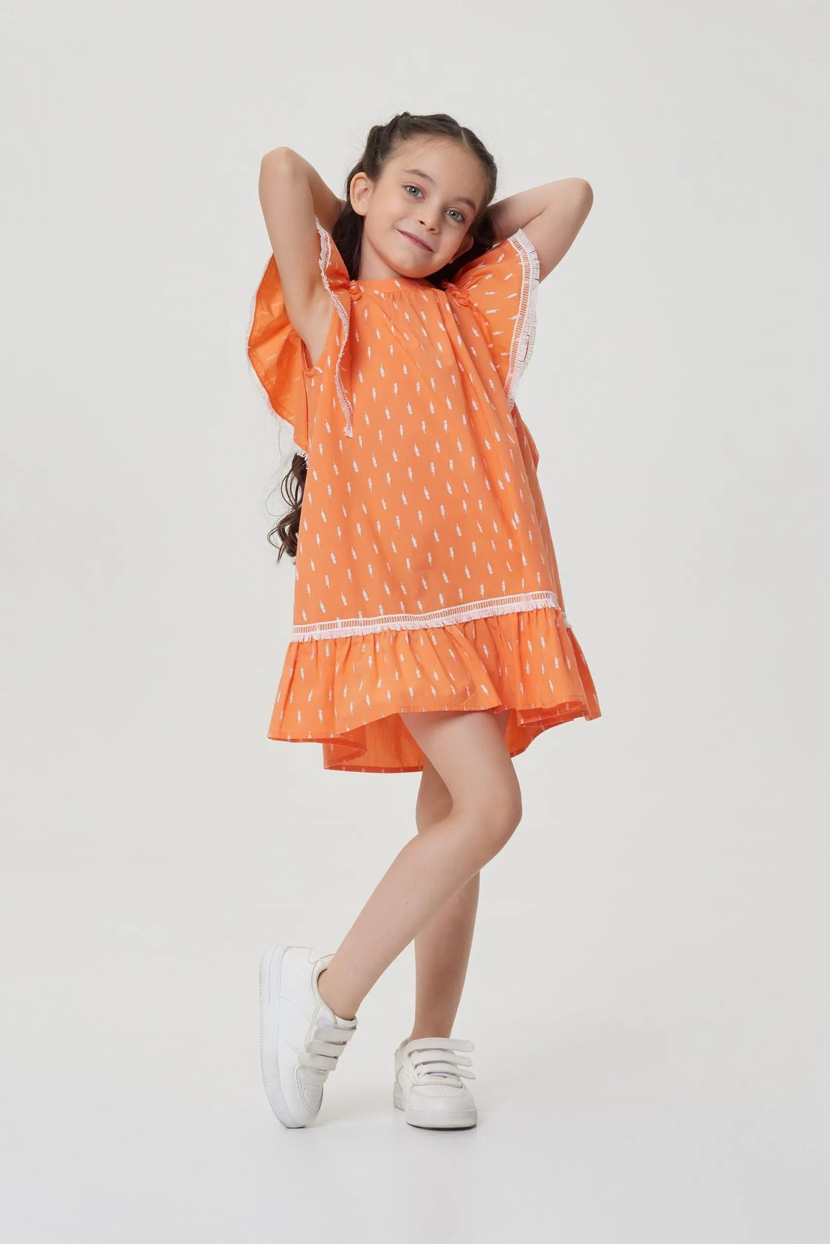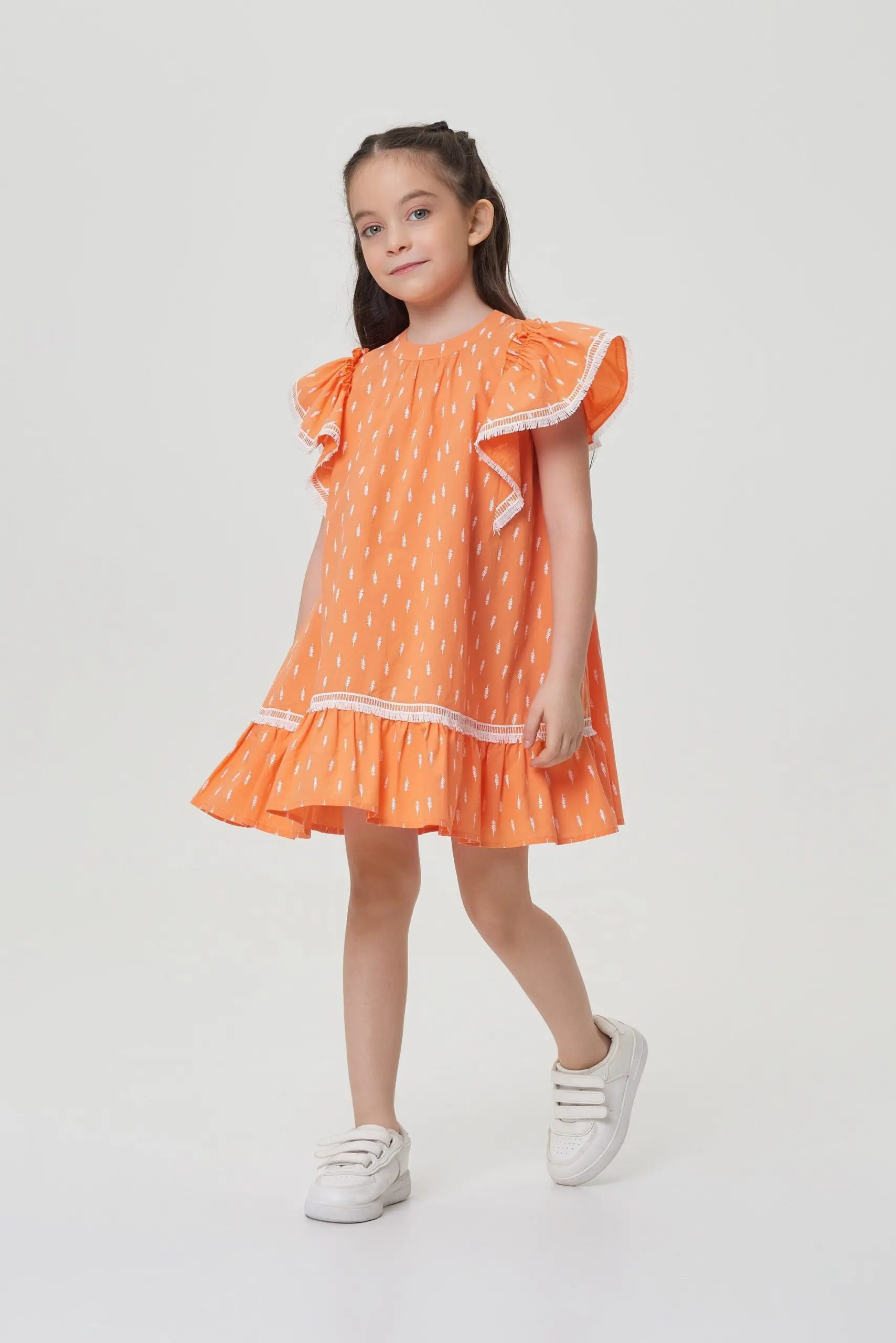 Они создают эффект крылышек на рукавах, добавляя нежность и легкость образу маленькой модницы.