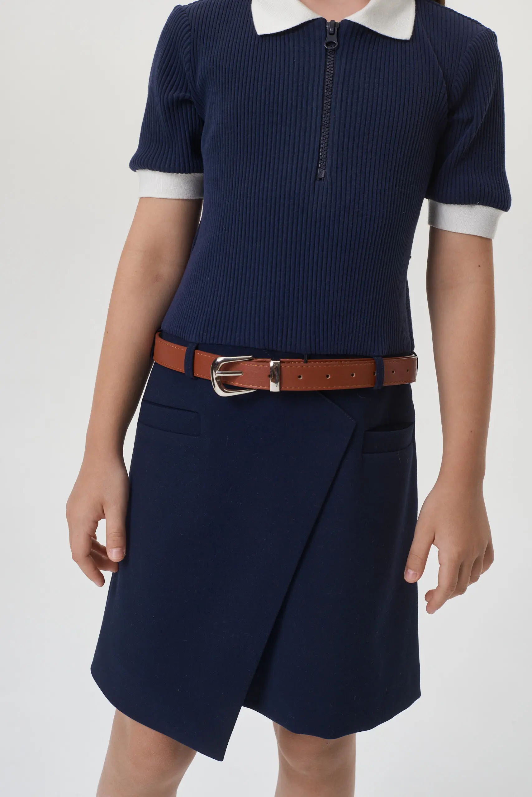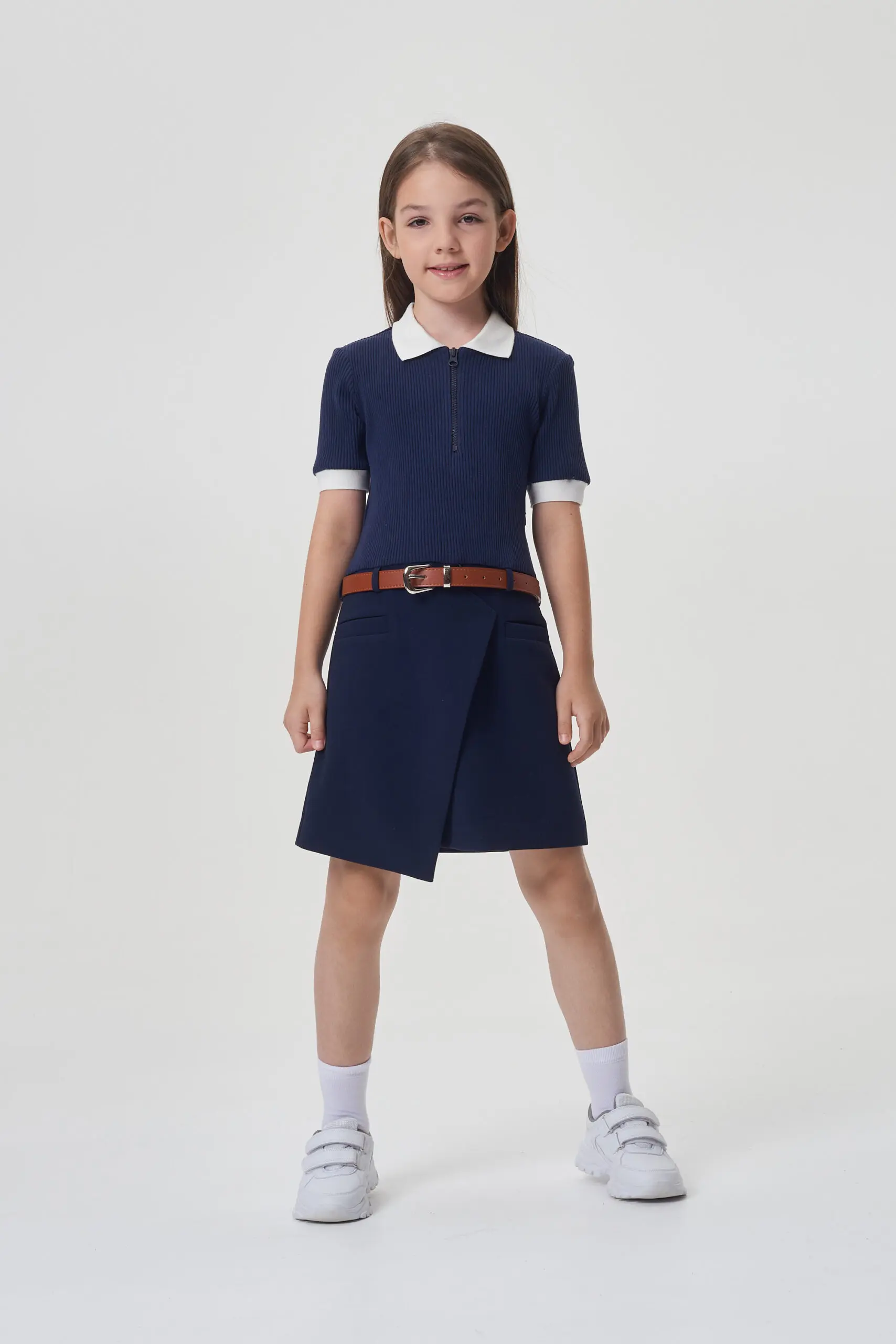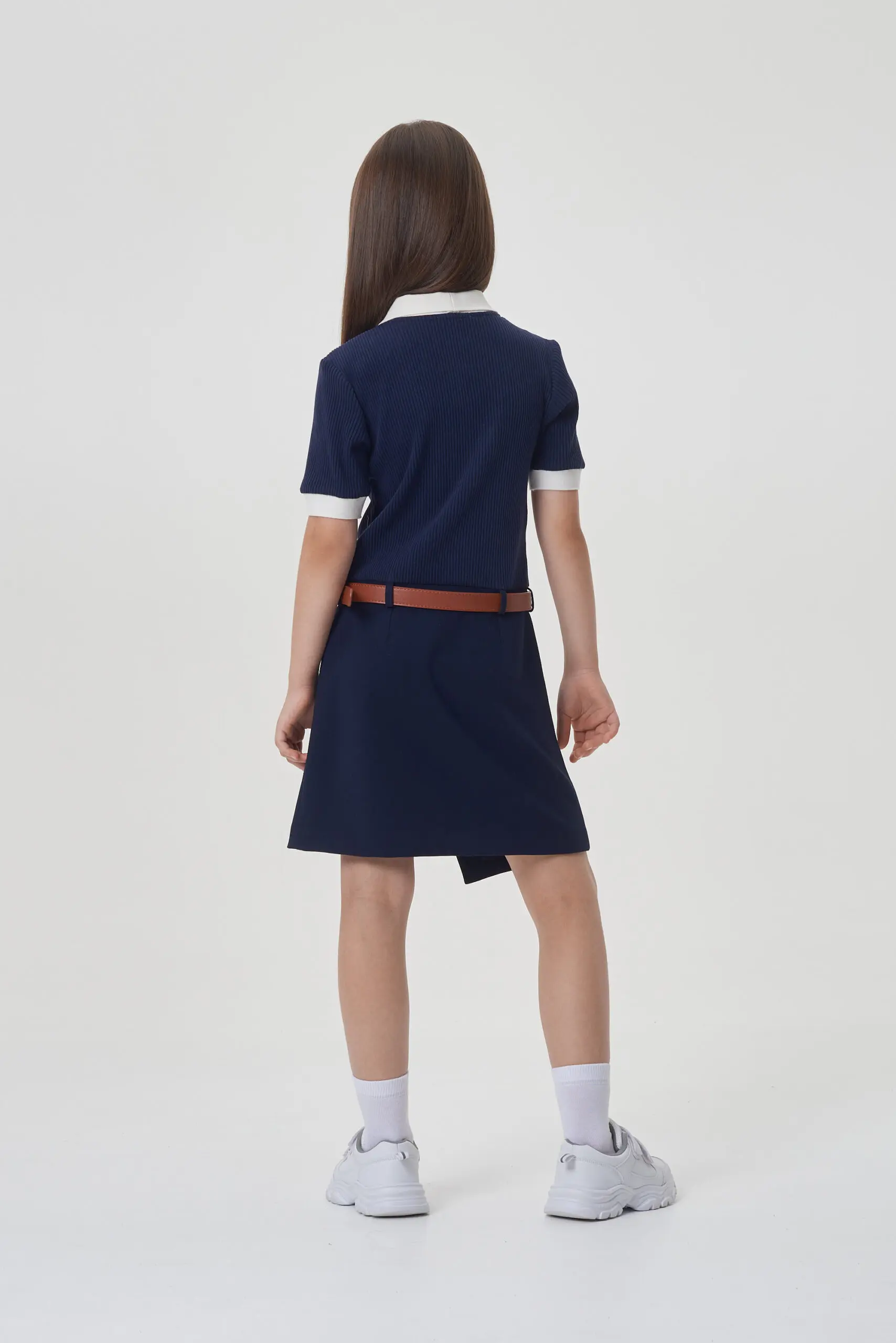 Контрастные детали отделки в сочетании с декором в виде пояса добавляют этой модели оригинальности, делая ... ее стильным предметом гардероба каждой ученицы.