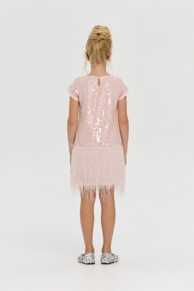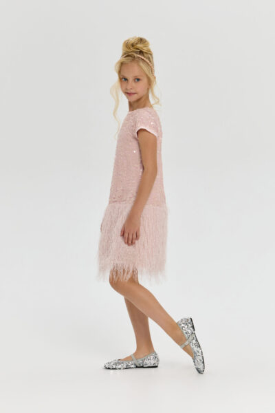 Элегантное платье для девочки станет прекрасным решением для праздничного мероприятия в школе или в кругу семьи. Прямой покрой платья полностью покрыт россыпью блестящих пайеток. Нижний край ... декорирован объемной 3D бахромой. Подкладка выполнена из натурального хлопка. Данное платье - великолепный выбор для любого торжественного события.