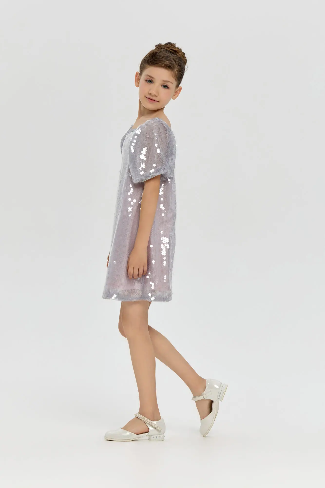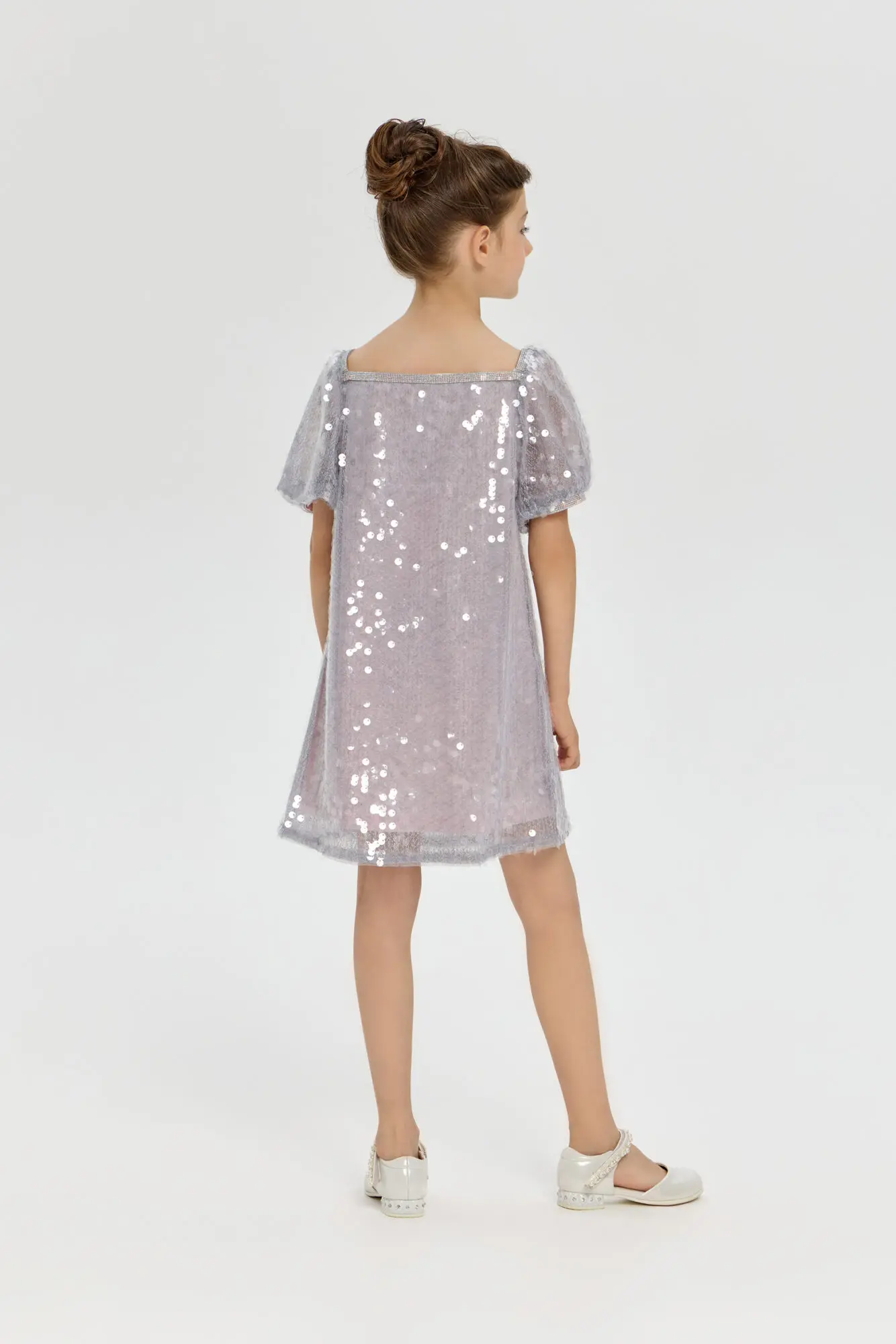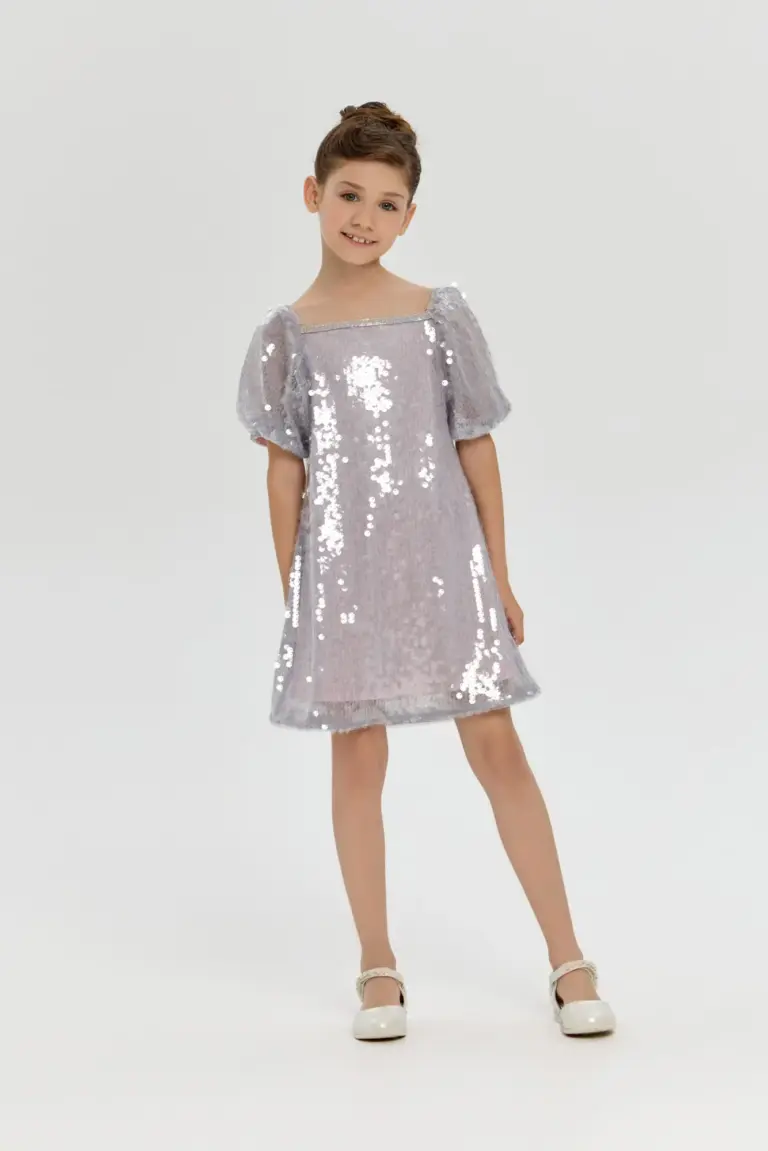 Платье для девочки, декорированное пайетками - эффектный и торжественный наряд, превосходно подходящий для праздничных мероприятий и важных событий. Пайетки, расположенные по всей поверхности платья, формируют завораживающее ... сияние и переливы. Хлопковая подкладка гарантирует мягкость и удобство при носке. Данный фасон замечательно подойдет девочкам, мечтающим ощутить себя истинными принцессами на любом празднике.