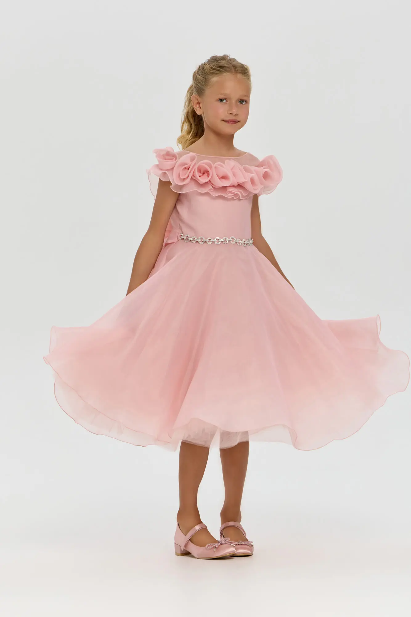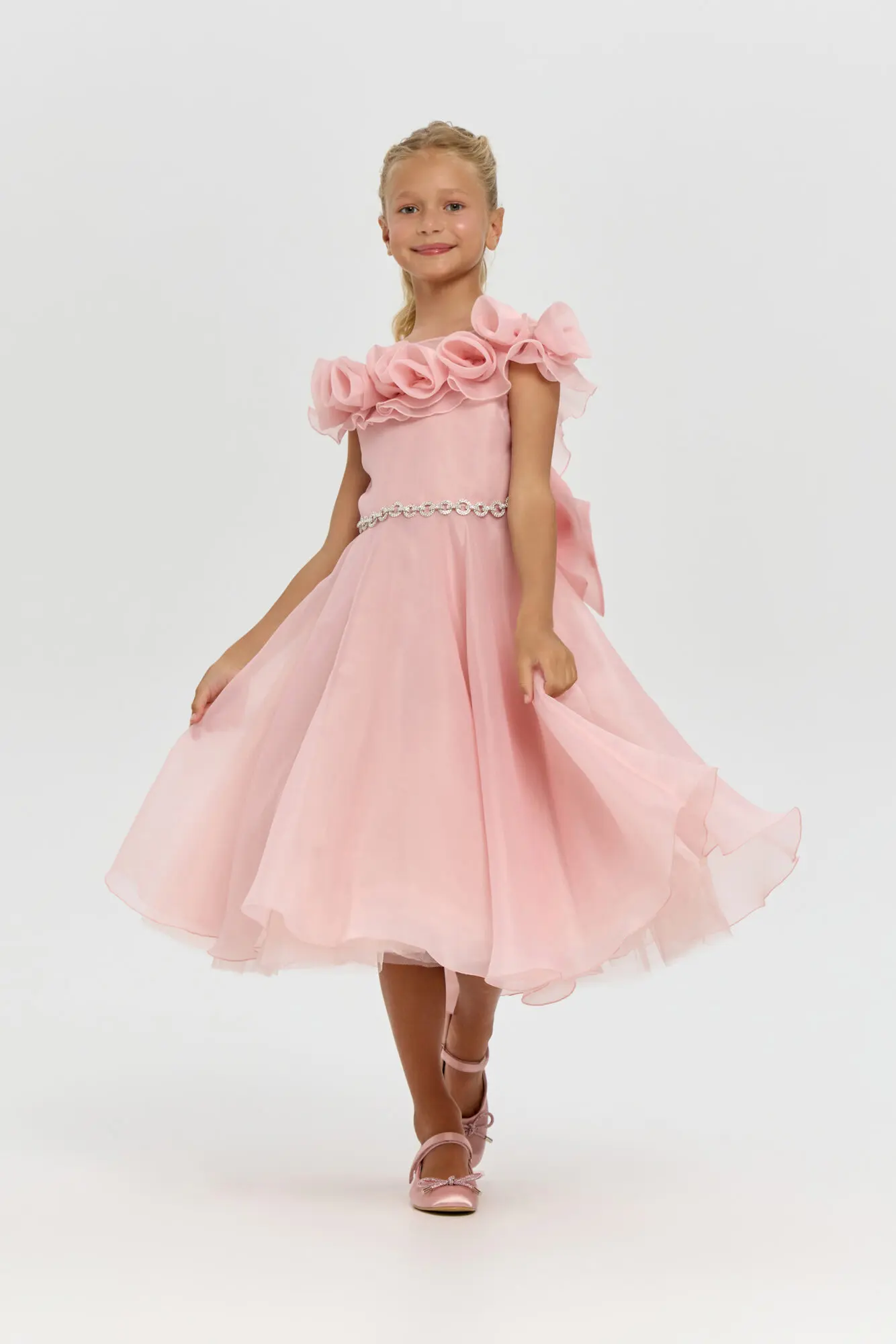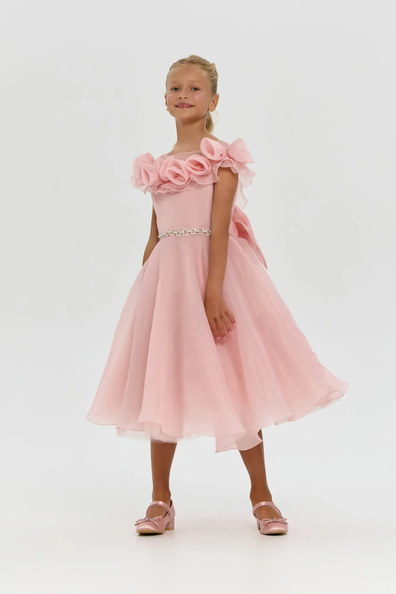 Роскошное платье, декорированное розами, безусловно, станет фаворитом в гардеробе юной ценительницы моды. Наиболее привлекательной чертой этой модели является восхитительная отделка в форме роз, украшающая верхнюю часть ... платья. Сияющий серебряный пояс-цепочка, который сзади переходит в великолепный бант, подчеркивает линию талии. Объемная юбка создает ощущение легкости и воздушности. Нарядное платье для девочки – создано для незабываемых моментов и ярких впечатлений.