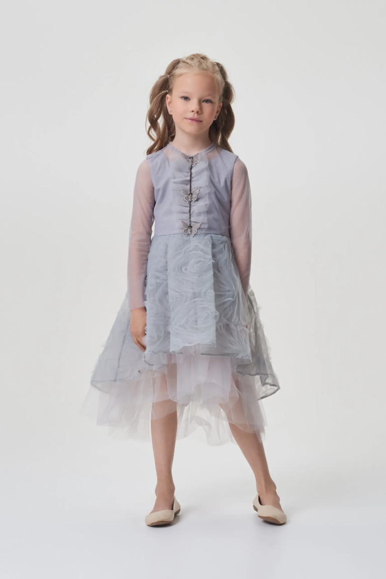 Дымчато-серое нарядное платье из фантазийной ткани для девочки.