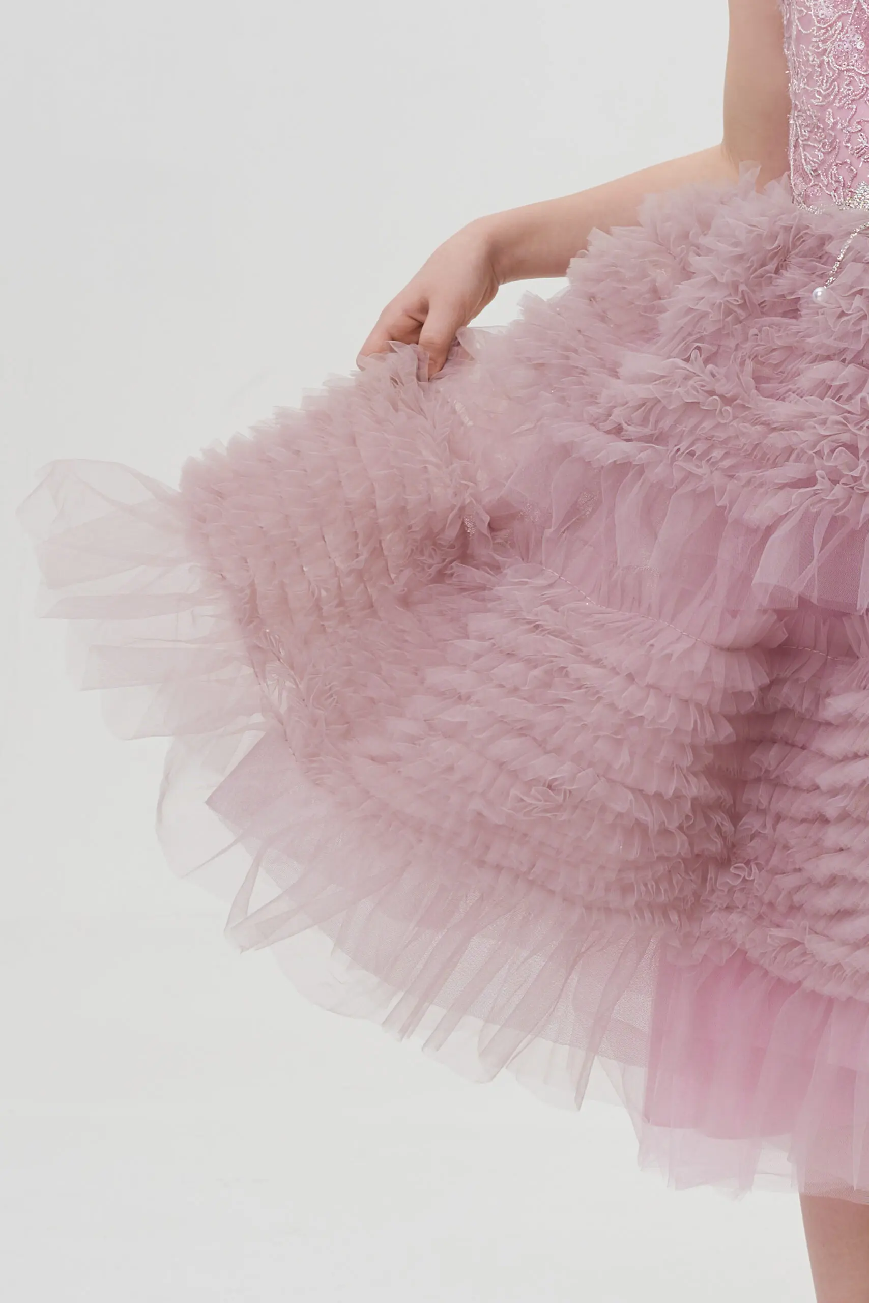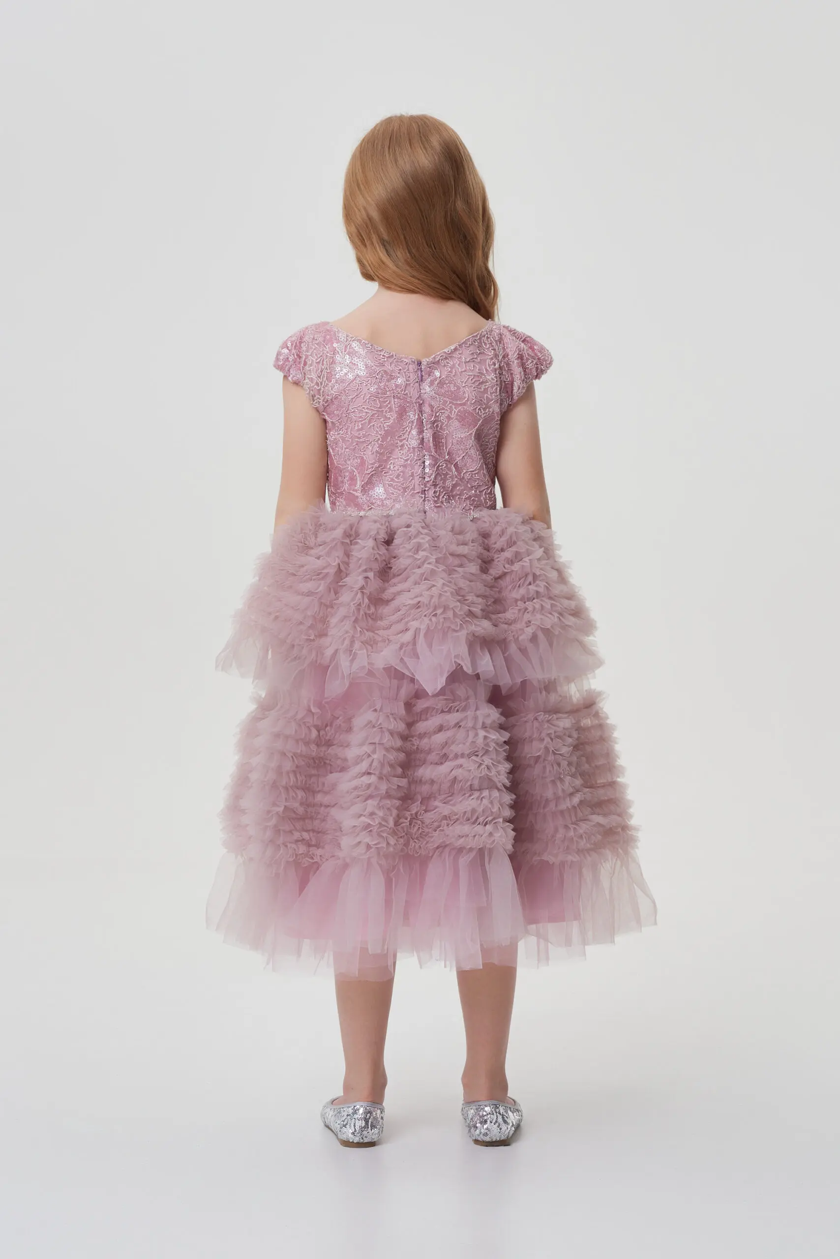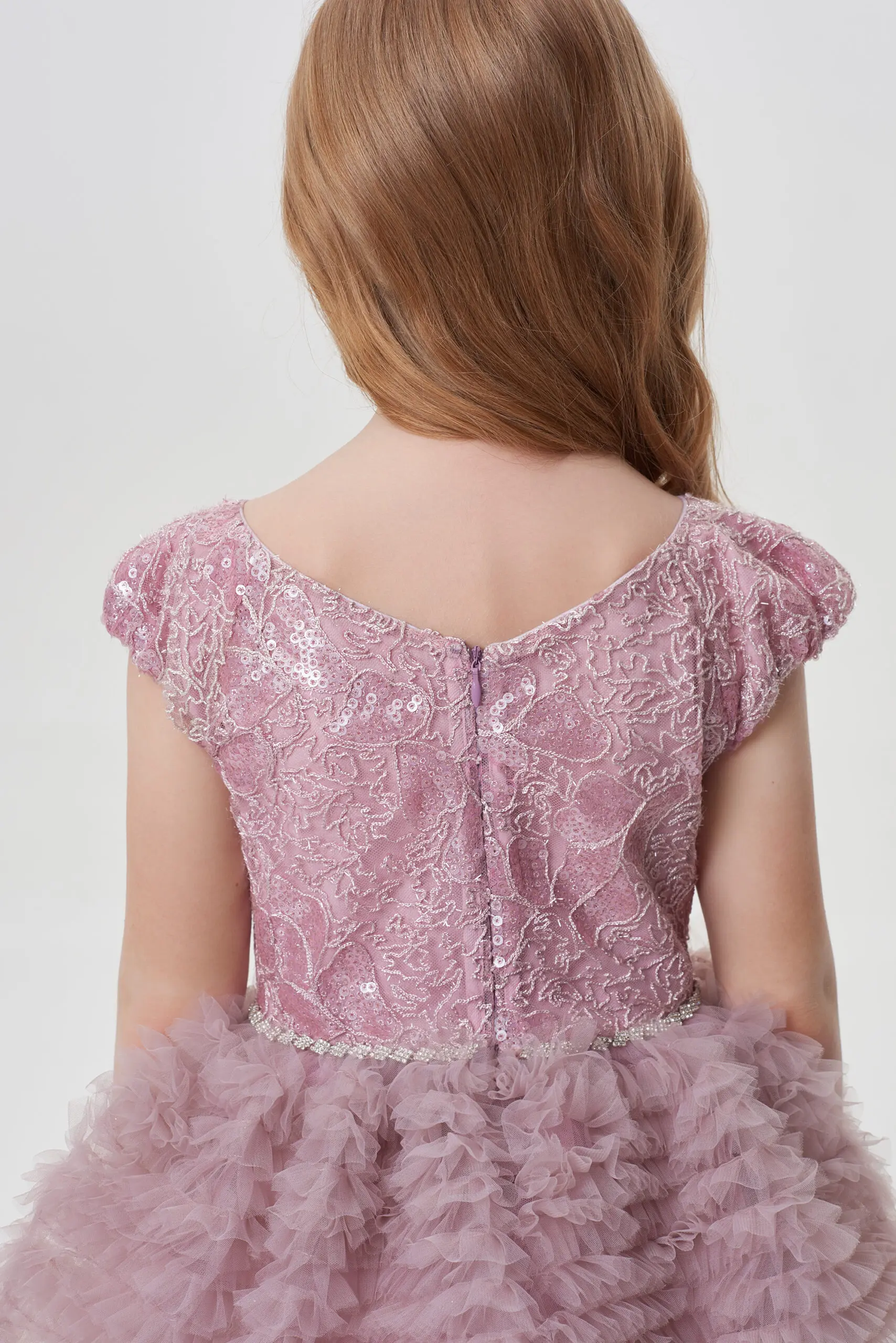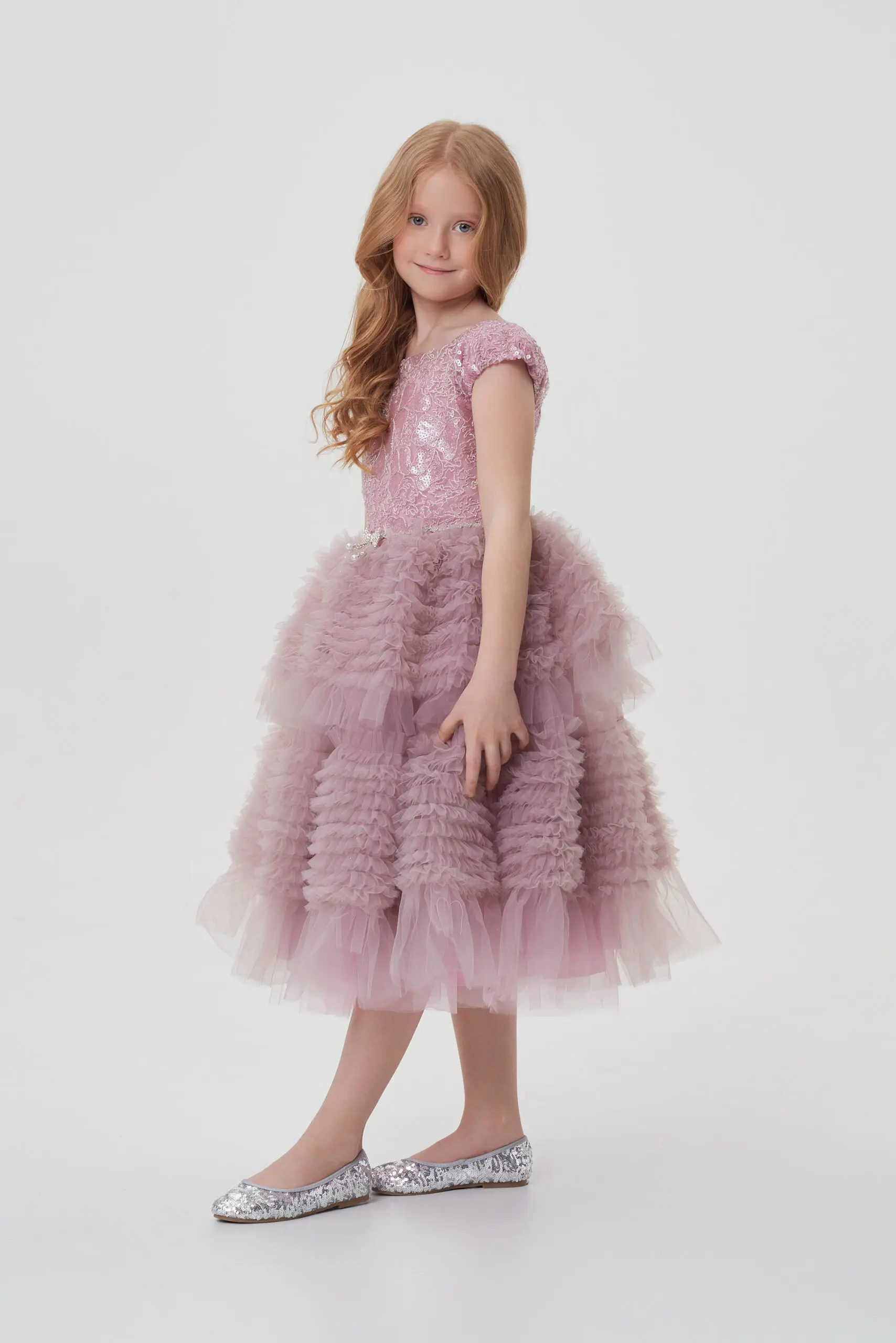 Изысканное платье в нежном розовом цвете создано для сказочного вечера. Лиф выполнен из фактурной ткани с отделкой пайетками. Он аккуратно облегает фигуру, но не сковывает движения. ... Пышная длинная юбка эффектно ниспадает вниз, она отделана легким фатином, который придаёт ей дополнительный объем и воздушность. На линии талии - эффектный декоративный элемент. Застёжка на молнию, расположенная на спинке, обеспечивает удобство при надевании. Платье станет идеальным выбором для праздников, утренников или семейных торжеств.