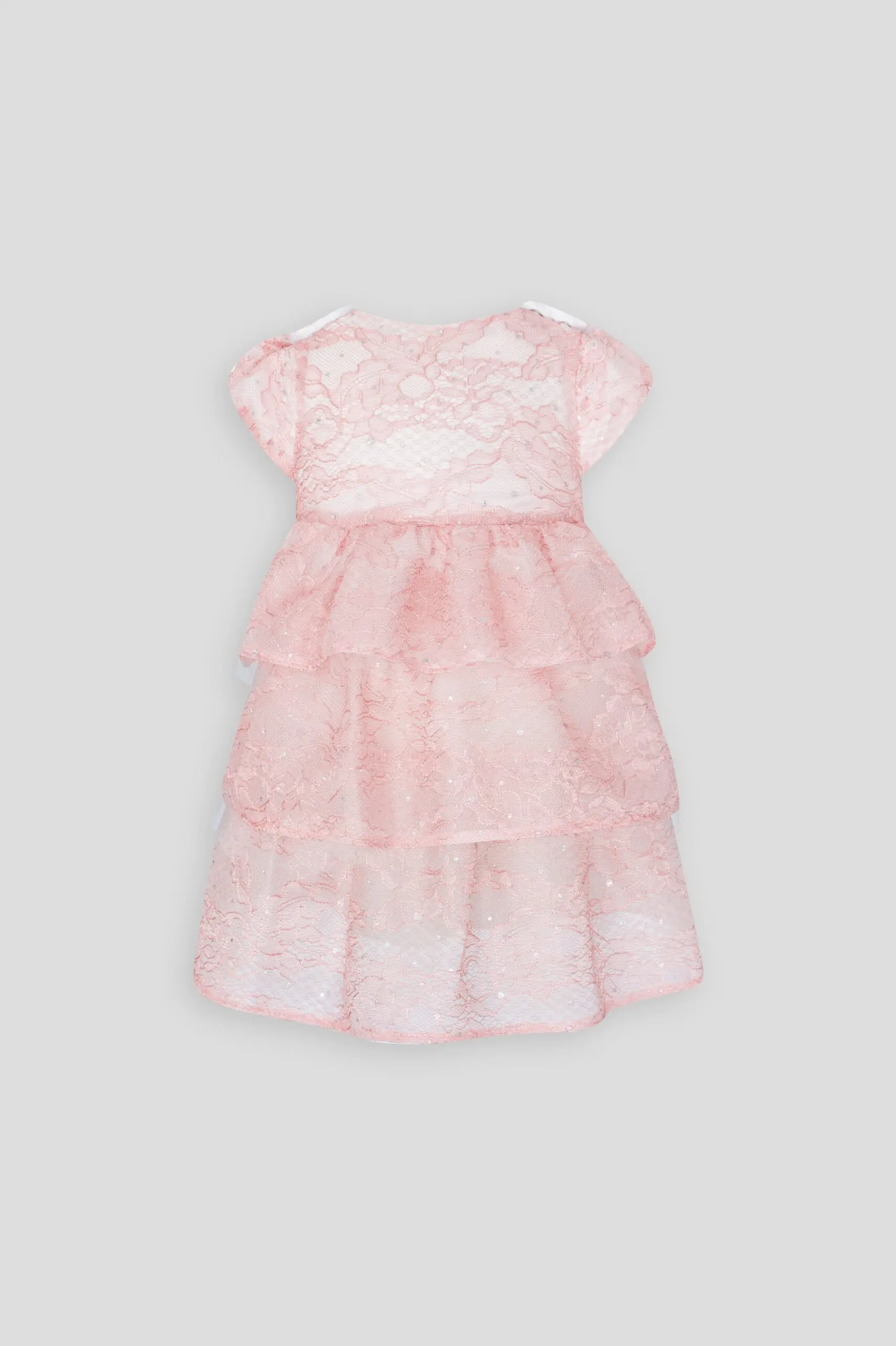В гардеробе каждой модницы, даже самой юной, должна быть одежда на выход. Восхитительное платье с кружевами для девочки! Нежная модель оттенка «английская роза» позволит вашей крошке ... блистать на утреннике в саду… Наряд с пышной многоярусной юбкой выполнен из воздушной полупрозрачной ткани, милое платье принцессы с рукавами-фонариками выглядит оригинально и элегантно. Для удобства, подкладка сделана из натурального хлопка.