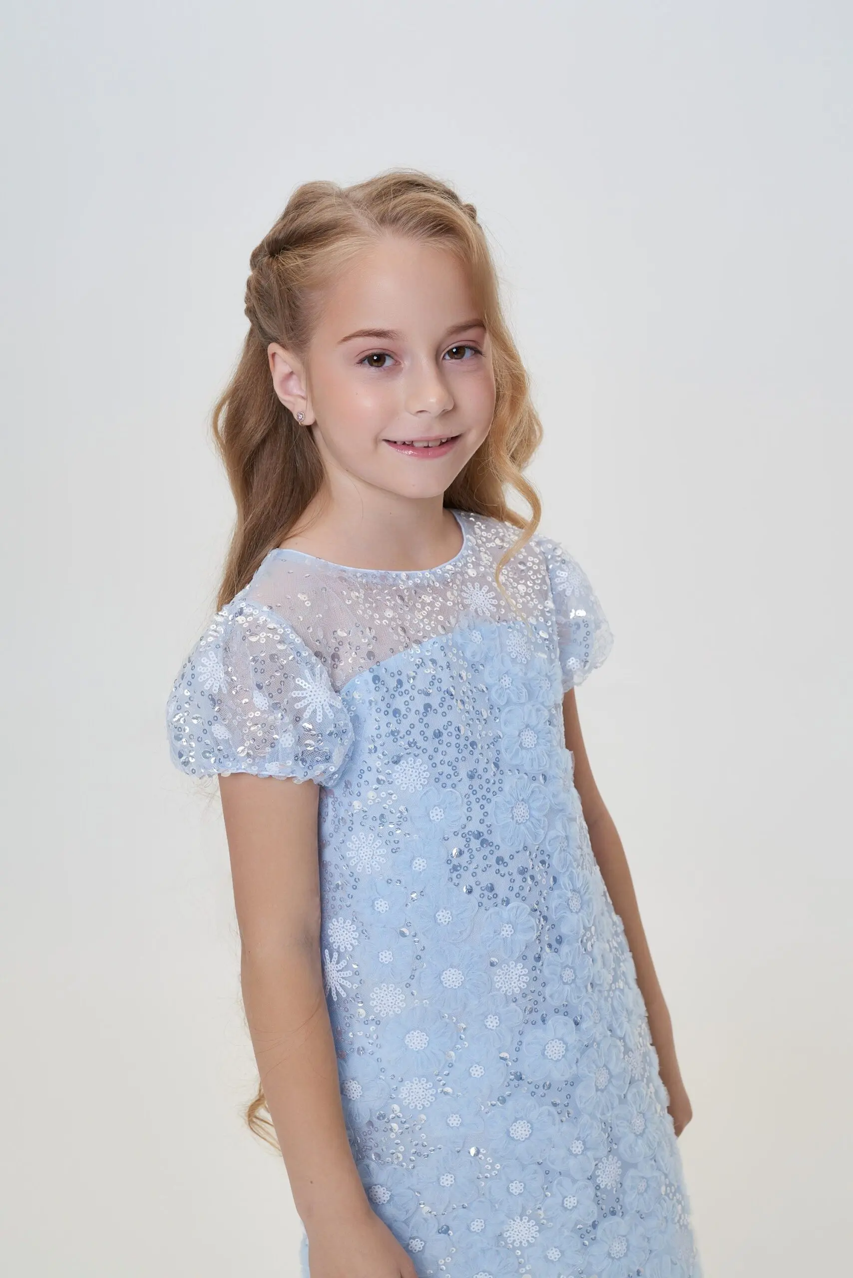 Нарядное платье для девочки в нежно-голубом цвете — это идеальный выбор для особых мероприятий!