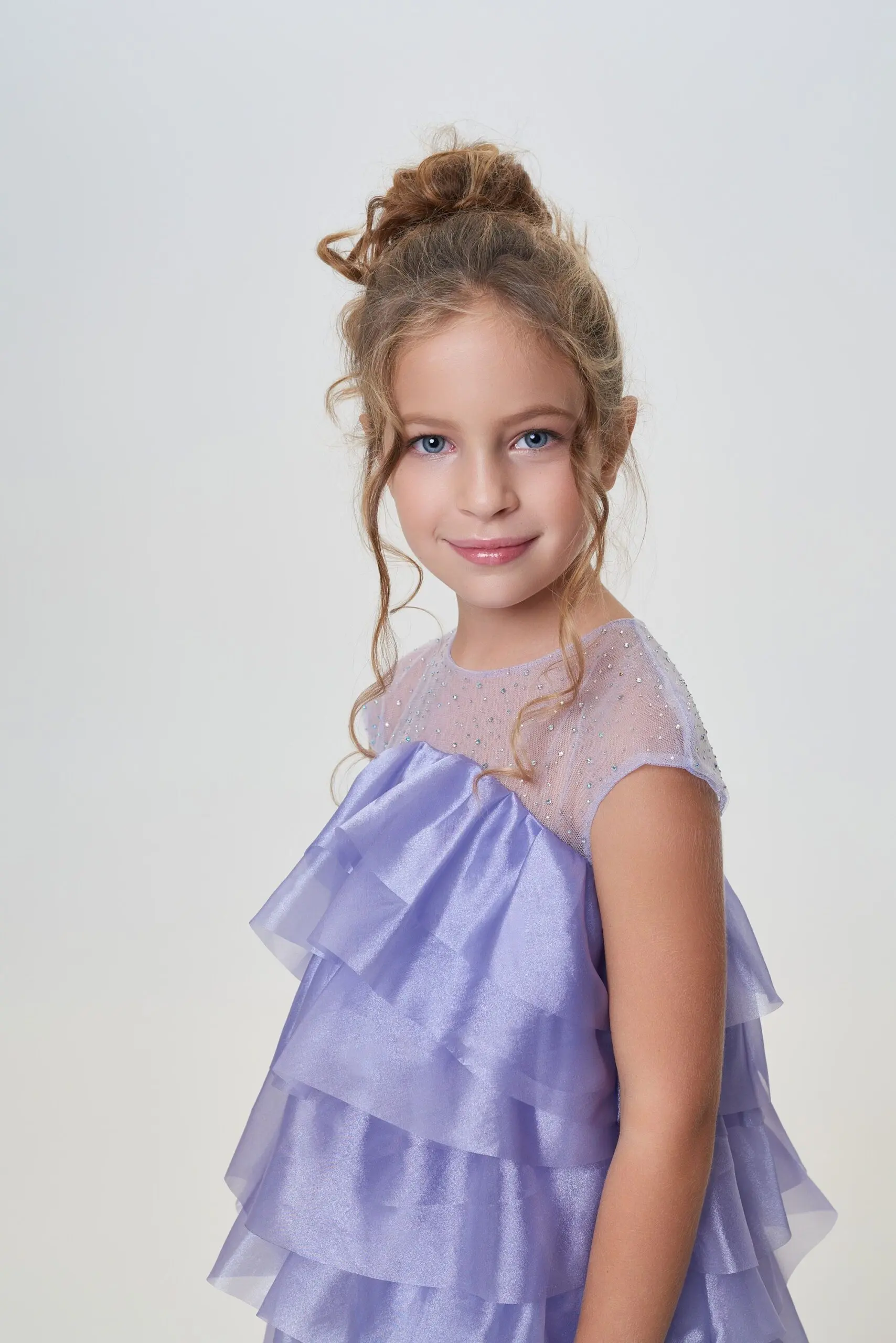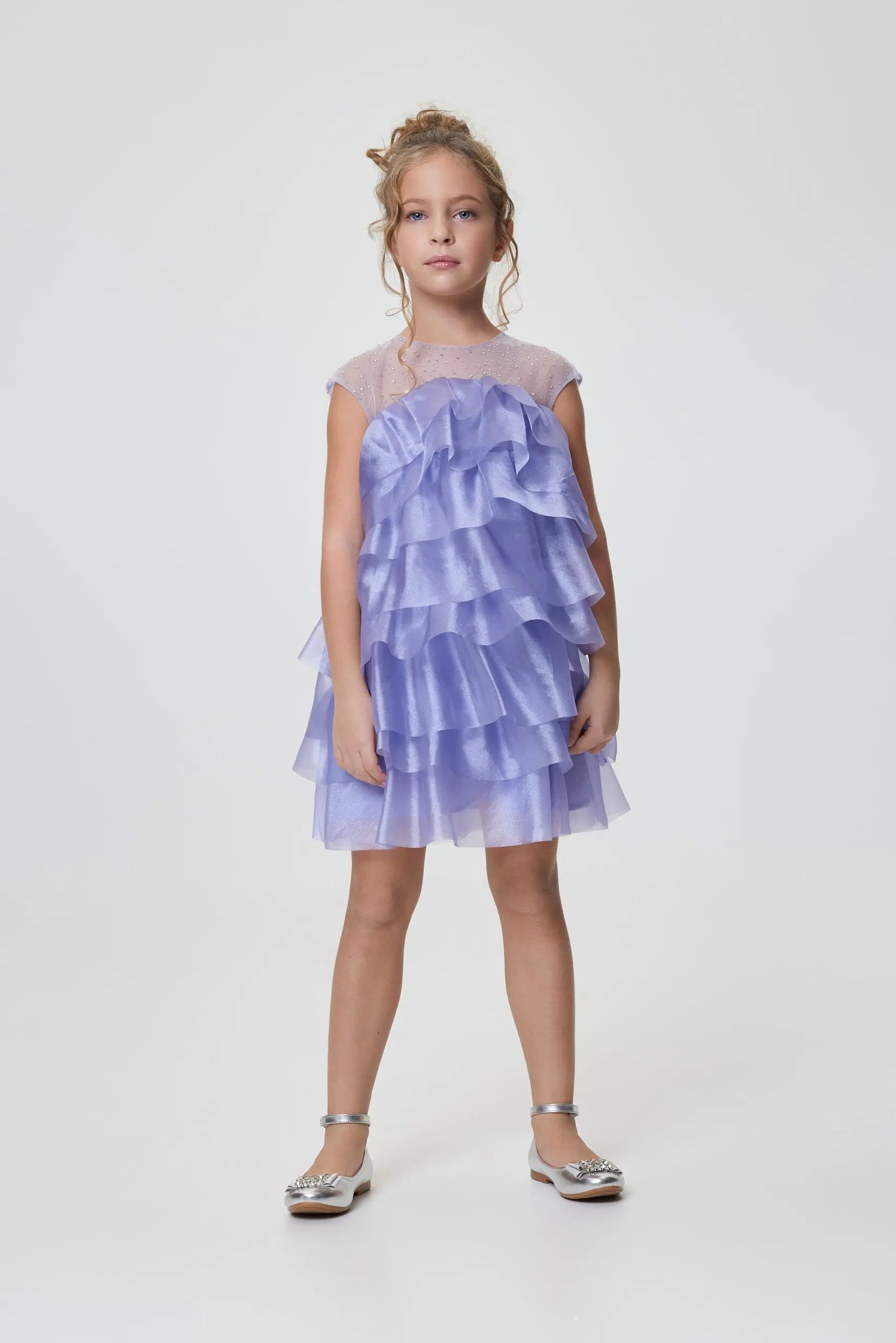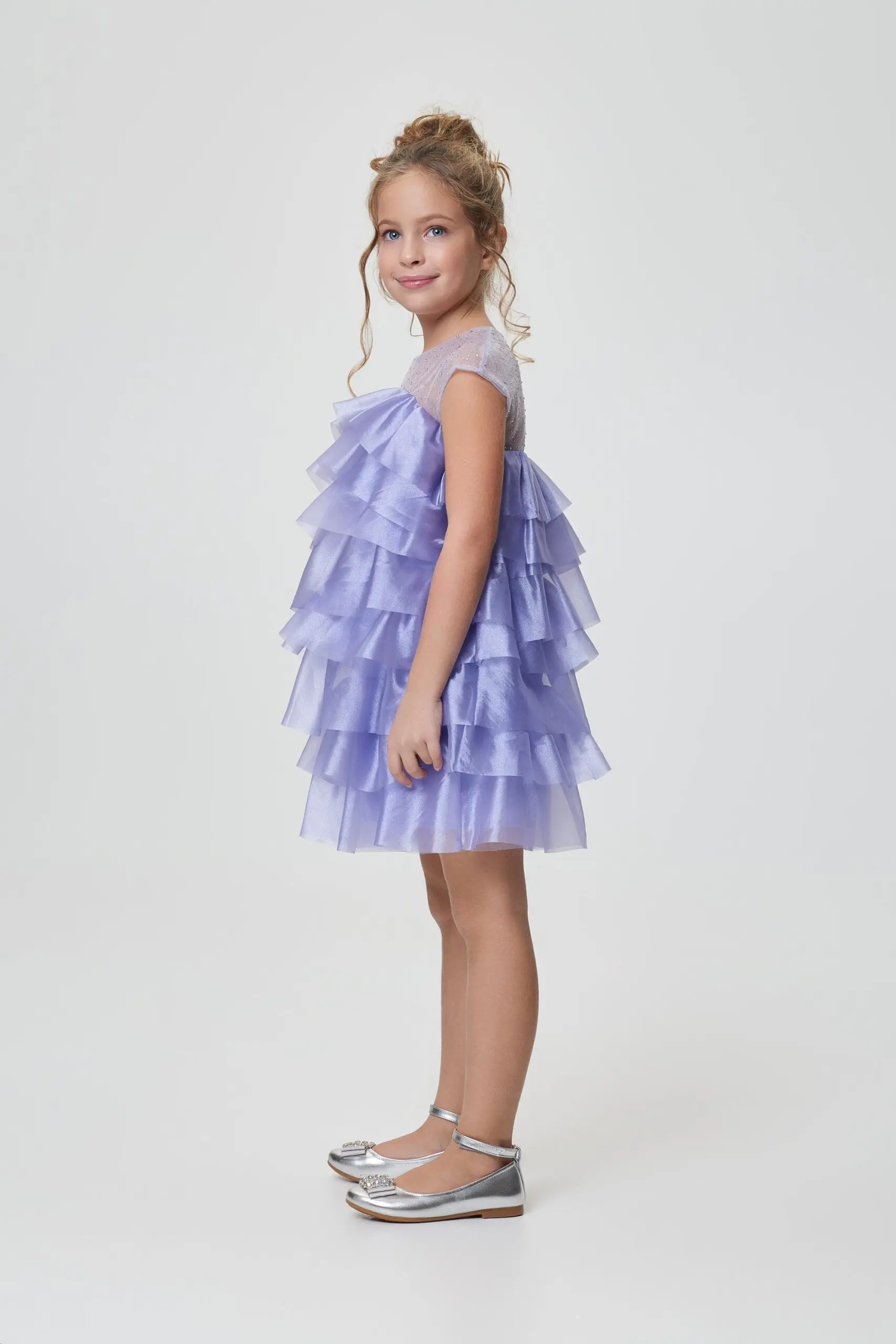 Очаровательное коктейльное платье для девочки в нежно-лавандовом цвете.