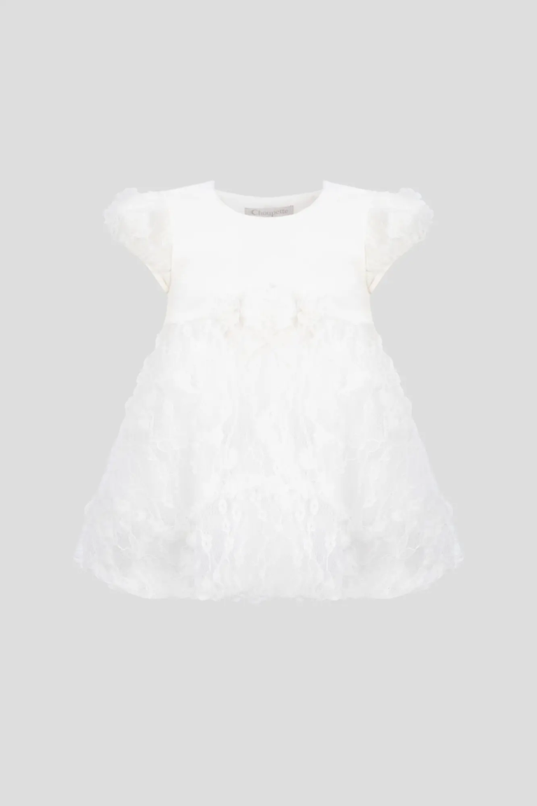 Чудесное однотонное платье теплого белого цвета для девочки создаст очаровательный образ маленькой принцессы. Модель отрезная по линии талии, с круглым вырезом горловины. Рукава-фонарики и пышная двухслойная ... юбка украшены вышитыми стрекозами в тон ткани, изящная вышивка располагается и по центру лифа. Линию талии подчеркивает нарядный пояс с бледно-розовым узором.