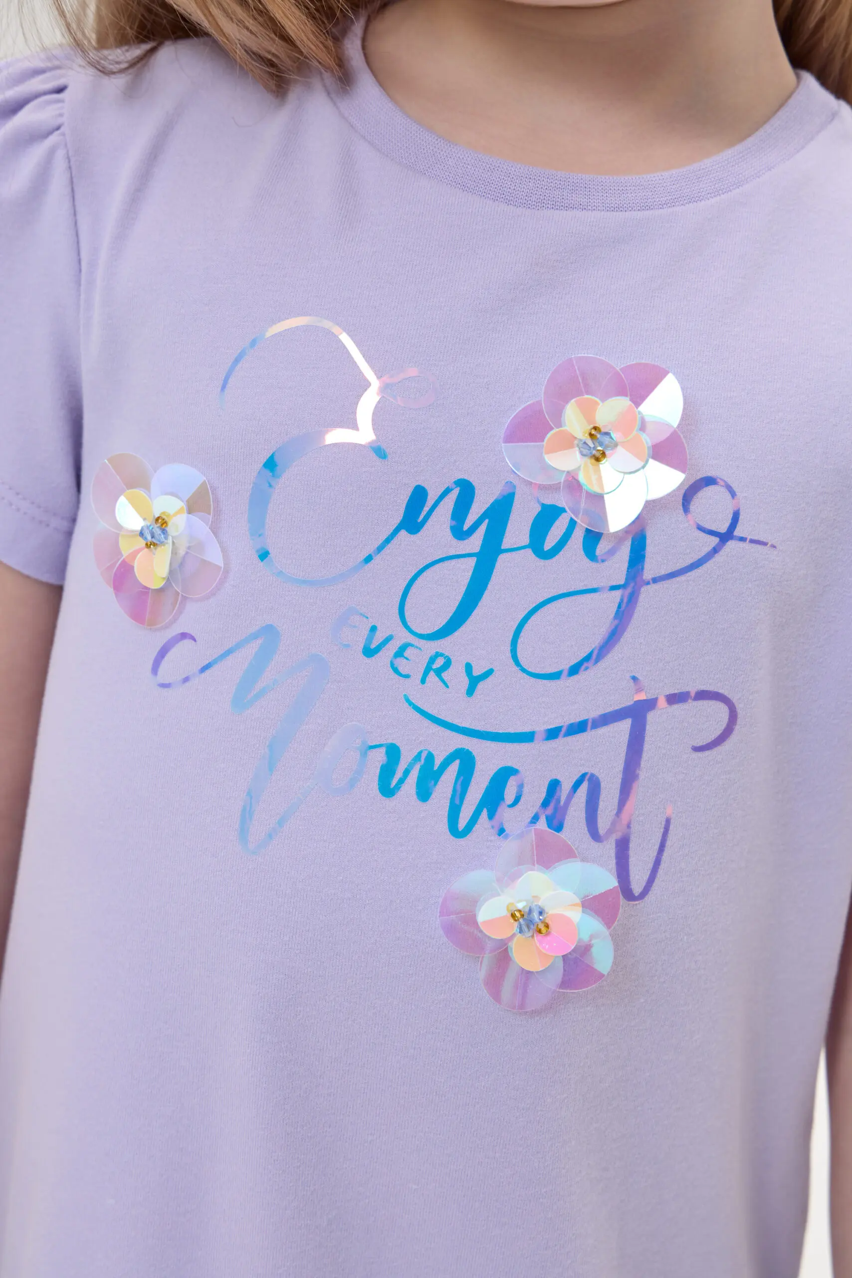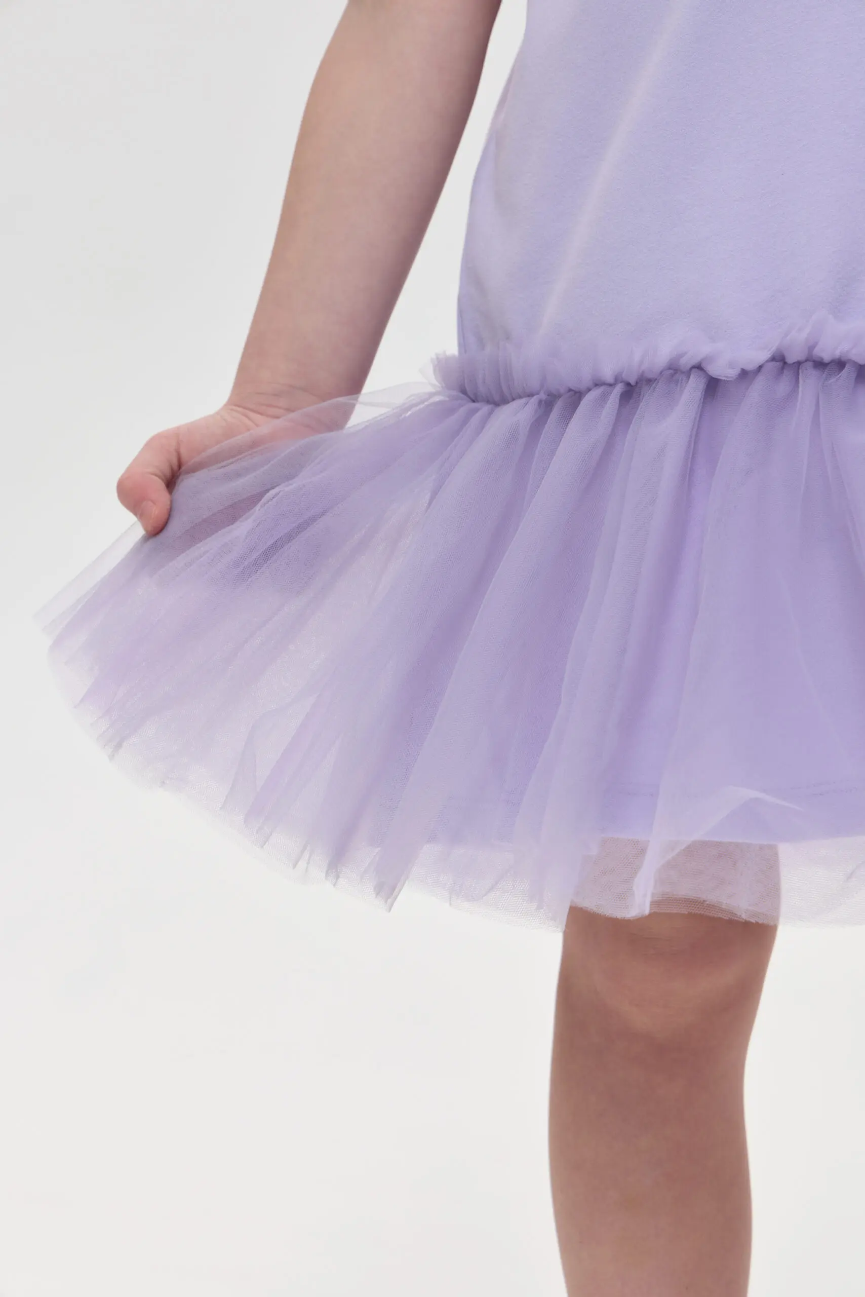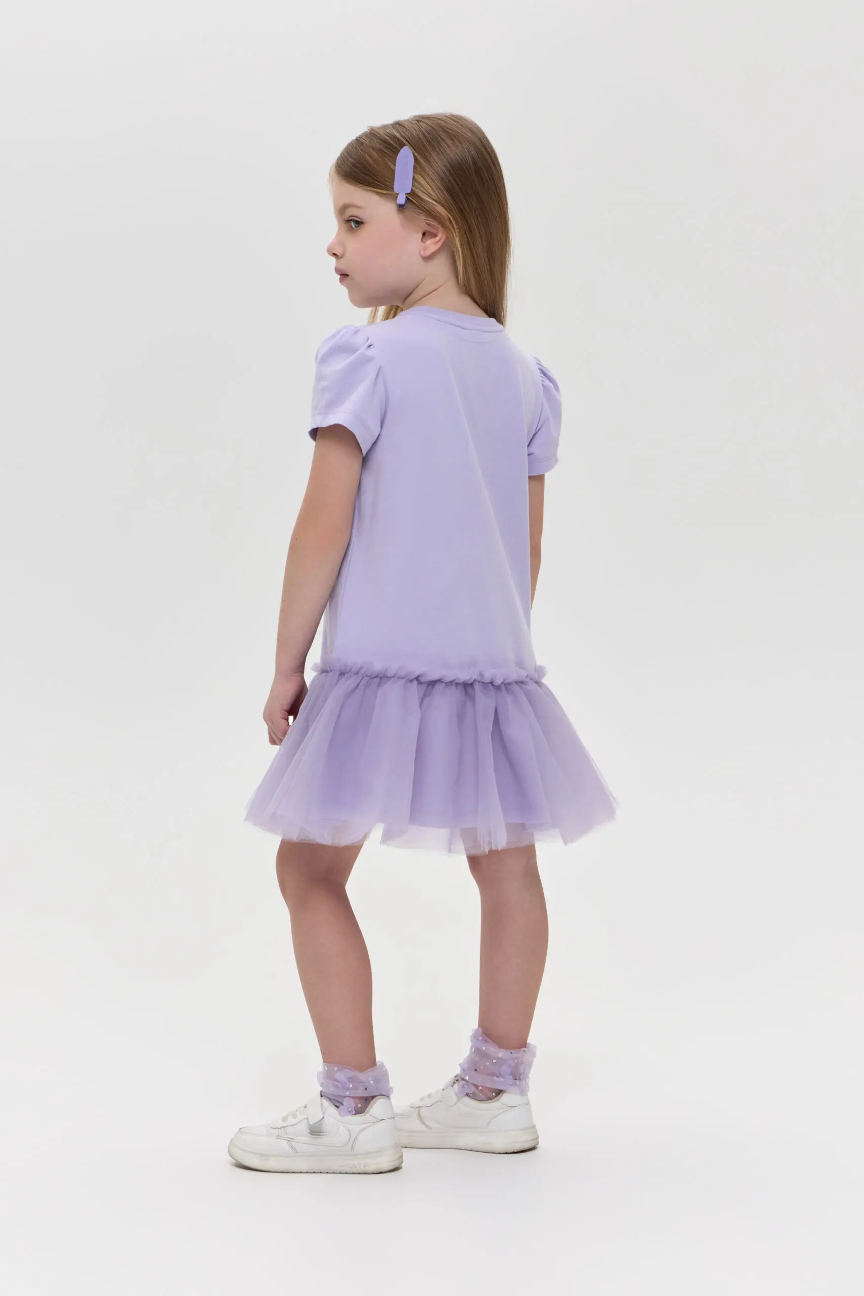 Трикотажное платье для девочки создает воздушный и нежный образ. Платье выполнено из мягкого и эластичного материала. Практичная модель очень удобная: свободный крой, короткий рукав и пышная ... юбка. Стильный буквенный принт украшен объемными цветами. В этом наряде вашей дочке будет удобно бегать, играть и веселиться, оставаясь самой очаровательной.