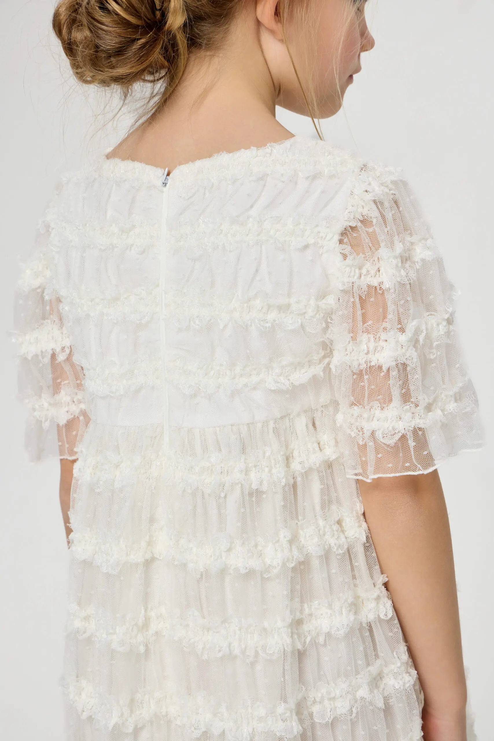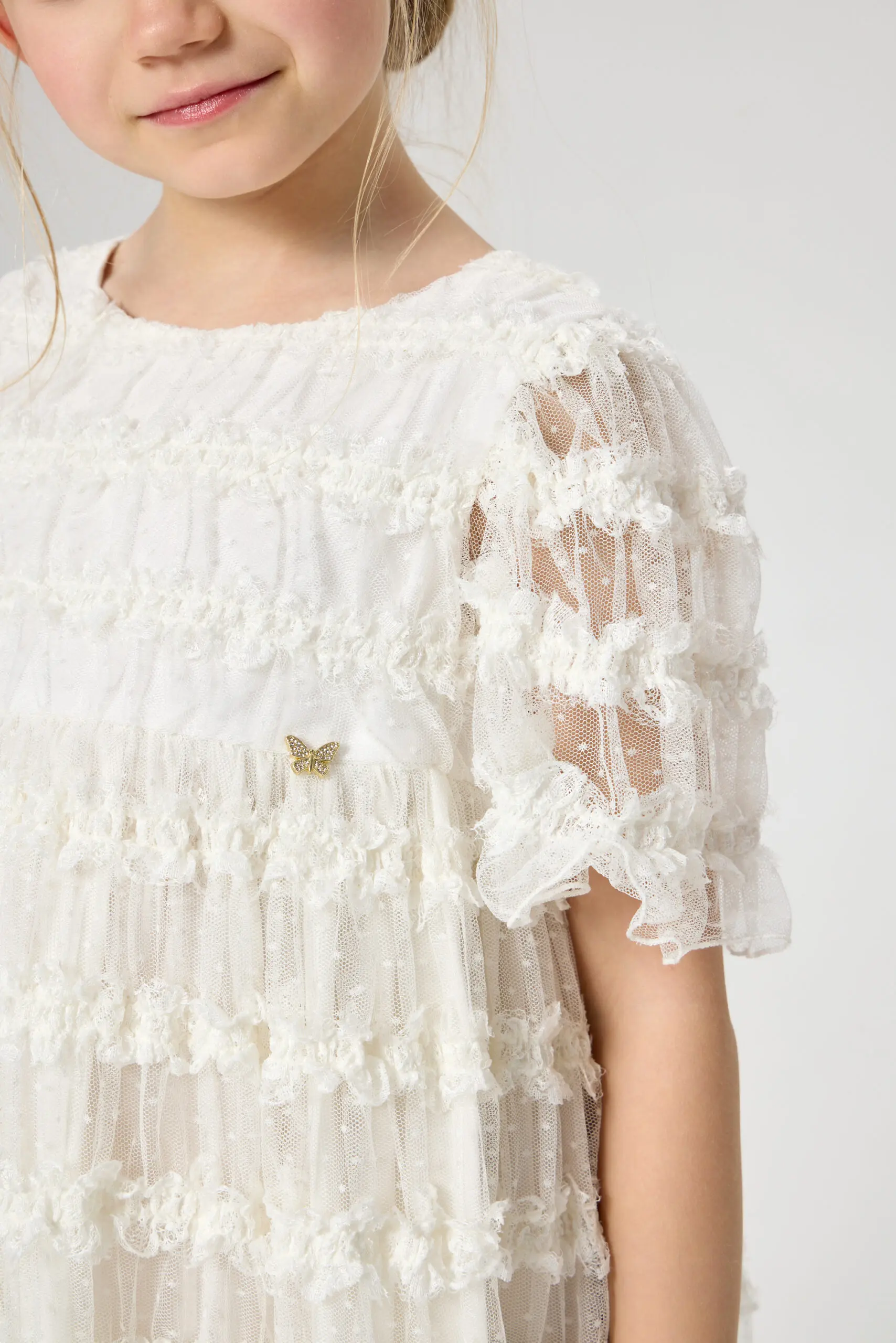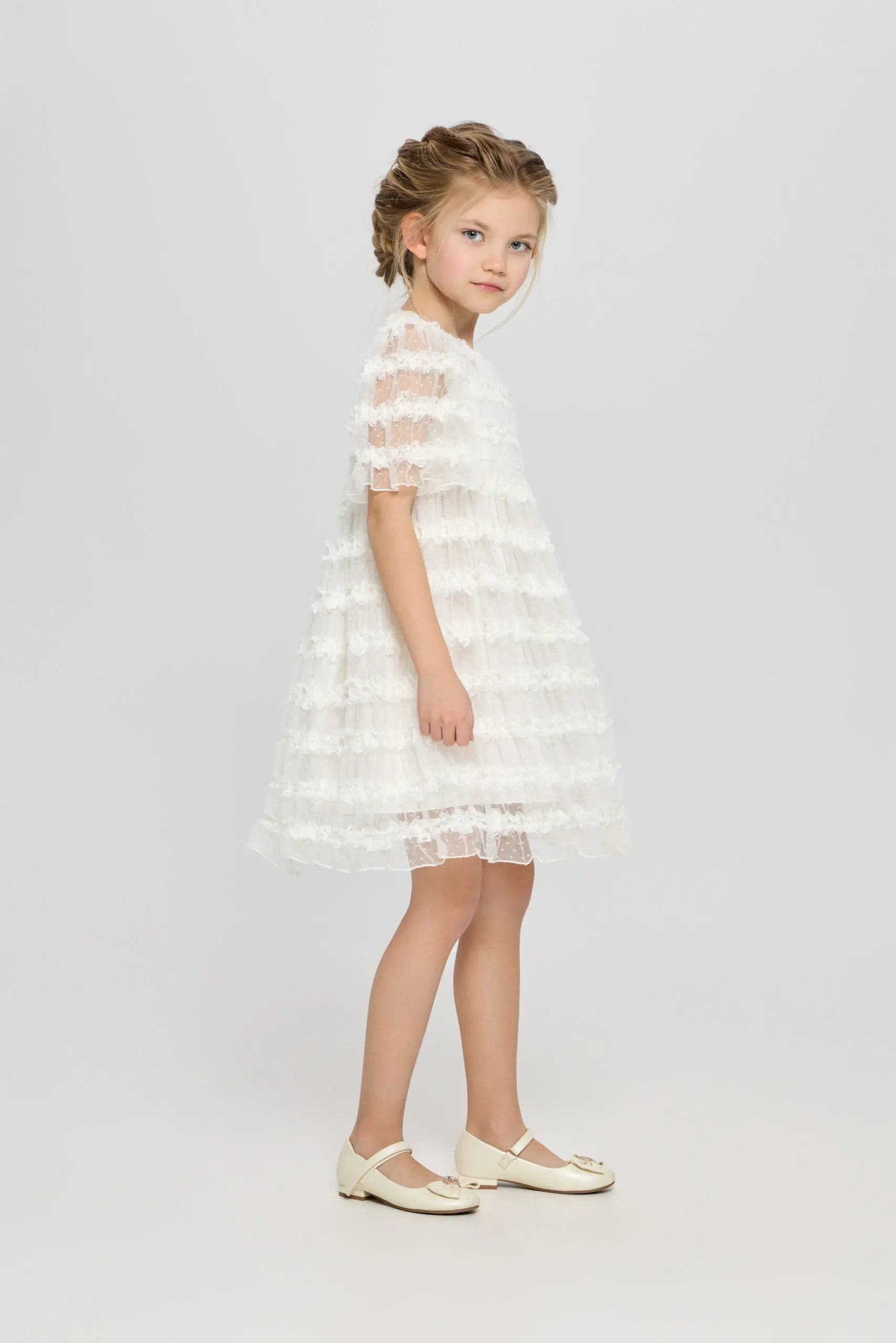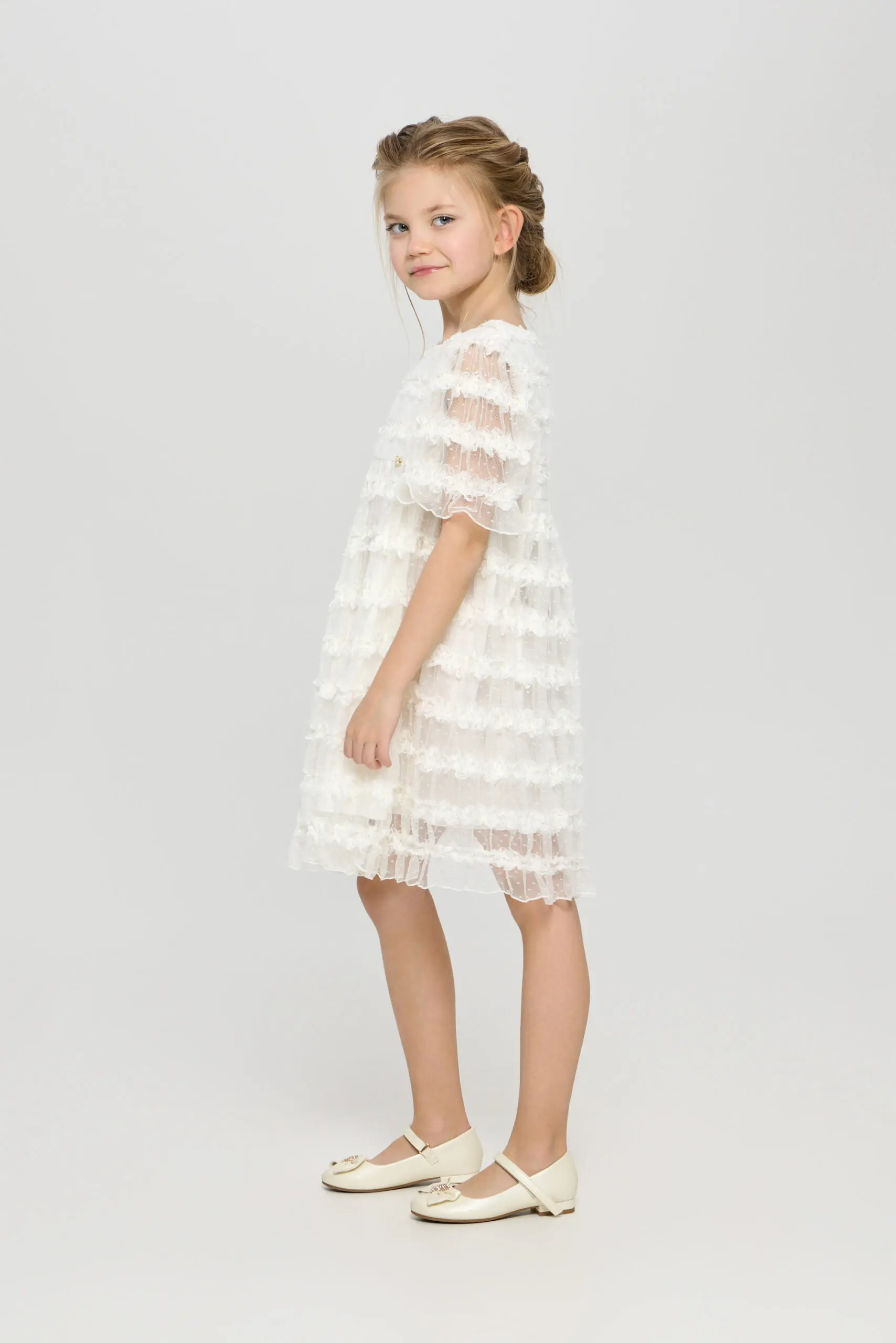 В белом кружевном платье маленькая принцесса будет самой красивой на празднике! Особенности модели: слегка завышенная линия талии, полупрозрачные рукава, удобная застежка-молния на спине, хлопковая подкладка. Заключительный ... штрих - очаровательный декор в виде бабочки. Платье станет идеальным вариантом для фотосессии, а также для утренника или важного семейного события.