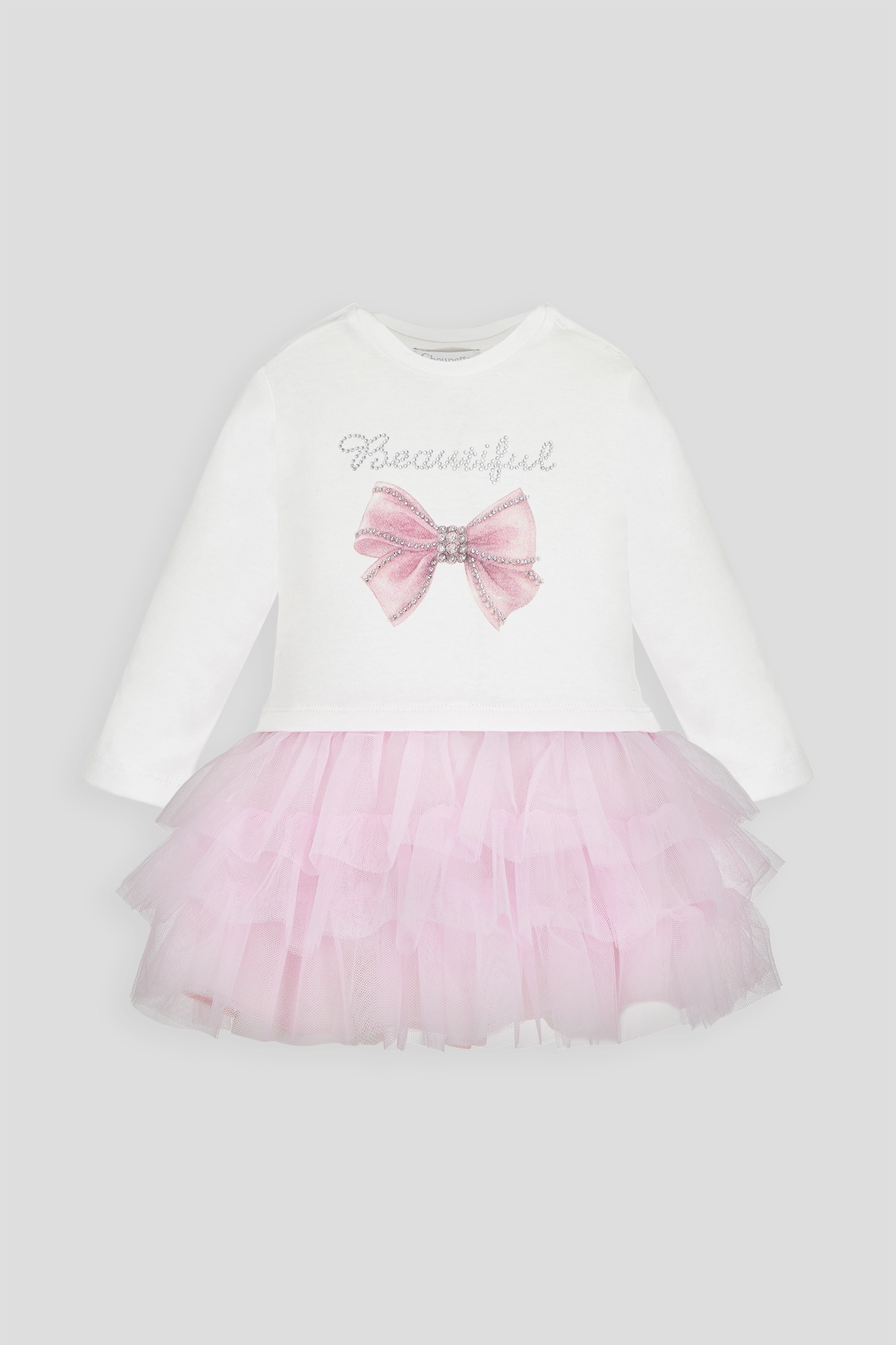 Очаровательное розовое платье для девочки выполнено в запоминающемся дизайне. Пышный крой юбки придает облику ребенка особую трогательностьДлинные рукава обеспечивают комфорт в прохладные дни, а застежка на ... кнопки на плечиках делает процесс надевания быстрым и удобным. Декор по центру платья привлекает внимание и создает стильный акцент. Платье изготовлено из 100% хлопка, что обеспечивает ребенку максимальный комфорт.