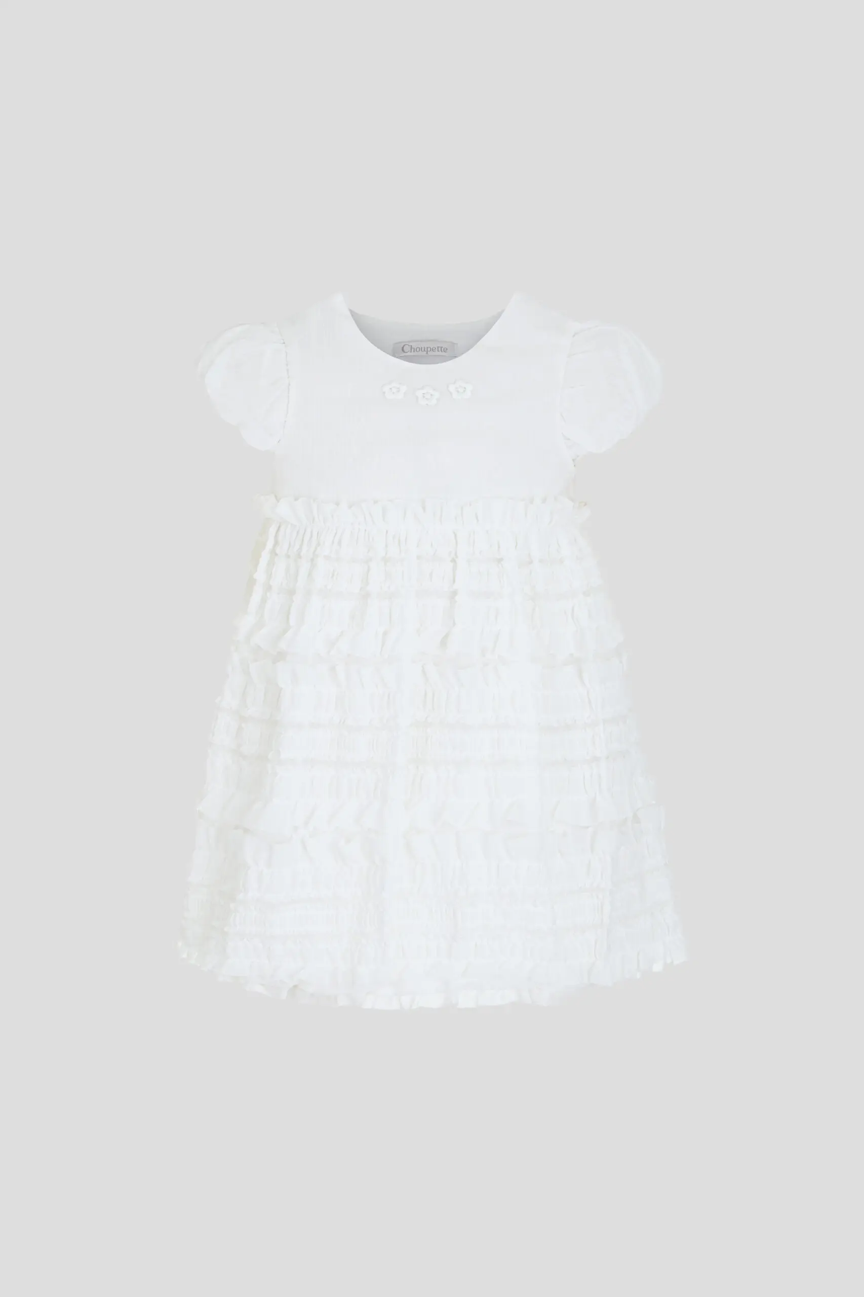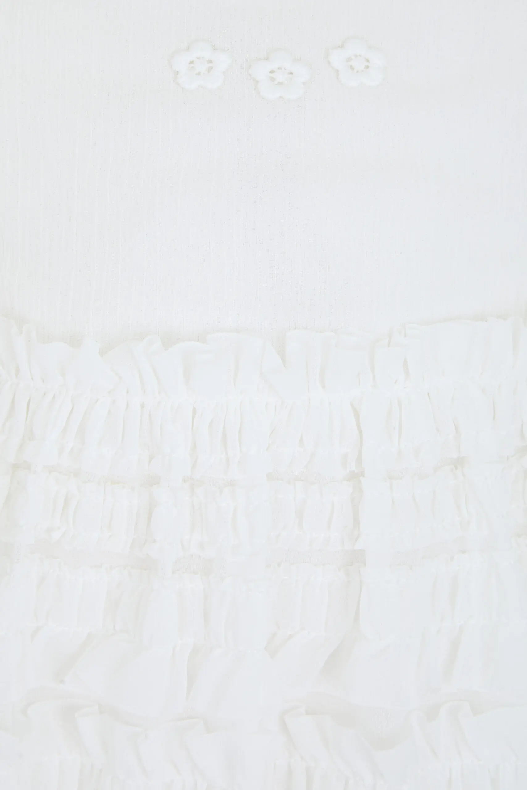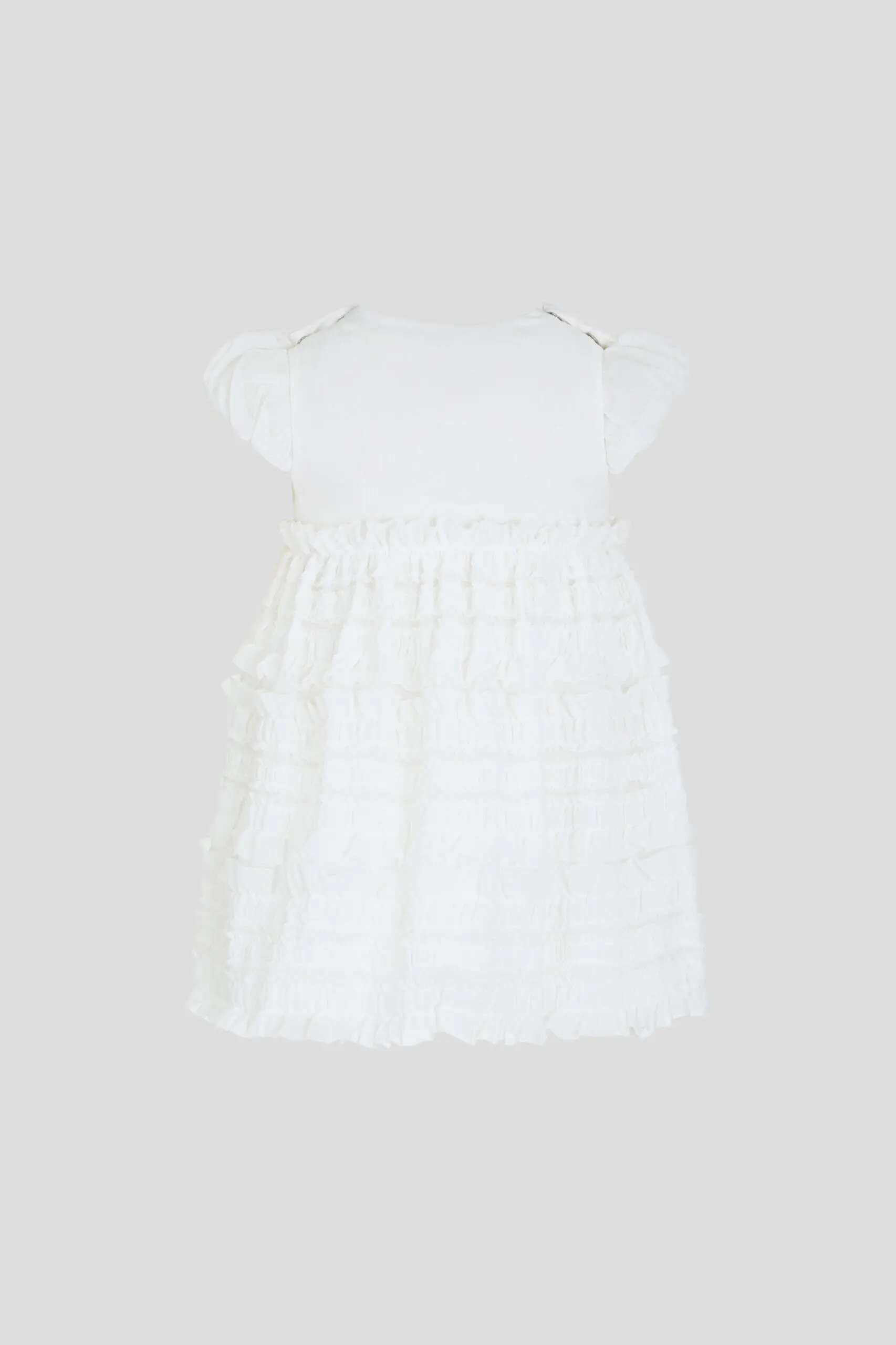 Белоснежное платье для девочки – прекрасный вариант для торжественных мероприятий. Свободный фасон дополнен пышными рукавами в форме фонариков. Горловина округлой формы декорирована нежными цветочными элементами. Объемные ... оборки добавляют образу выразительности. Это платье, безусловно, станет изюминкой в гардеробе юной модницы.