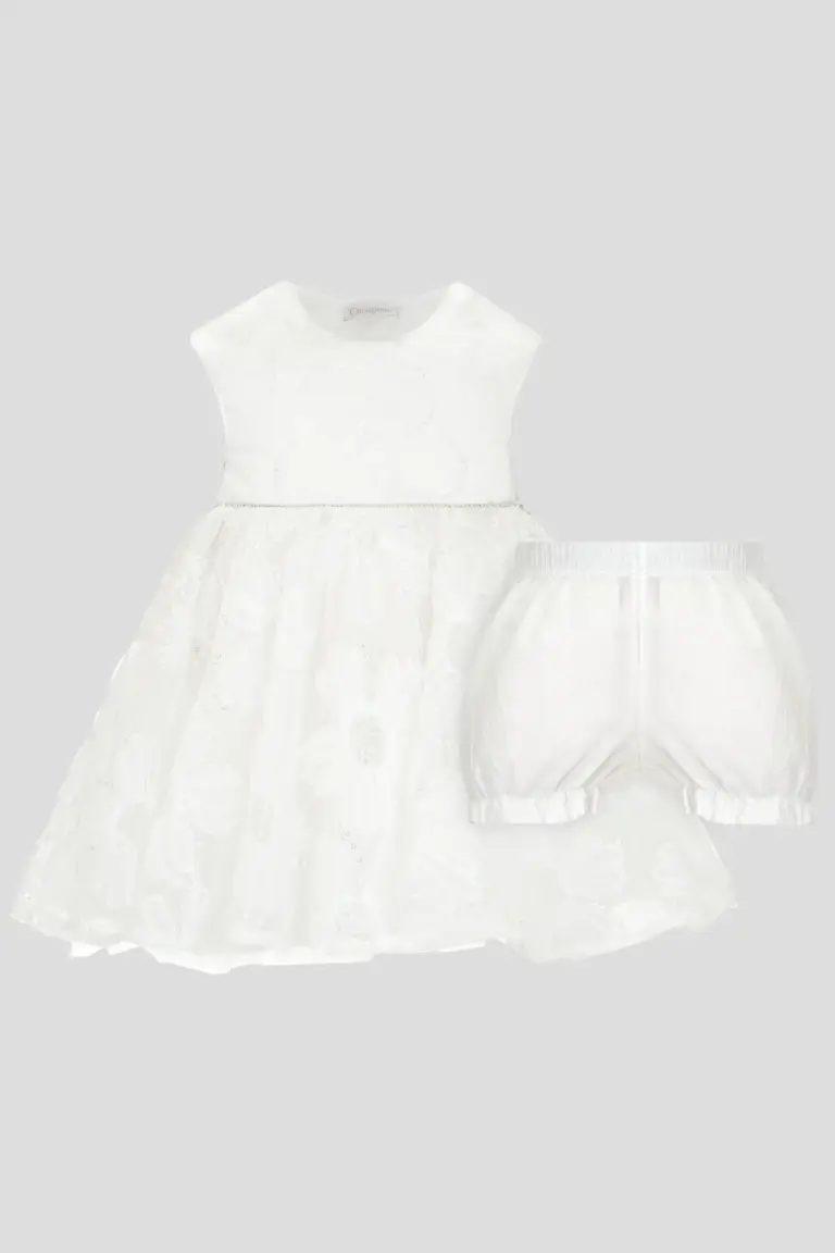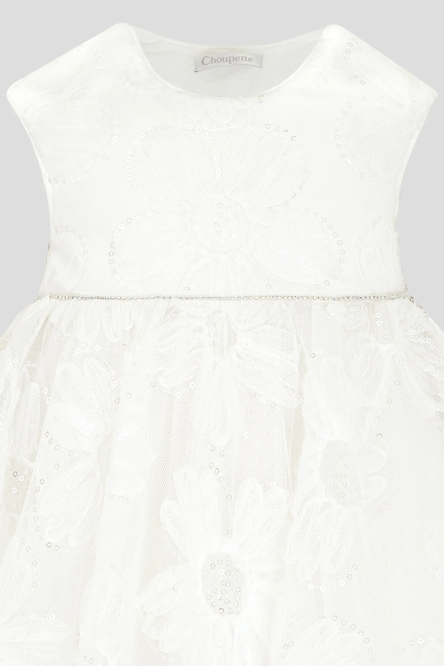 Нарядное детское платье с цветами – идеальный выбор для праздников и важных мероприятий. Модель свободного кроя с пышной юбкой, декорирована вышитыми цветами на сетке и пайетками. ... Пояс украшен бисером. Застежка на кнопки ускоряет процесс переодевания, что важно для малышей. Шорты позволяют ребенку свободно двигаться.