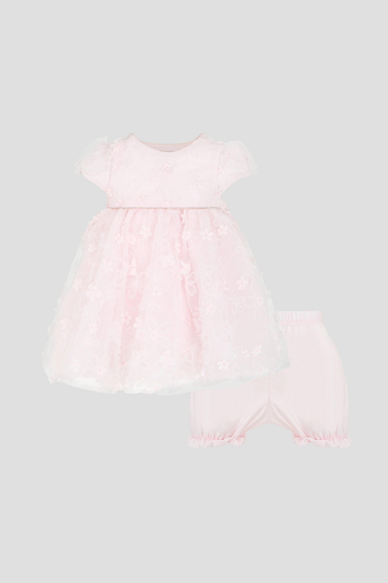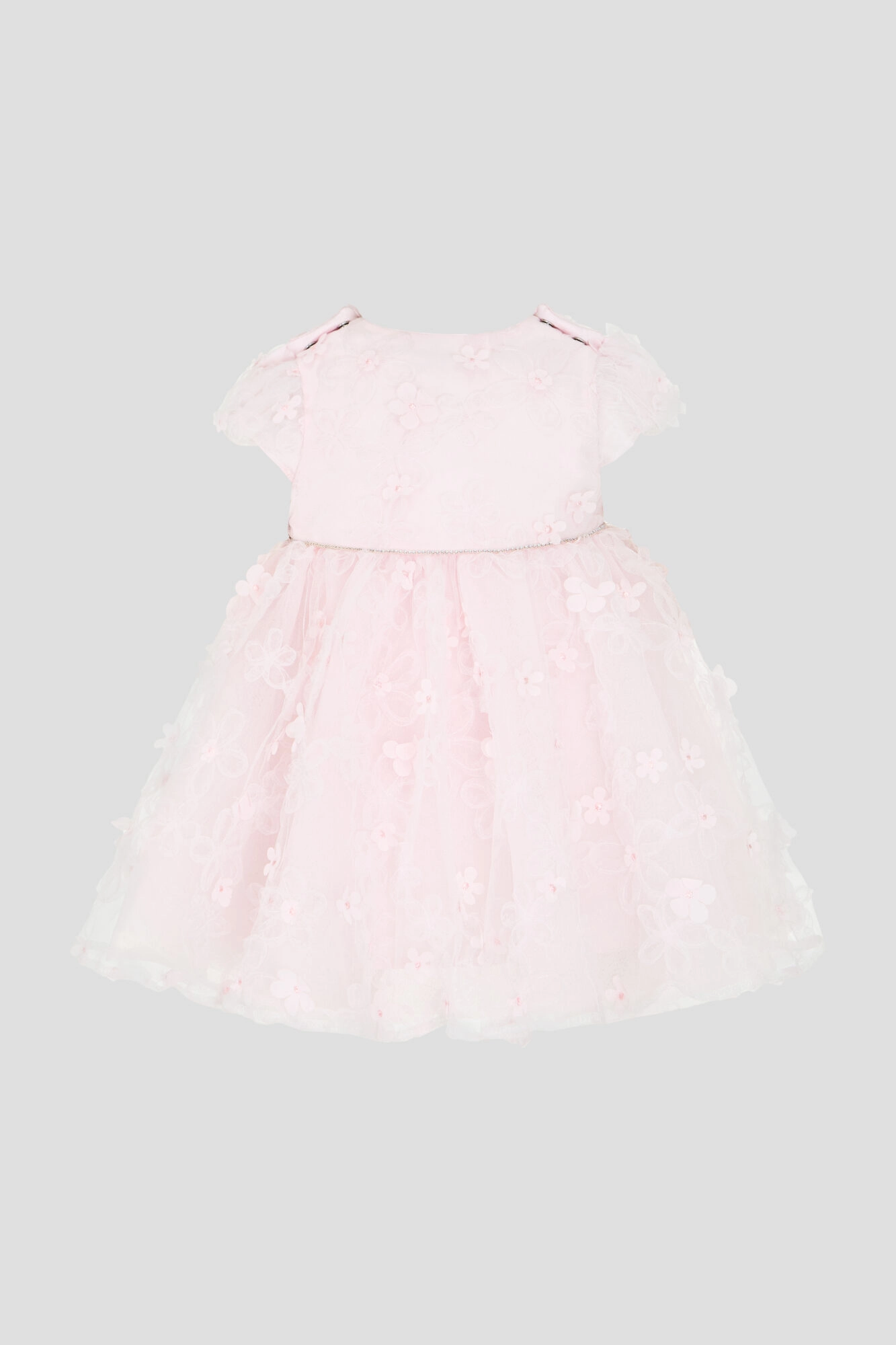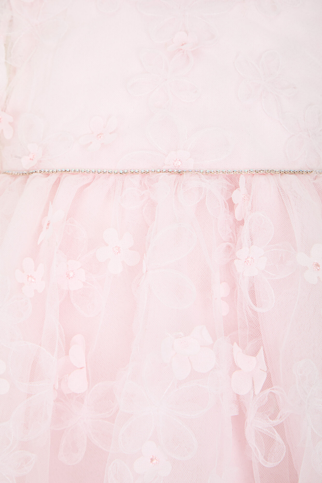 Стильное детское платье для девочки станет изюминкой праздничного наряда. Модель выполнена из качественного материала и дополнена лёгким полупрозрачным слоем с объёмной цветочной аппликацией, который придаёт наряду ... утончённый и нарядный вид. Свободный крой с аккуратной линией кокетки и мягким, слегка расклешённым силуэтом создаёт гармоничный и нежный образ. Подкладка из натупального хлопка обеспечивае комфорт в течение всего дня. Деликатные цветочные элементы и изящные фактуры делают платье особенно выразительным и завершённым. Отличный выбор для торжественных мероприятий, фотосессий и семейных праздников.