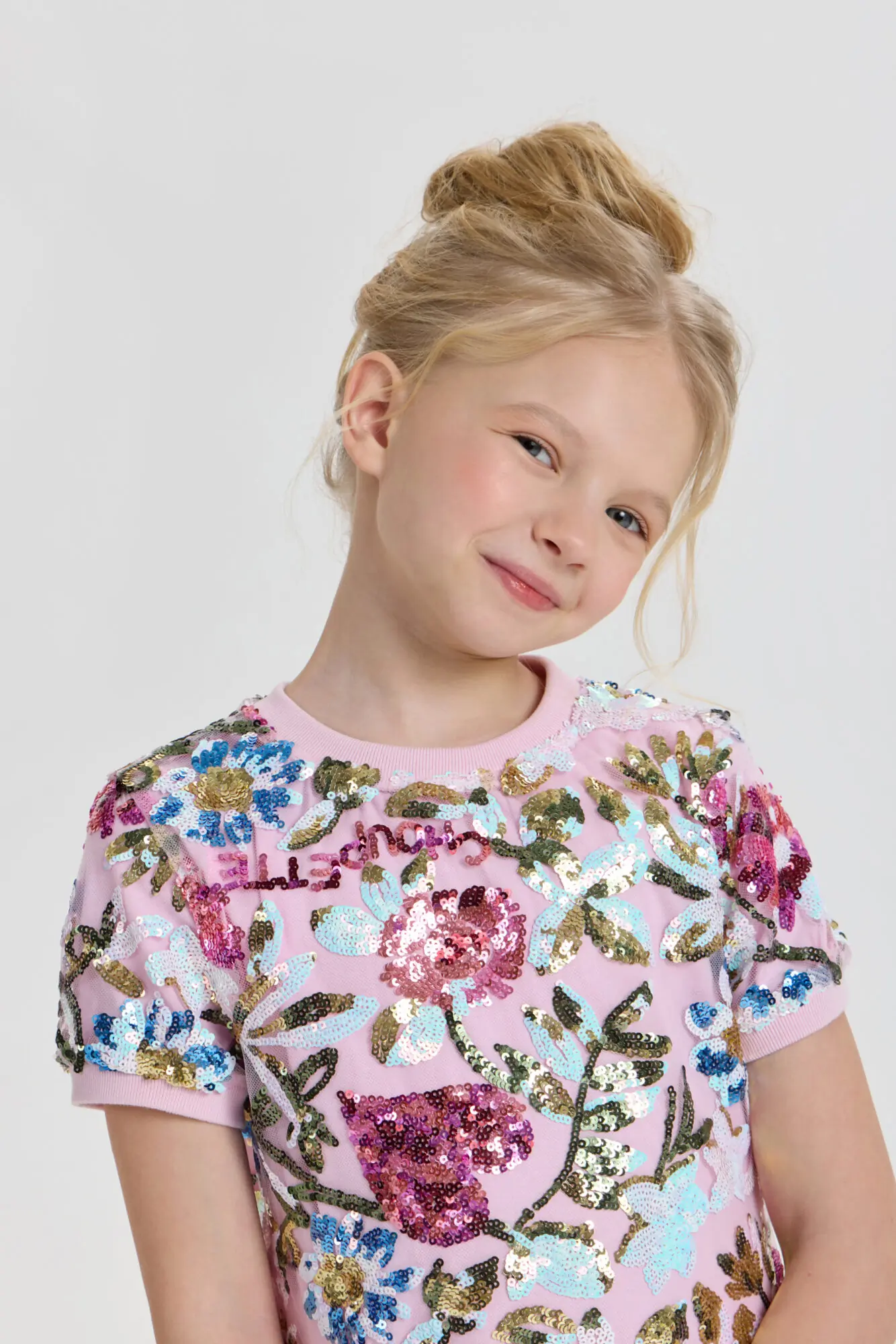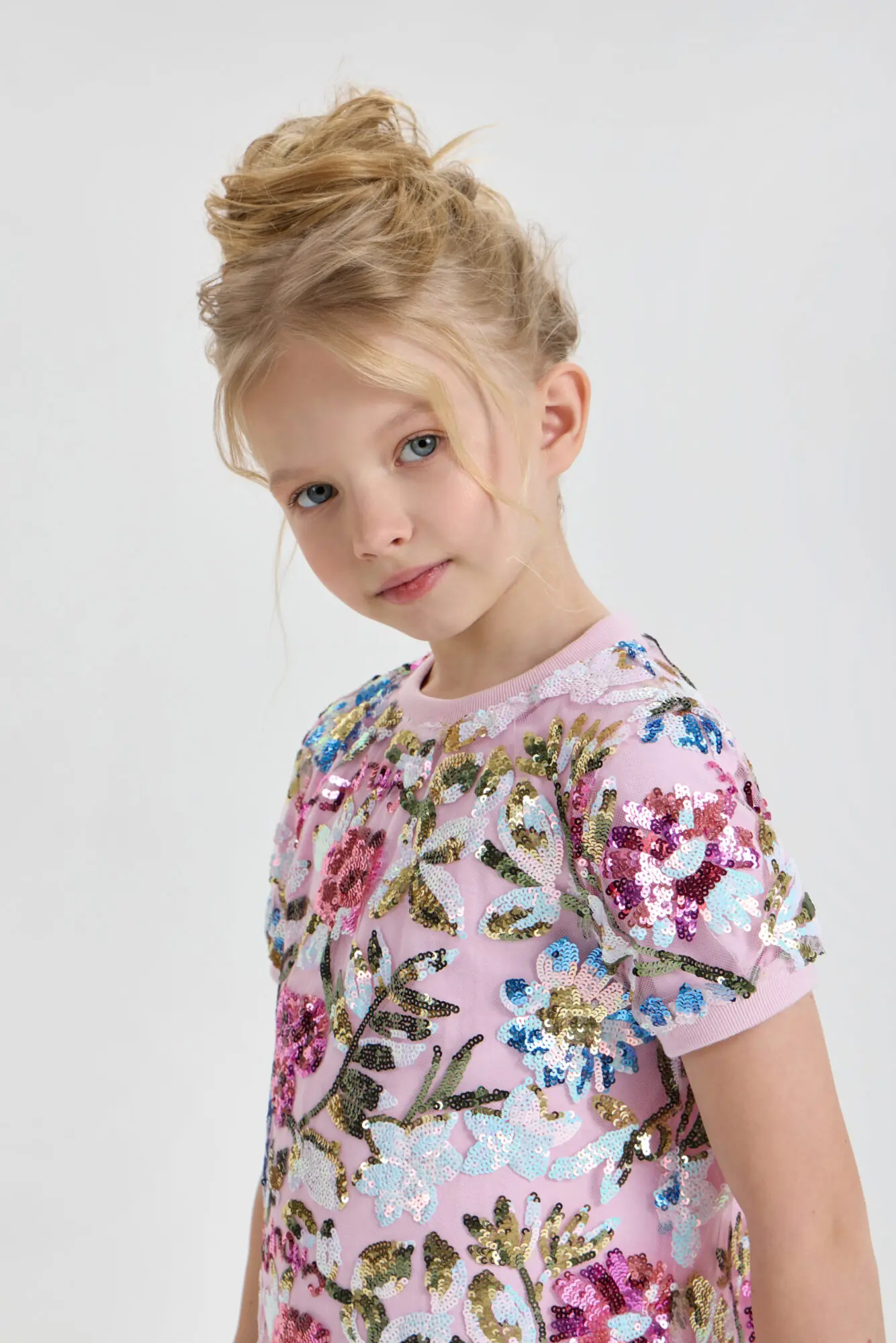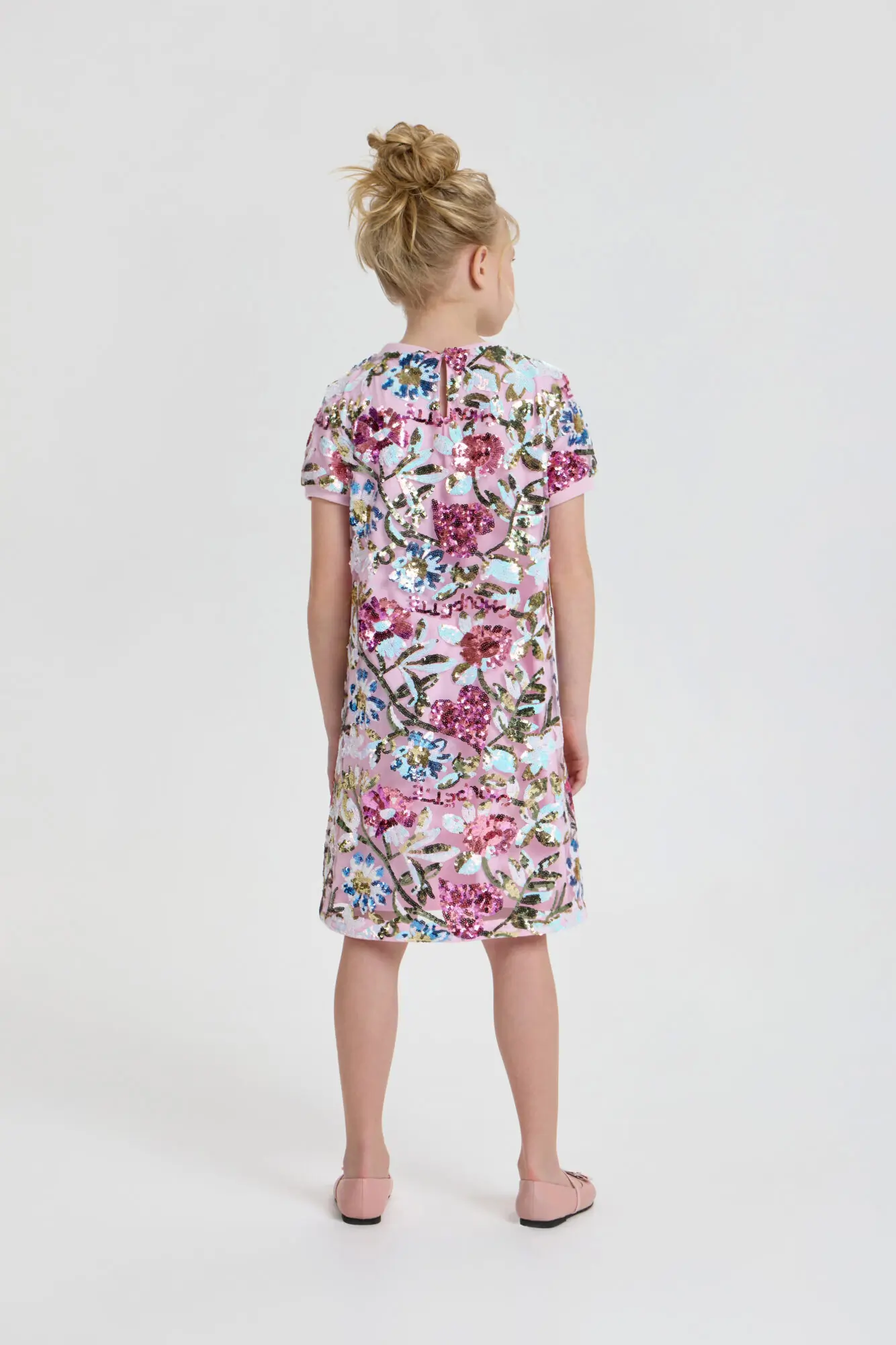 Стильное платье для девочки отлично подойдет как для повседневного использования, так и для праздничного мероприятия. Силуэт платья имеет форму трапеции. Короткие рукава и округлый вырез обработаны ... эластичной тесьмой. Оригинальный рисунок и блестящие пайетки, придают платью неповторимый шарм. Благодаря современному стилю и высококачественным материалам, это платье позволит девочке создать неподражаемый образ на любом торжестве. Наряд отлично сочетается как с классической обувью, так и с современными кроссовками. Завершить образ помогут стильные украшения.