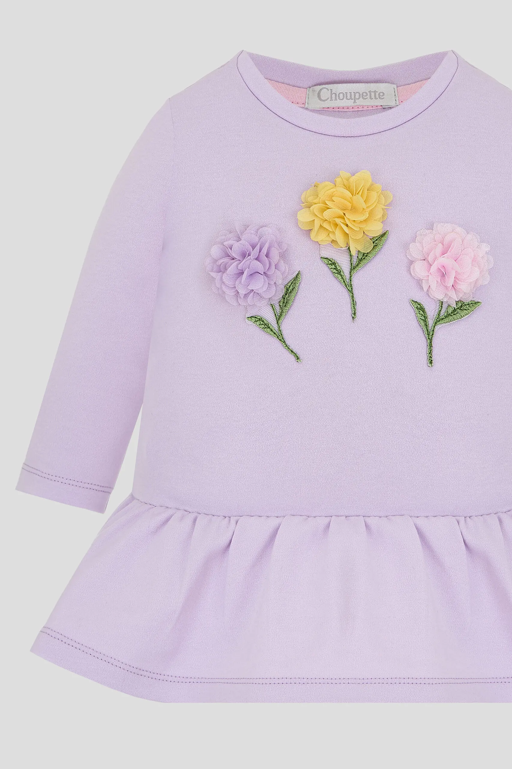 Платье для девочки с объемным декором покоряет с первого взгляда. Яркие цветы придают наряду особое настроение. Нежный цвет и изысканный декор подчеркнут индивидуальность и очарование маленькой ... модницы. Удобные кнопки на плечиках обеспечивают легкость в переодевании, что особенно важно для активных малышей. Широкий рюш по краю добавляет наряду игривости и романтичности. Платье идеально подходит как для повседневного использования, так и для особых случаев.