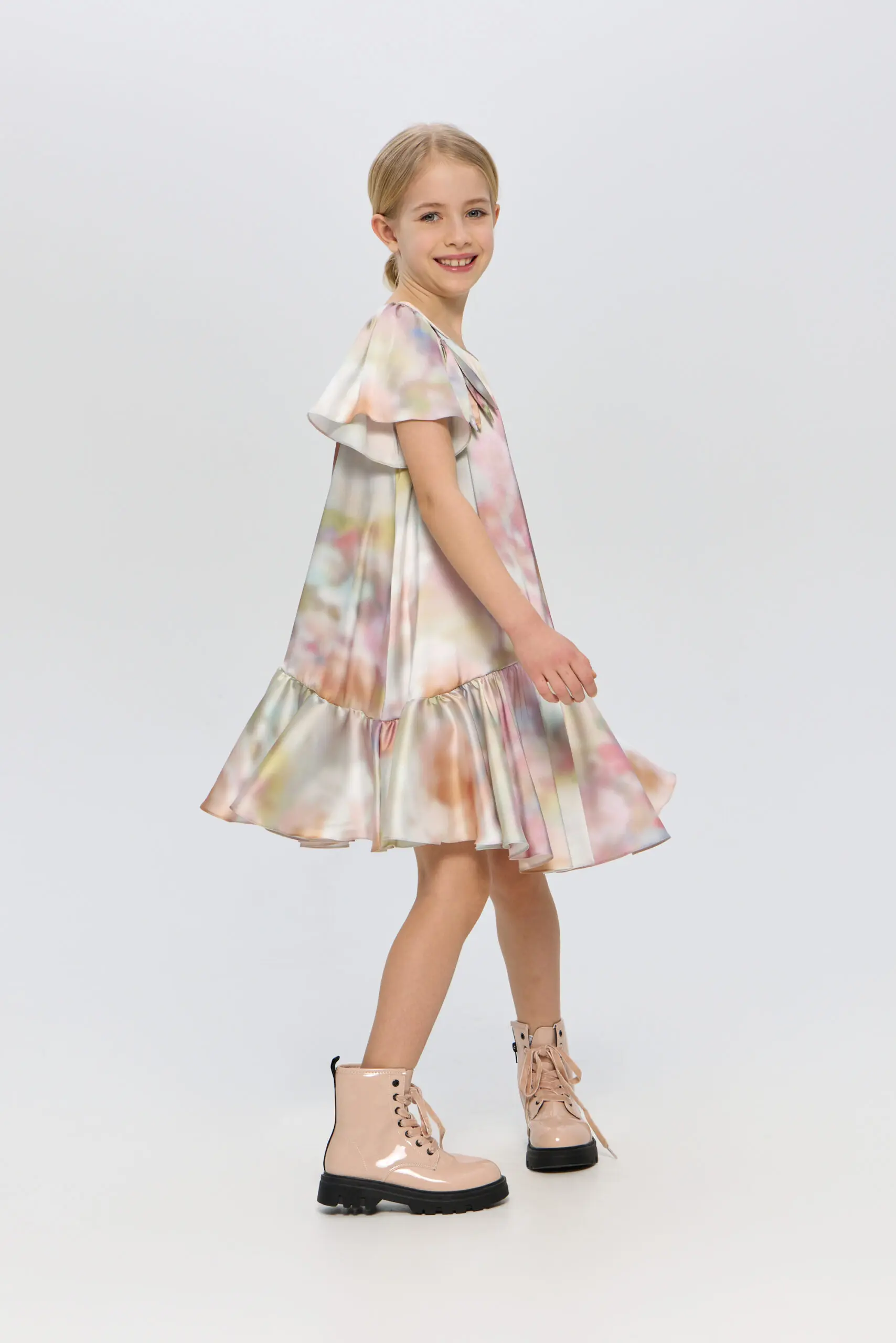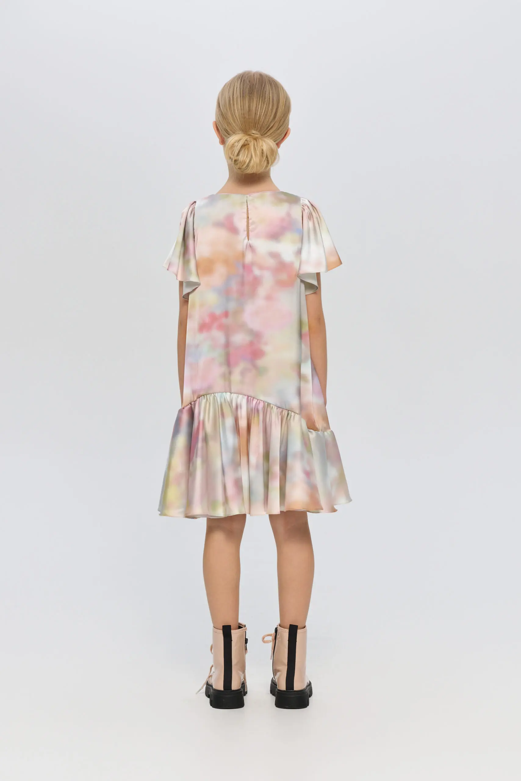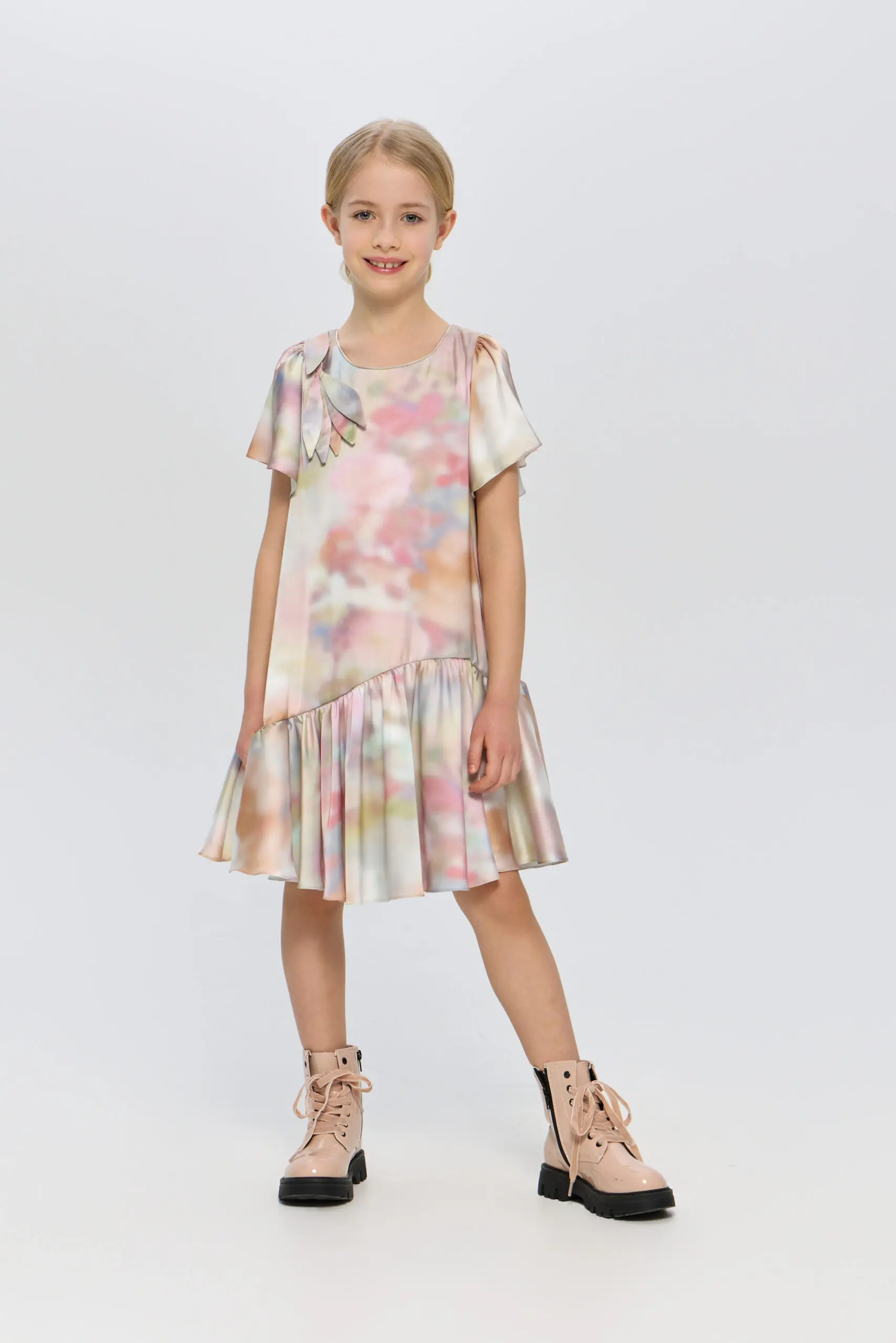 Платье свободного кроя для девочки идеально подойдет для особых случаев и повседневных прогулок. Крой трапеция не стесняет движений, а легкий и дышащий материал позволит ребенку чувствовать ... себя комфортно даже в самую жаркую погоду. Низ платья обрамляет широкий асимметричный волан. Объёмный декор не только привлекает внимание, но и добавляет изюминку.