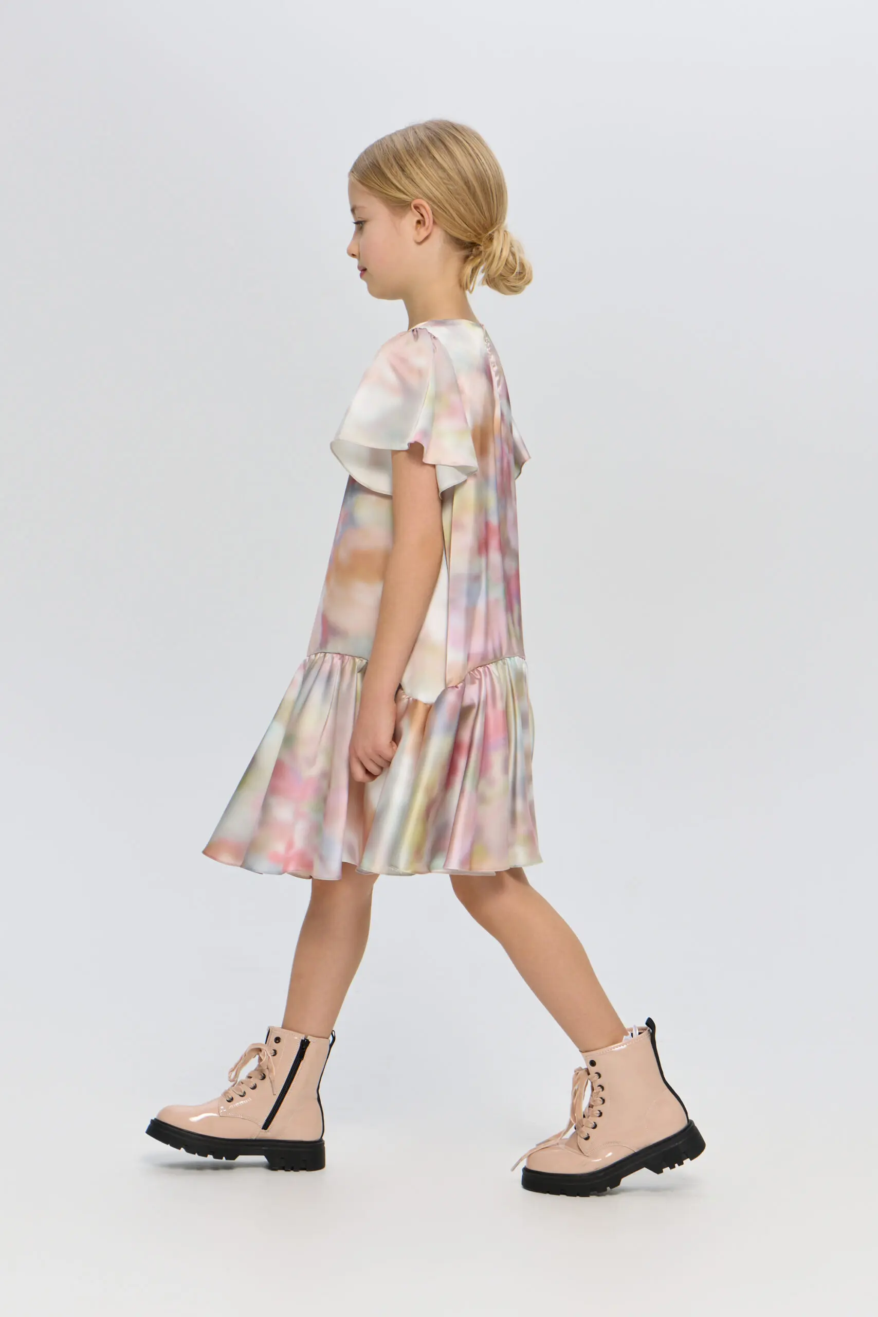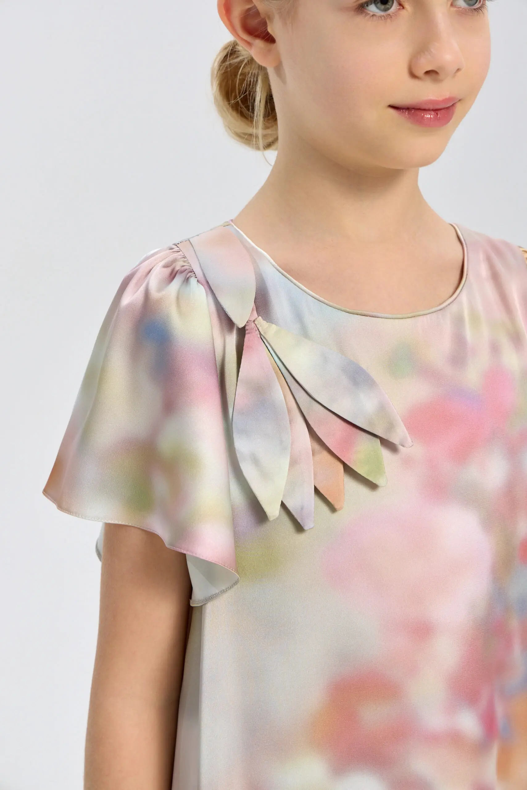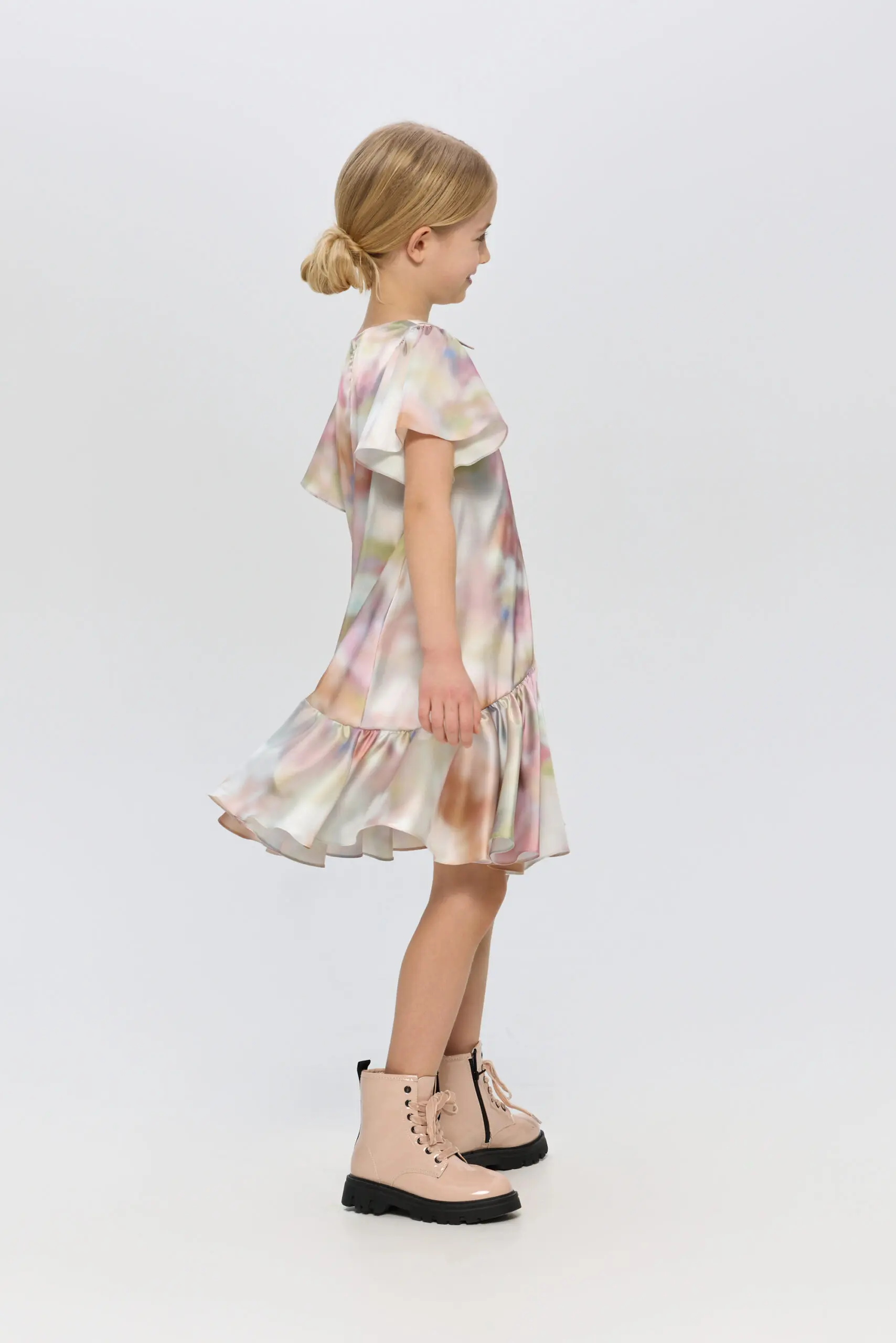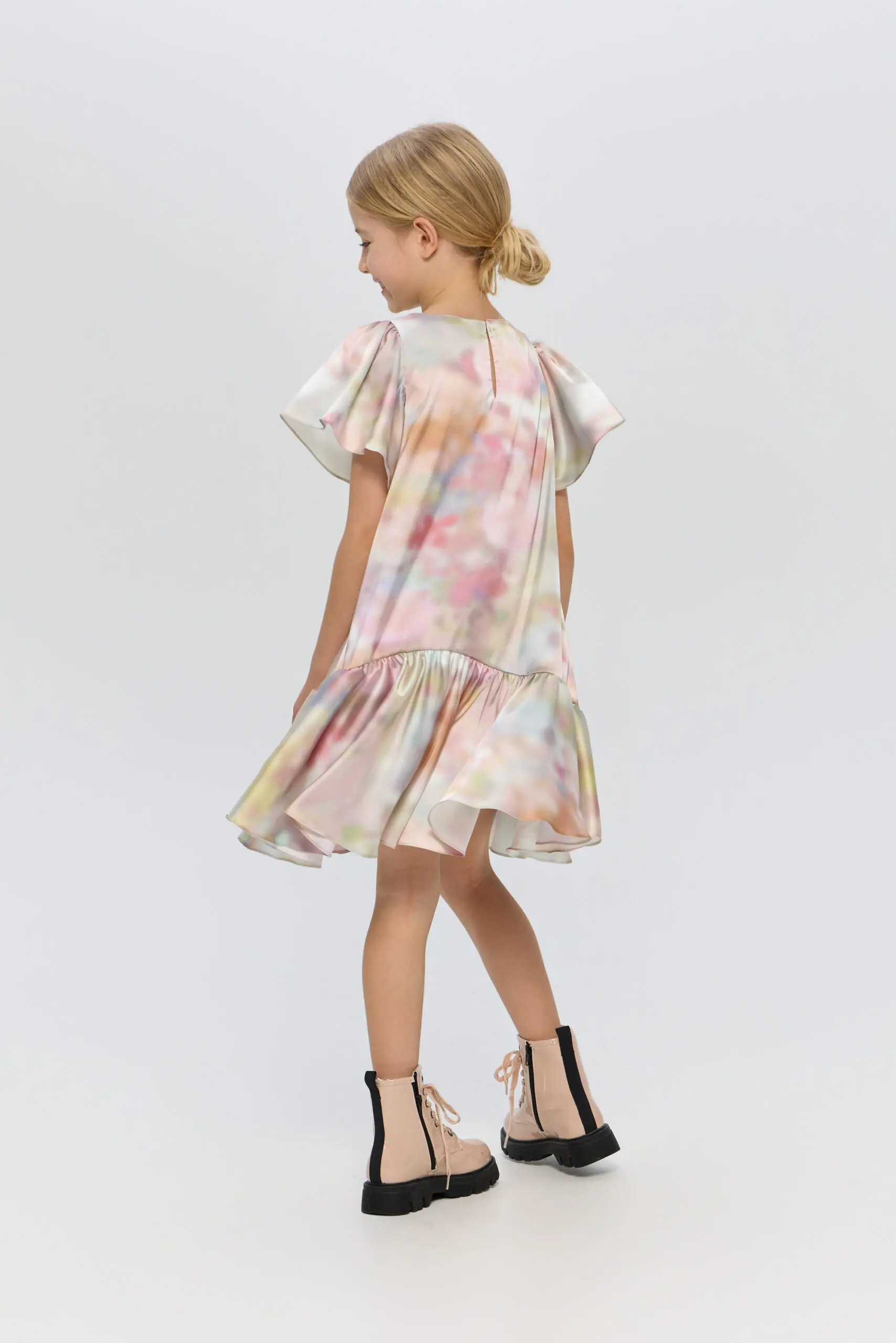Платье свободного кроя для девочки идеально подойдет для особых случаев и повседневных прогулок. Крой трапеция не стесняет движений, а легкий и дышащий материал позволит ребенку чувствовать ... себя комфортно даже в самую жаркую погоду. Низ платья обрамляет широкий асимметричный волан. Объёмный декор не только привлекает внимание, но и добавляет изюминку.