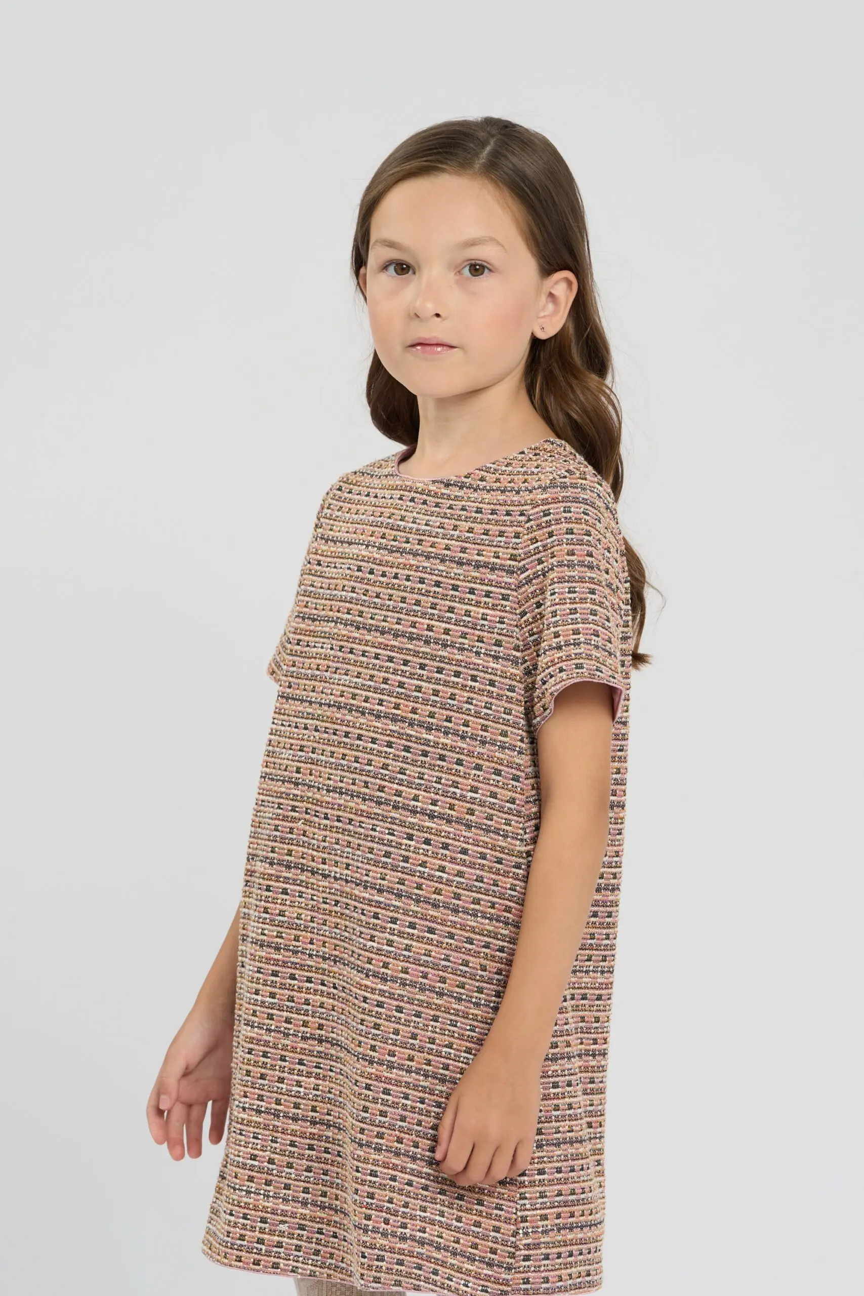 Трикотажное платье для девочки выглядит очень элегантно. Модель расширенного книзу силуэта не сковывает движения, позволяет ребенку сохранять активность. Фактурная разноцветная ткань – главное украшение лаконичного дизайна. ... Для удобства на спинке предусмотрена длинная молния. Данная модель прекрасно подойдет как на каждый день, так и для праздничного мероприятия. Платье имеет подкладку на основе натурального хлопка.