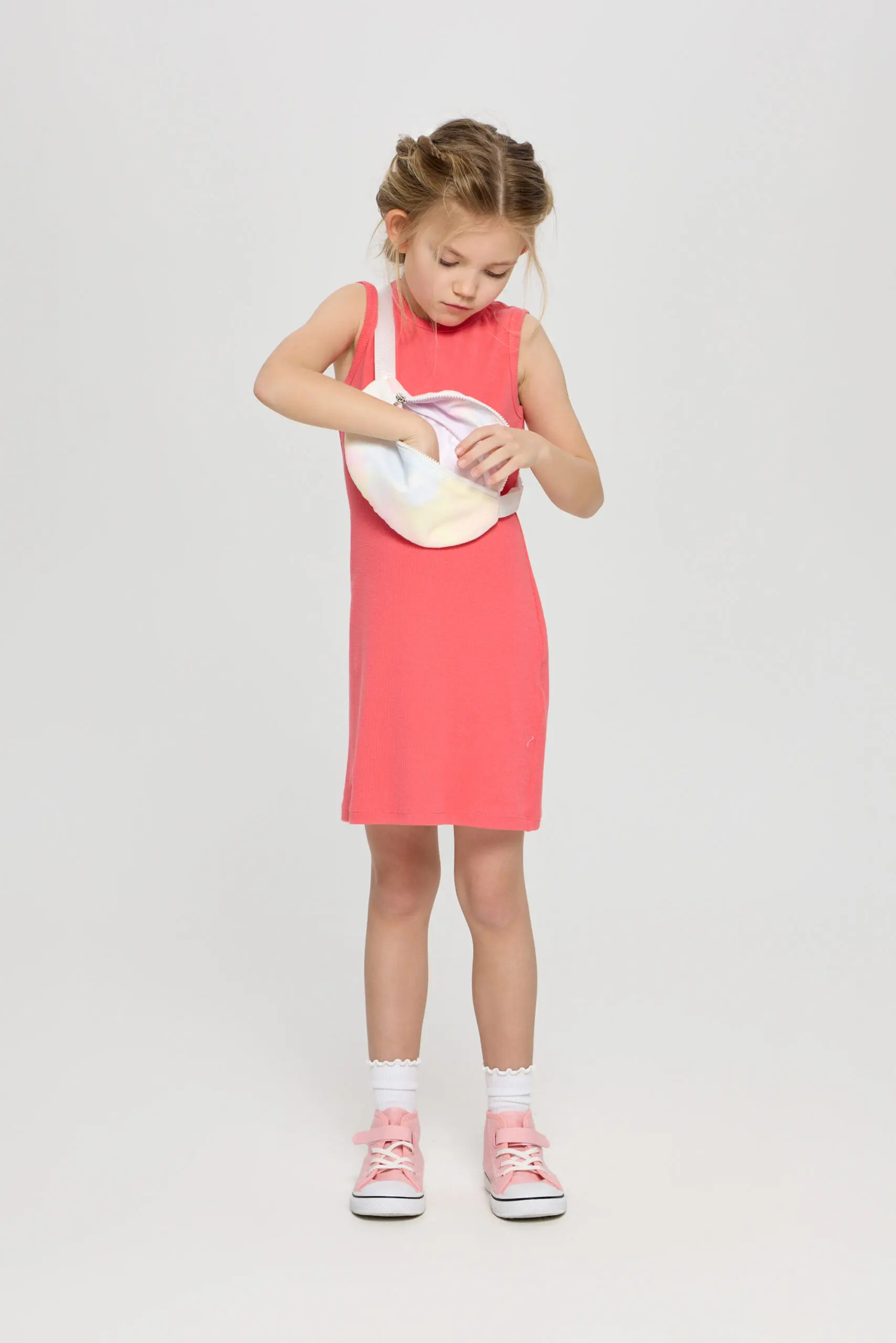 Платье для девочки выполнено из мягкого и приятного на ощупь трикотажа. Платье имеет прямой силуэт, что делает его универсальным и удобным. Такой крой обеспечивает легкость и ... комфорт, позволяя ребенку свободно двигаться. В комплекте с платьем идет стильная сумочка. Аксессуар позволяет ребенку хранить свои маленькие сокровища.