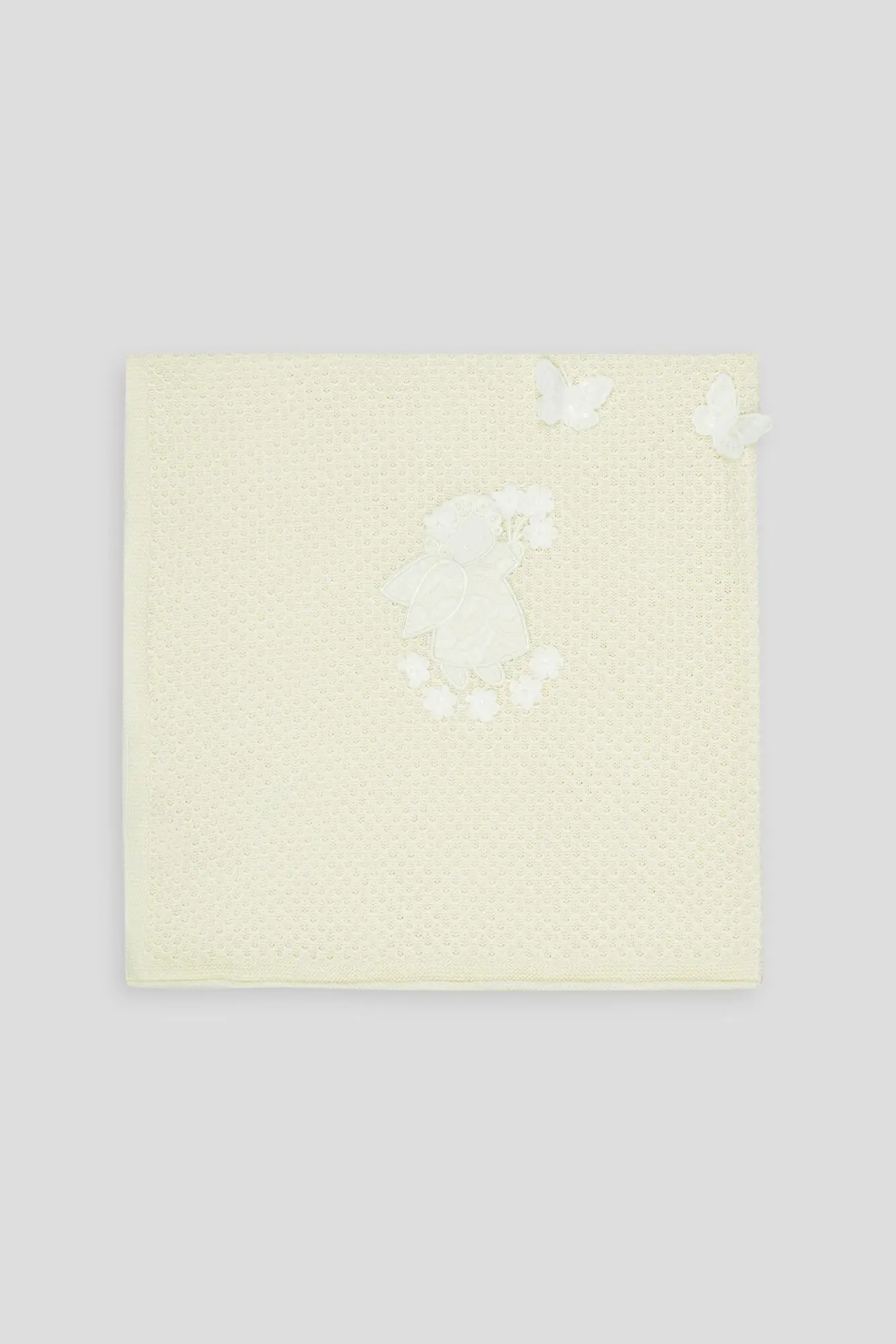 Плед вязаный ажурный с аппликацией