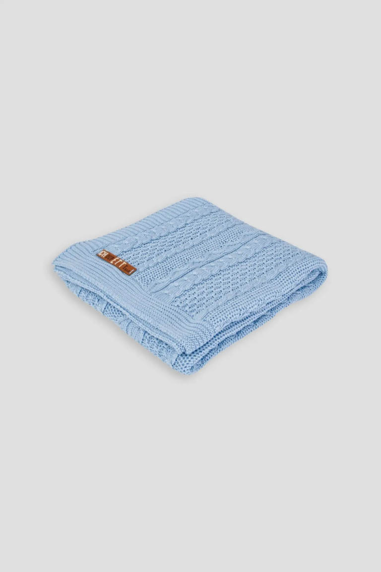 Нежно-голубой вязаный плед для мальчика – изящный аксессуар как на выписку из родильного дома, так и для прогулок в коляске. Изделие выполнено из натурального хлопка. Мягкий ... и приятный к чувствительной детской коже плед, согреет вашего малыша в любую погоду. Комбинация различных узоров делает детский вязаный плед Choupette роскошным аксессуаром, который в дальнейшем может использоваться в кроватке или коляске, при прогулках в прохладную погоду. Отлично стирается, не растягивается в процессе использования.